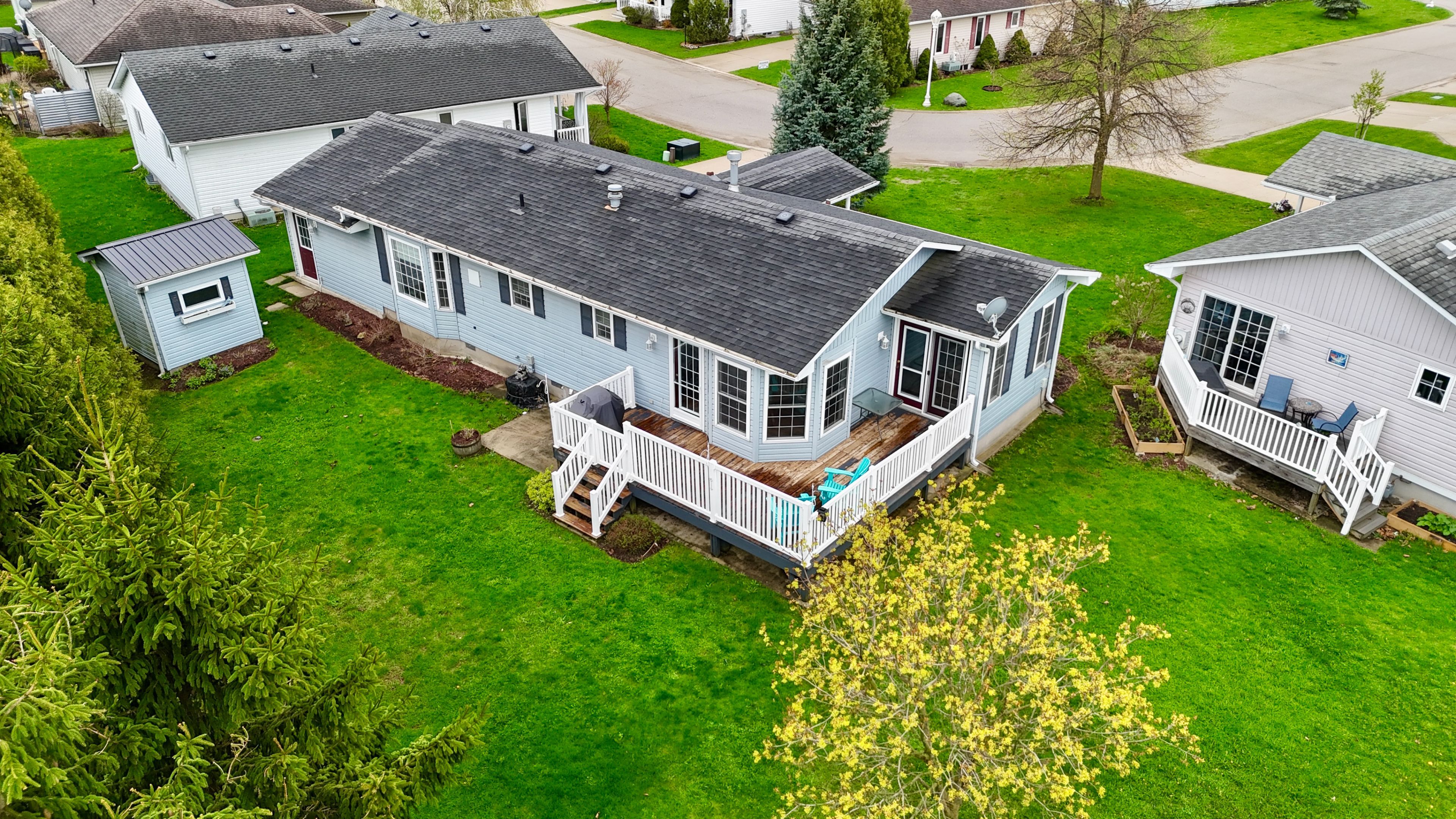 • Quiet 55+ community with low-maintenance living in a friendly neighborhood.