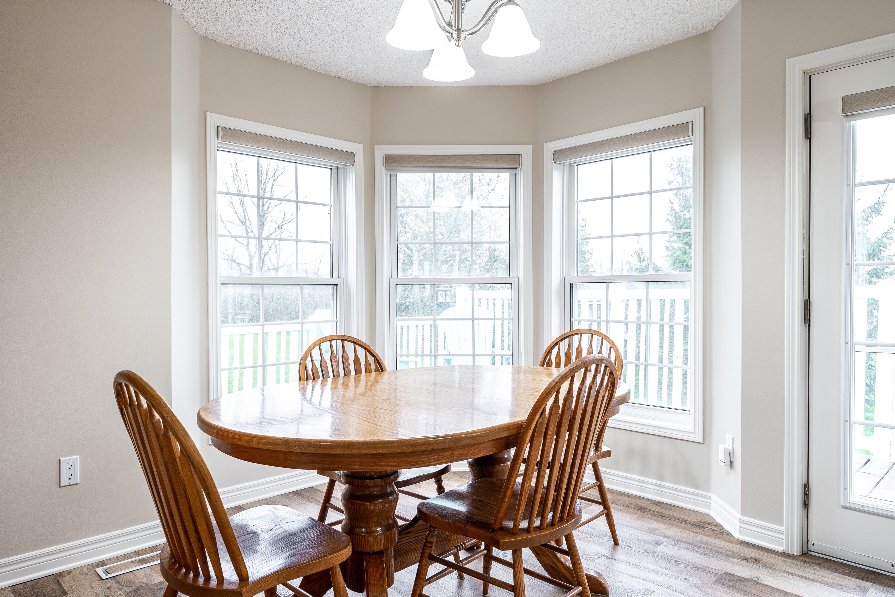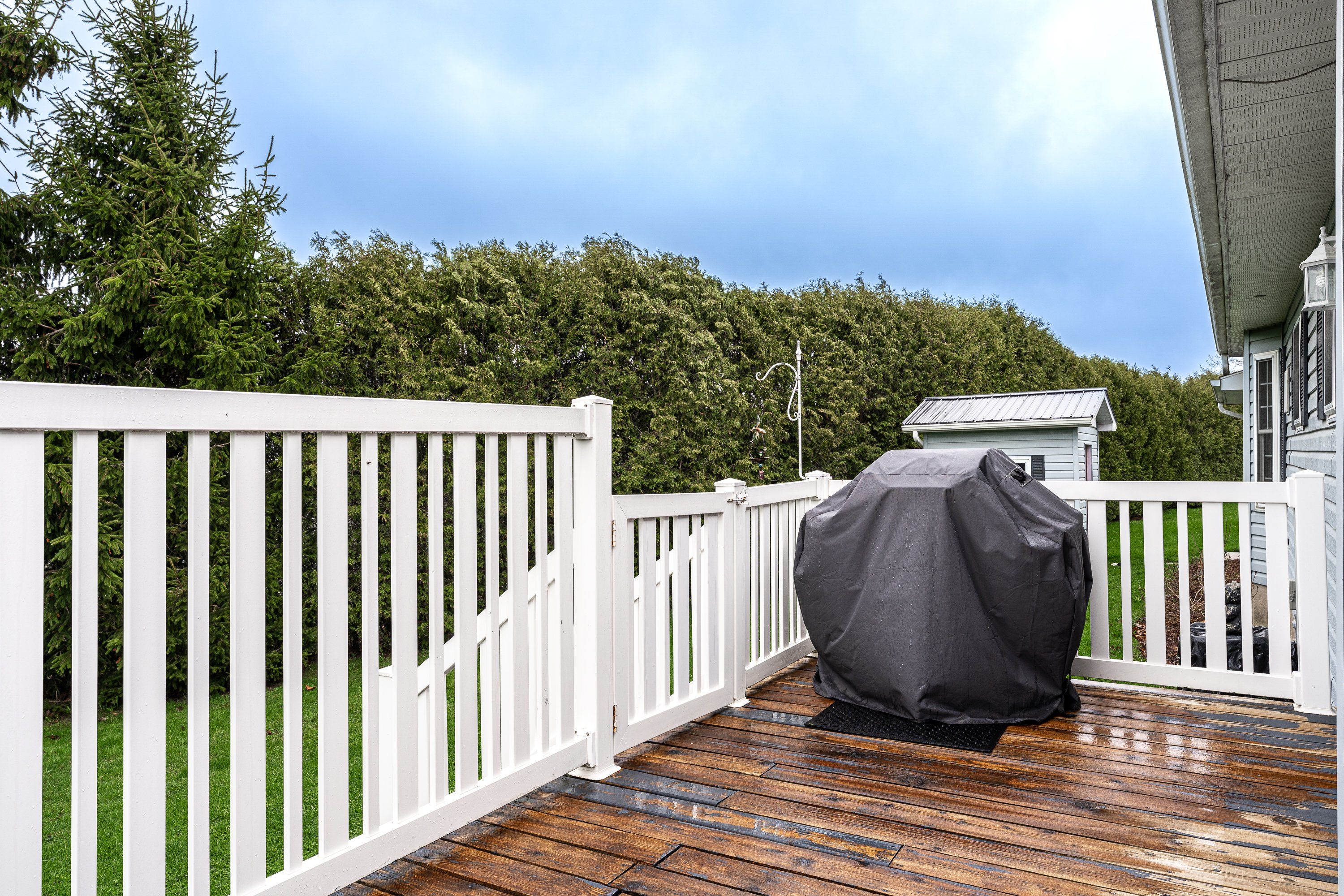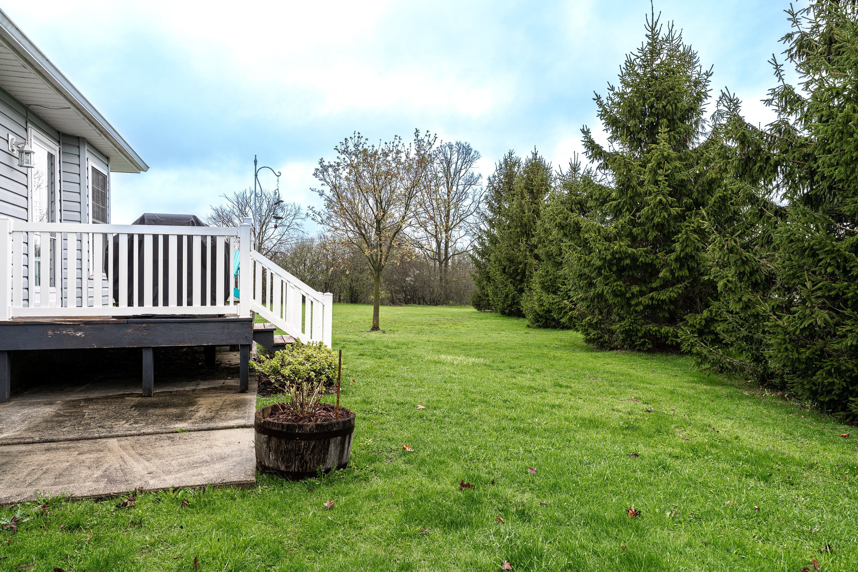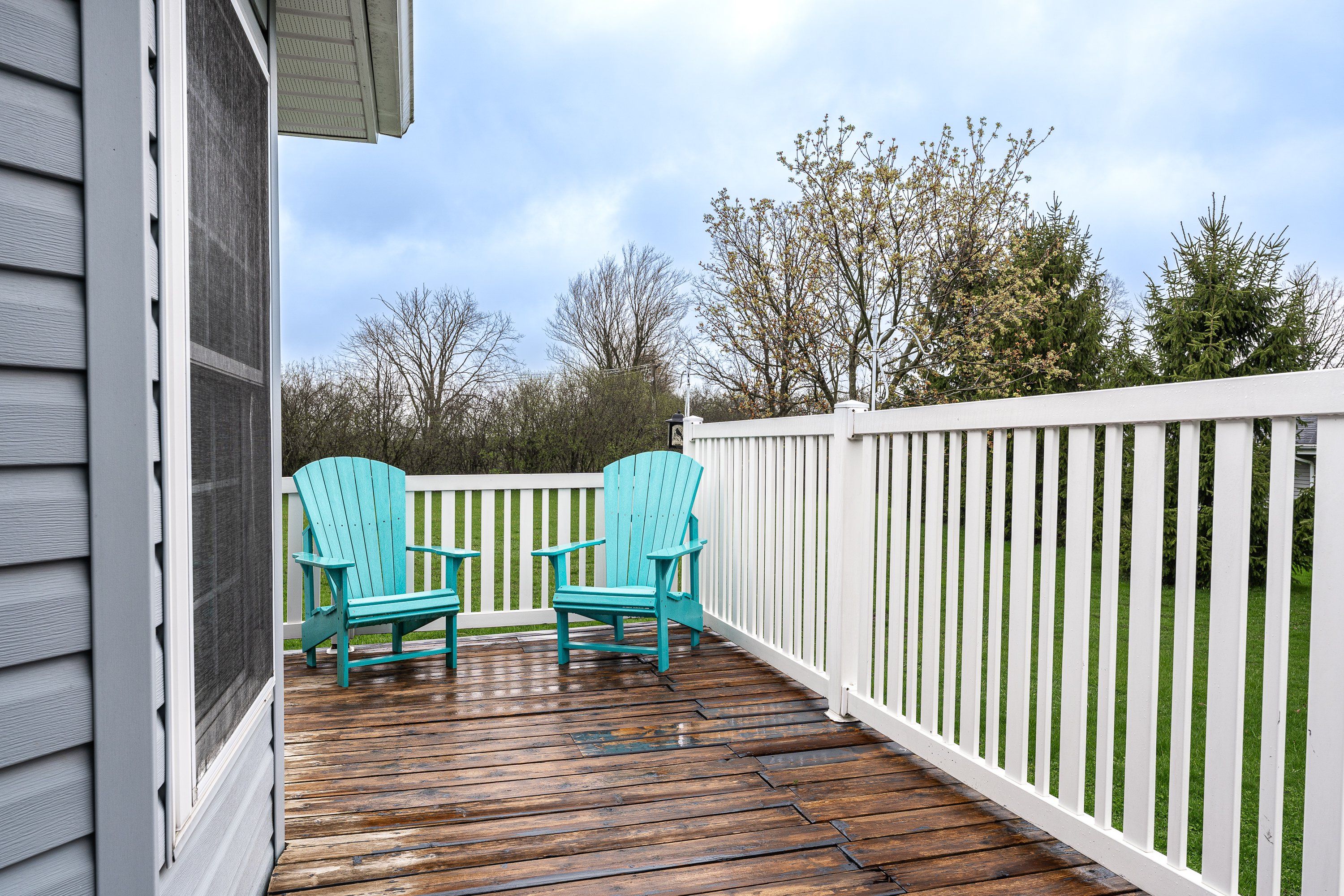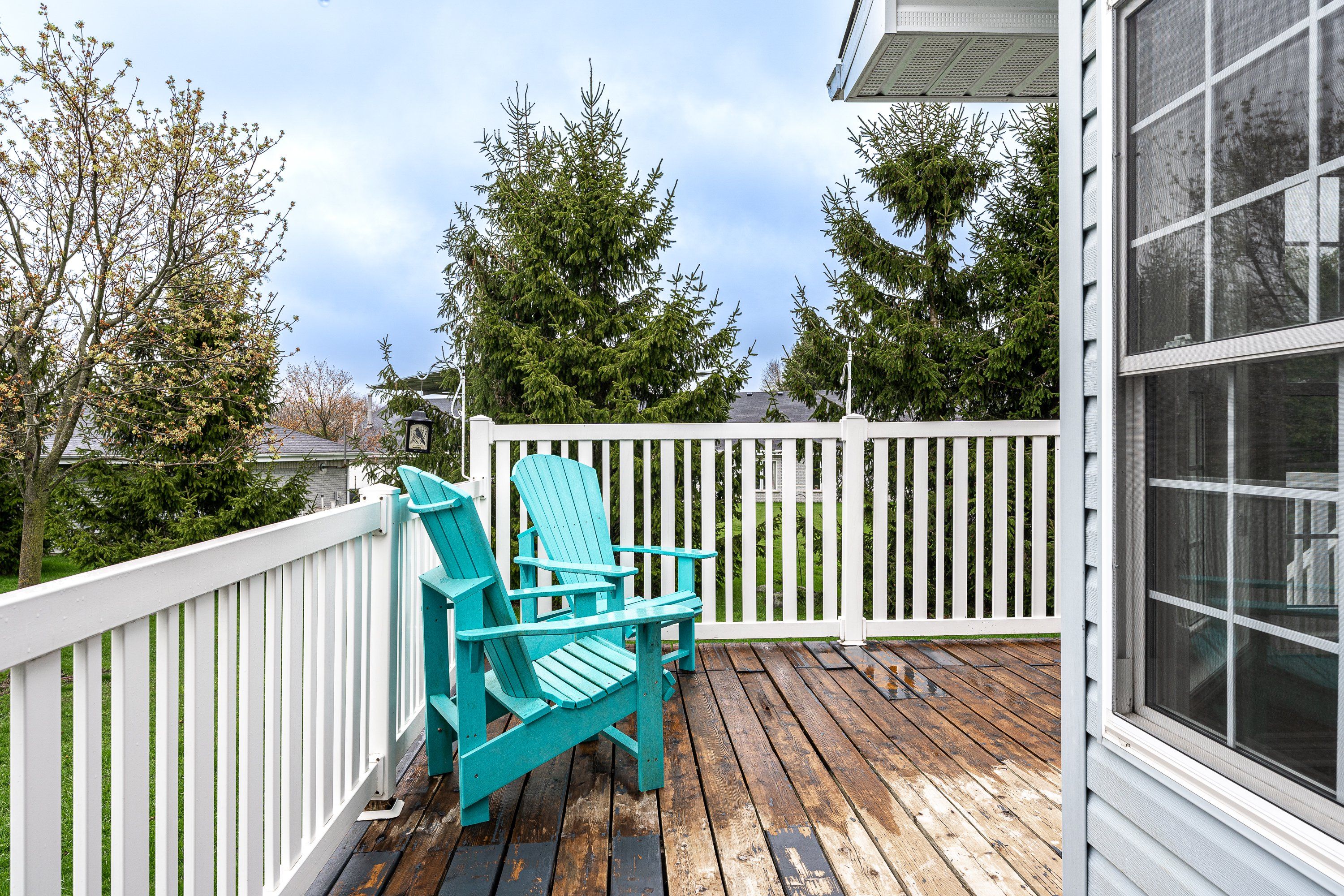 • Private wrap-around deck surrounded by trees for added privacy.