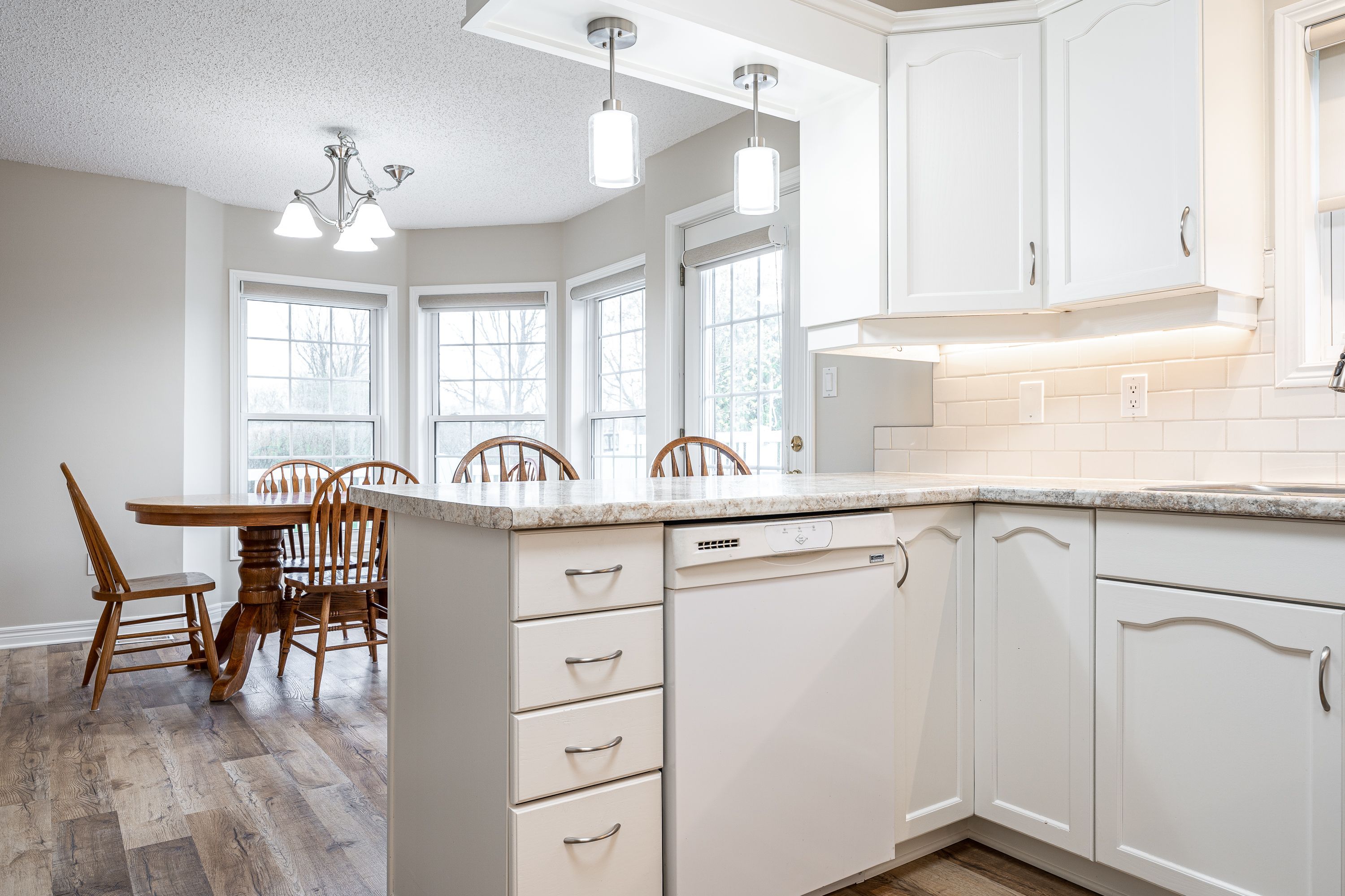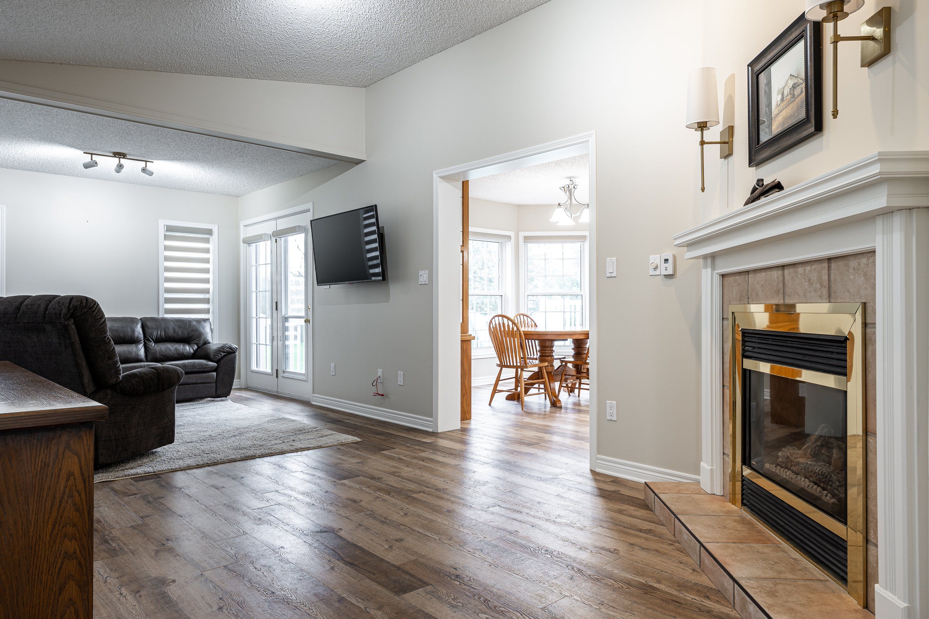 Welcome to the thames valley retirement community, a sought-after 55+ adult lifestyle community offering quiet, low-maintenance living in a welcoming neighbourhood setting. This well-maintained 2 bedroom, 2 bathroom bungalow offers comfortable single-level living with a functional layout and numerous recent updates throughout. The main floor features a bright and spacious living, dining, and kitchen area, redesigned to create an inviting flow for everyday living and entertaining. The kitchen has been refreshed with updated cabinets and includes appliances, a pantry with pull-out shelving, and excellent workspace. New flooring, updated trim and baseboards, and new glass doors further enhance the interior. The primary bedroom offers a walk-in closet and private ensuite. A second bedroom or den is ideal for guests or a home office, while the main bathroom features a new vanity top and updated walk-in shower. Convenient main floor laundry makes for further conveniences along with the attached garage. Outside, enjoy new landscaping completed last summer and relax on the private wrap-around rear deck backing onto a treed area for added privacy. A concrete driveway, new water softener, and move-in ready condition complete this attractive offering. New owner fees are $1,054. 28/month. Click on the virtual tour link, view the floor plans, photos and youtube link and then call your realtor to schedule your private viewing of this great property!