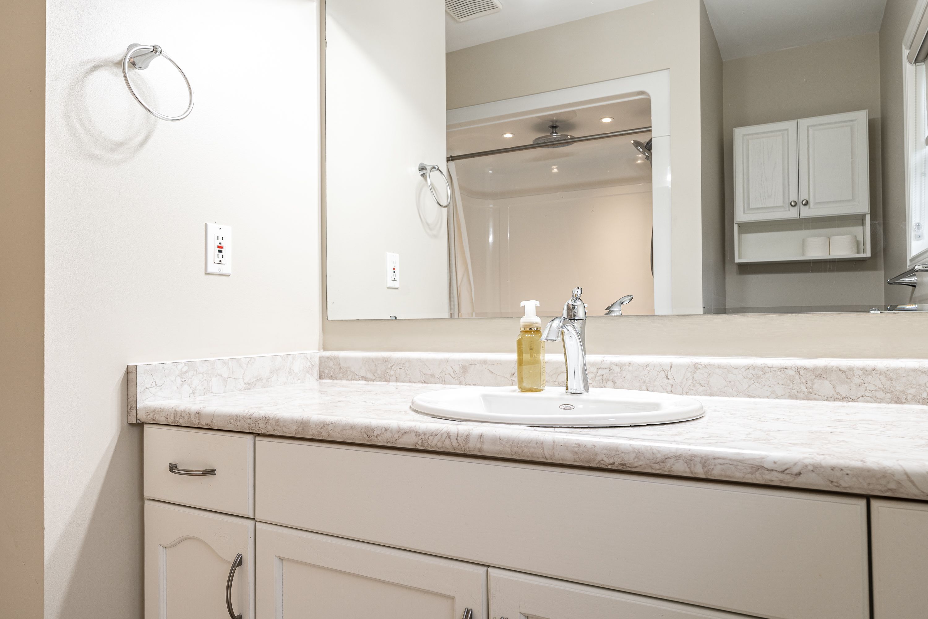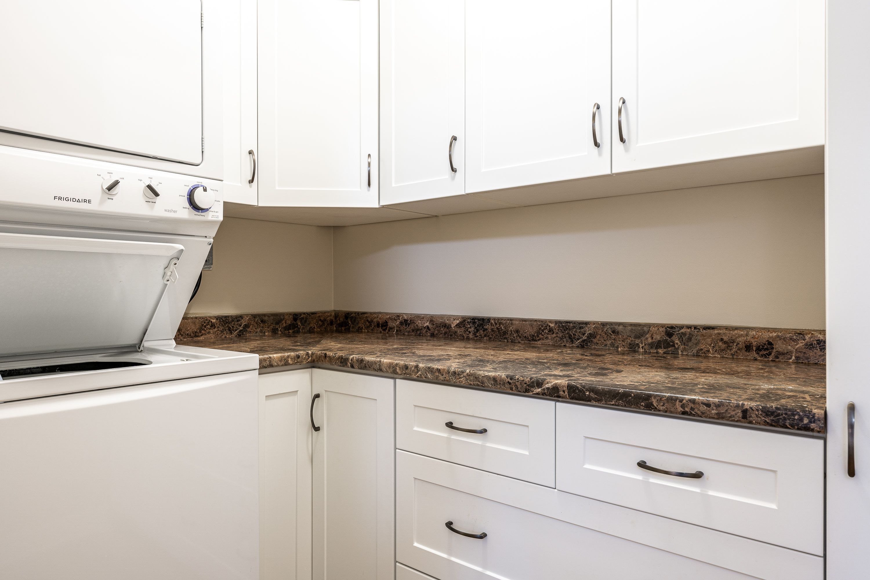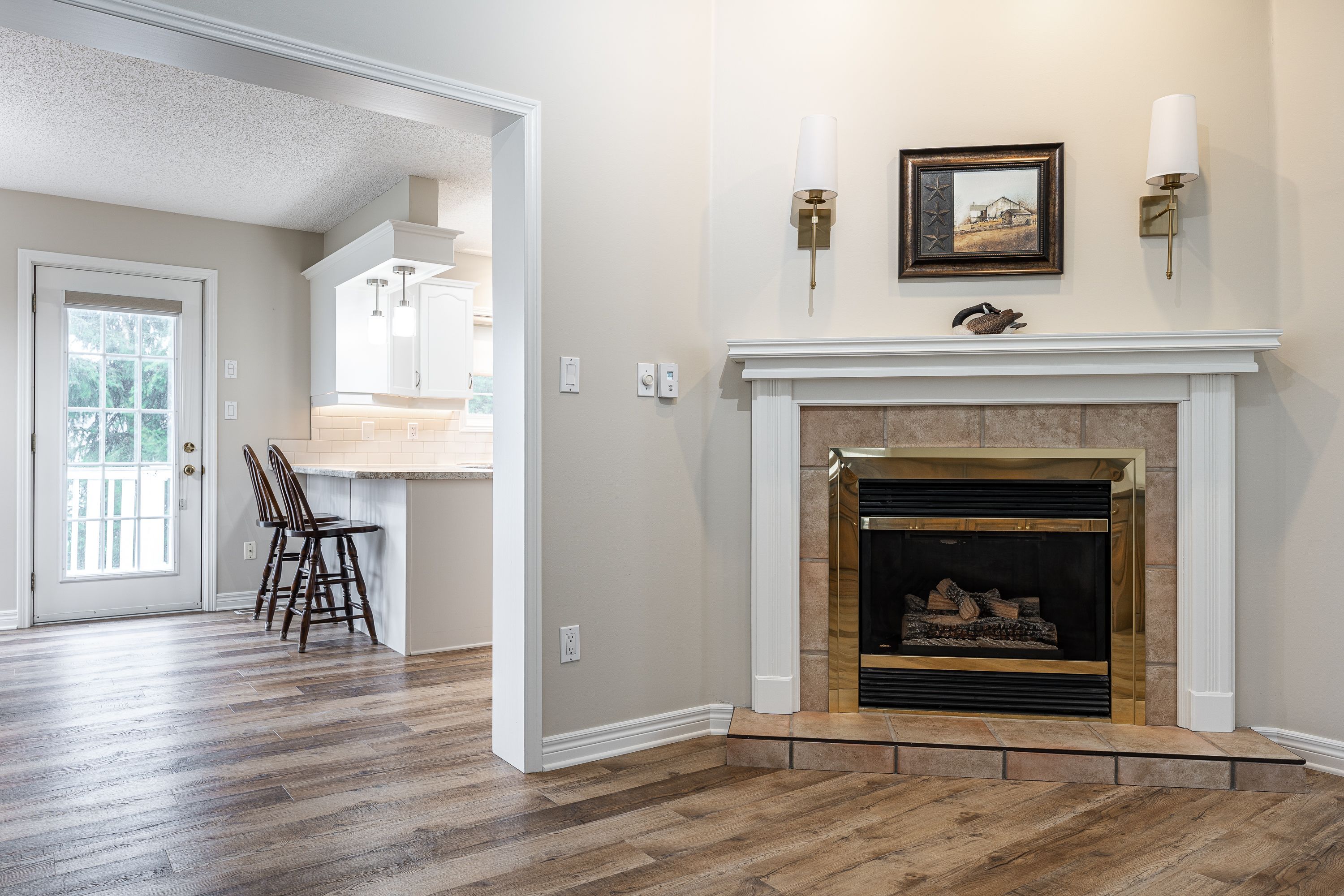• Updated kitchen with fresh cabinets, appliances, and pantry features.