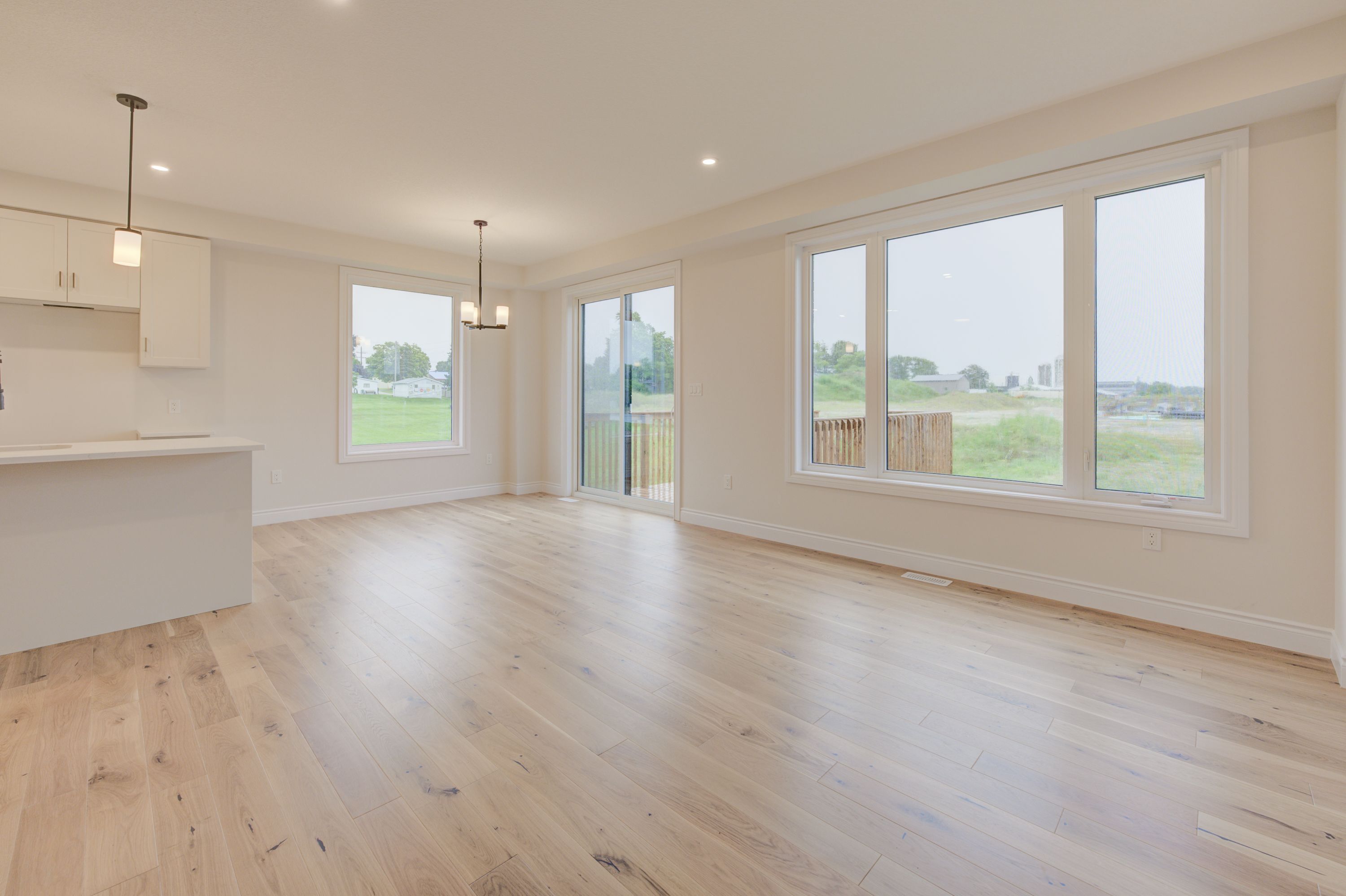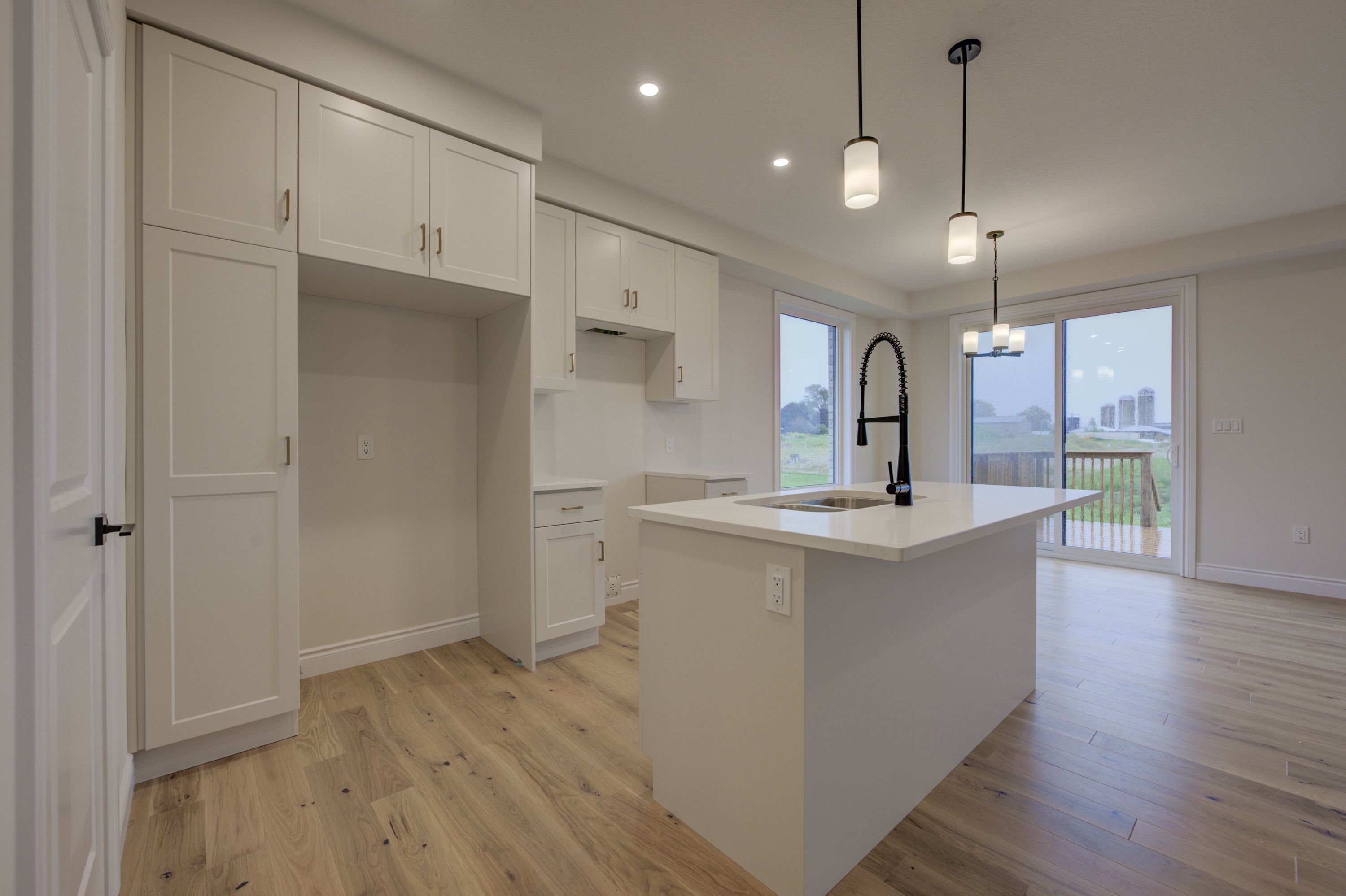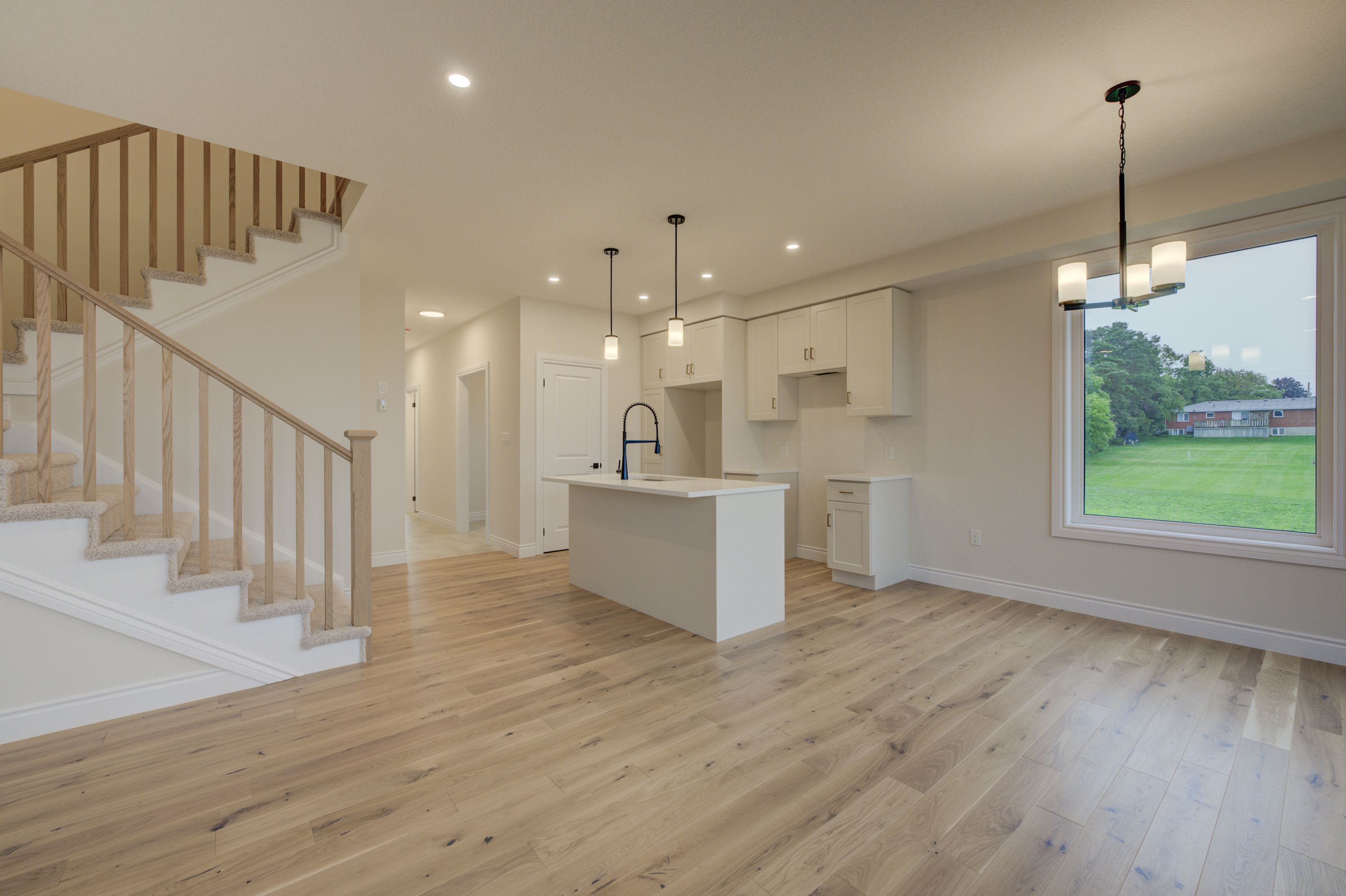 Welcome to the town collection at maitland meadows - the homestead model is where modern farmhouse charm meets calm, connected living. This bright end unit offers 1,810 sq ft of thoughtfully designed space, filled with natural light and upscale finishes. With 9' ceilings and an open concept layout, the main floor feels airy and inviting - from the flexible front room (perfect for a home office or playroom) to the kitchen's quartz island that anchors the dining and living areas. Upstairs, the spacious primary suite features a walk-in closet and private ensuite, while two additional bedrooms and second floor laundry make family life effortless. Energy efficient construction helps keep costs low and comfort high, and the full basement offers room to grow. Complete with a deck, appliances, and stylish finishes, this home is move-in ready, and if you're looking for that attached garage feature, it's here too! Designed for those who love the modern conveniences of new construction and the peaceful rhythm of small town life. For a full list of features and inclusions visit our model home located at 122 bean street in harriston.