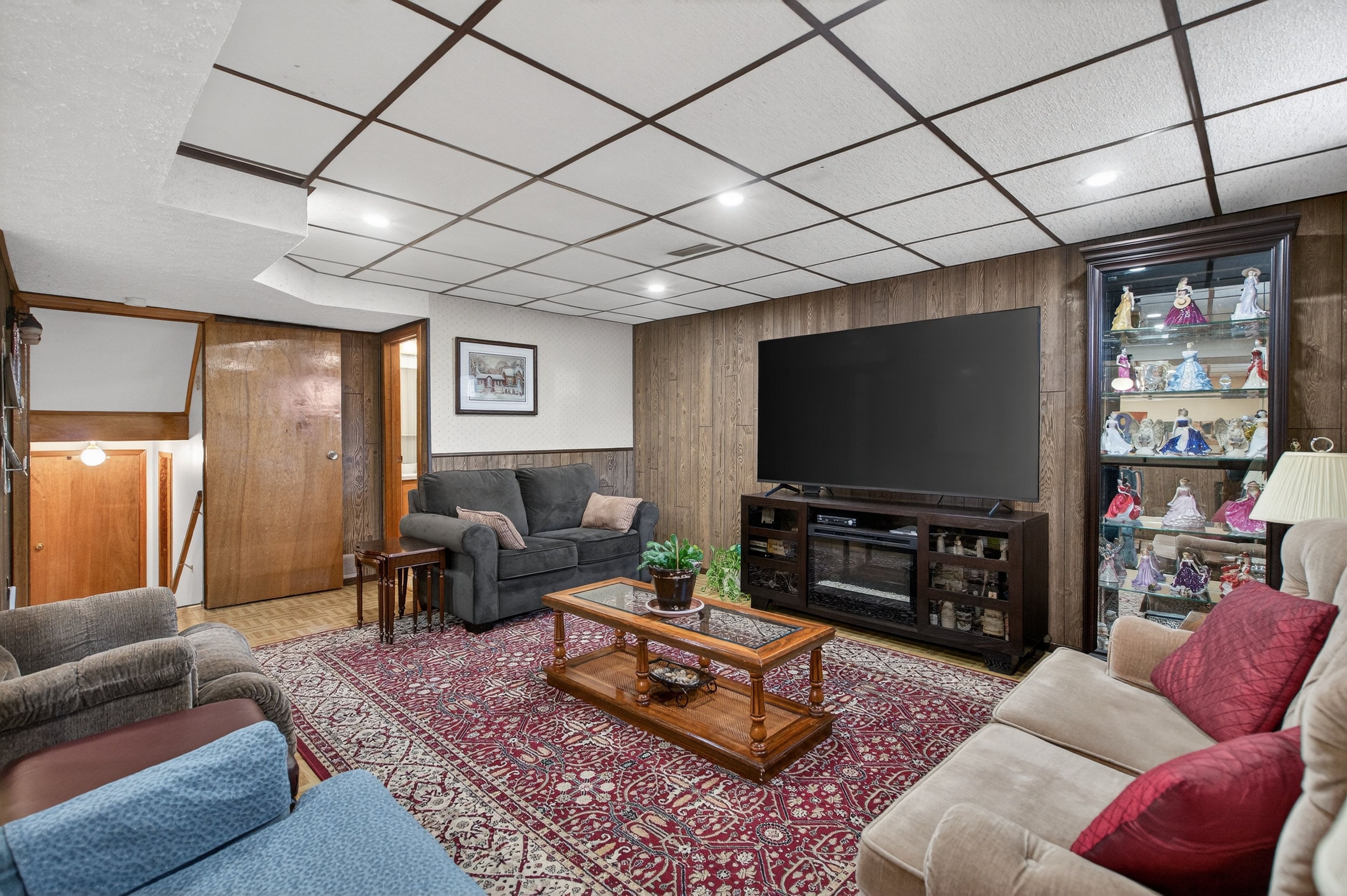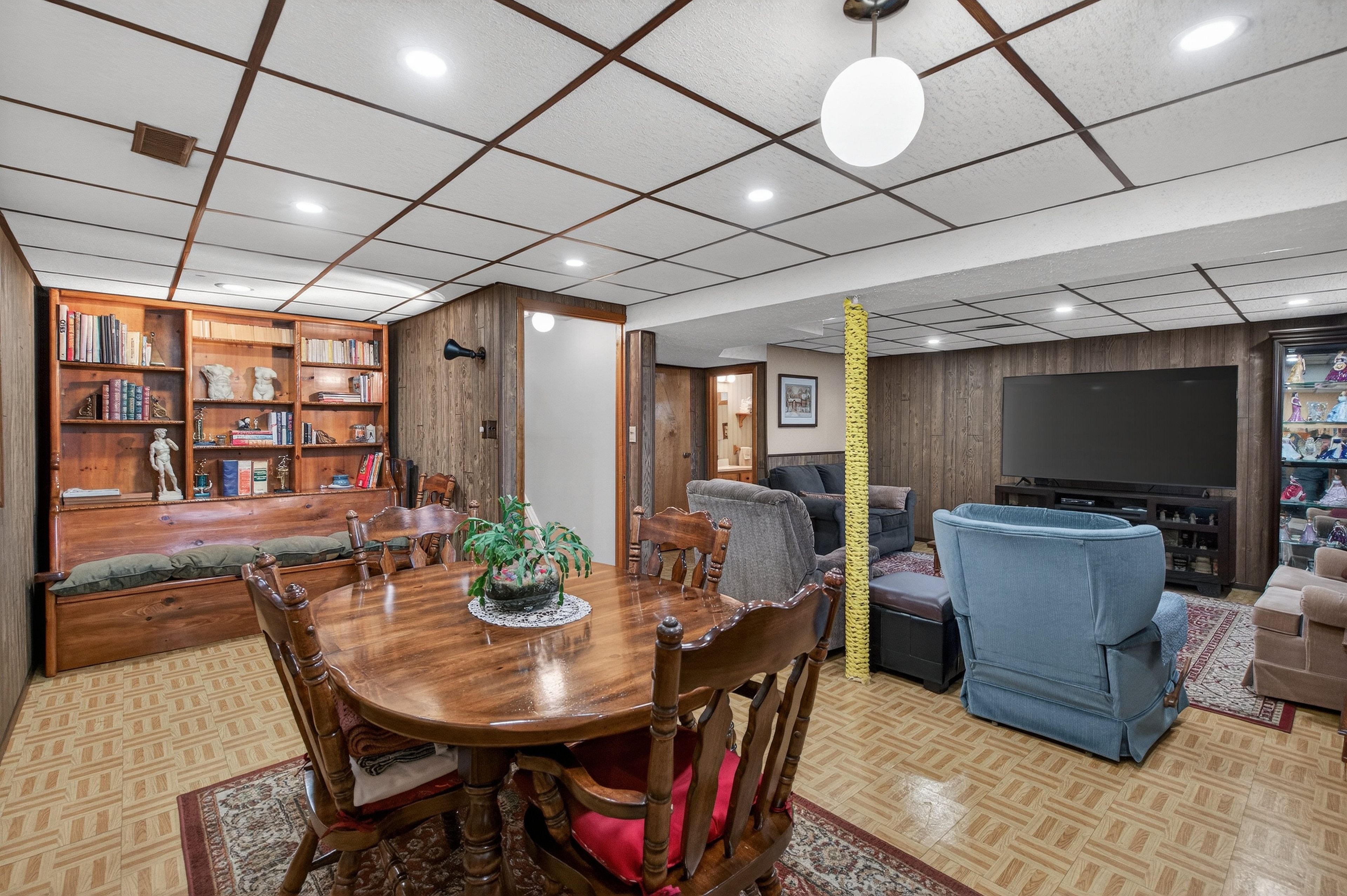 • Bright lower level with a cozy TV room and additional dining area.