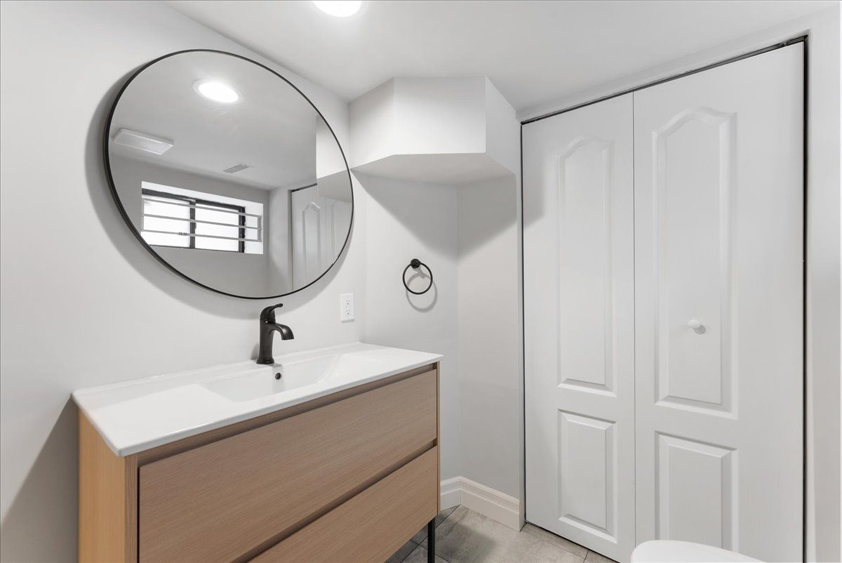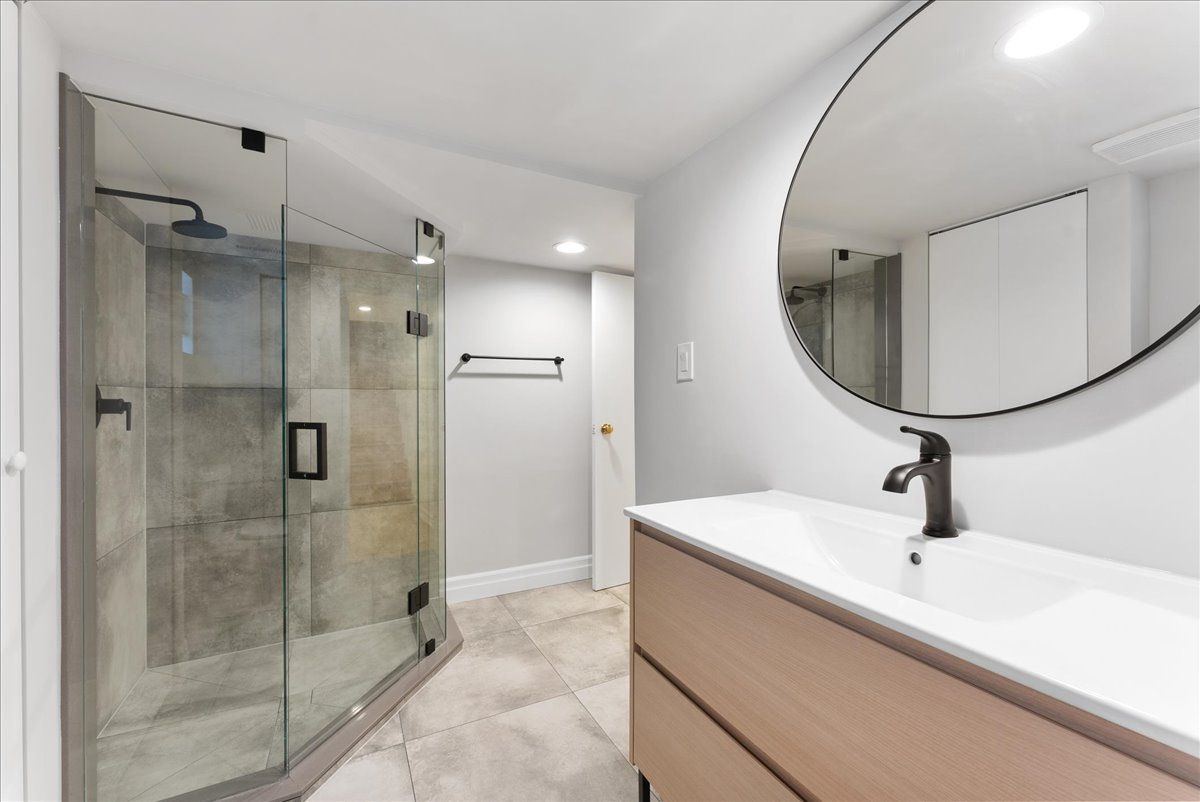 • Finished basement with a newly renovated bathroom and modern touches.