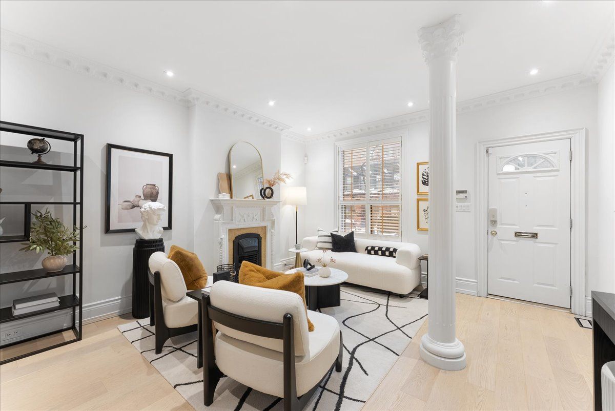Real estate is about location and 30 belmont is a rare opportunity to own a freehold property in one of the city's most coveted neighborhoods. Step inside to sun-drenched rooms framed by elegant hardwood floors, soaring 9 foot ceilings, and unique crown moulding that elevate the main floor. French doors open to a private deck ideal for lively gatherings or quiet mornings in a backyard oasis rarely found in the heart of the city. Upstairs, discover a generous walk-in closet and a charming juliette balcony off the second bedroom. The finished basement boasts a newly renovated bathroom with contemporary finishes and thoughtful touches. Just steps to transit, ramsden park, fine dining and all the energy yorkville brings. Move in ready, brimming with character and irresistible charm, 30 belmont is poised to captivate its next owner. Street permit parking available ~ $25. 07 month.