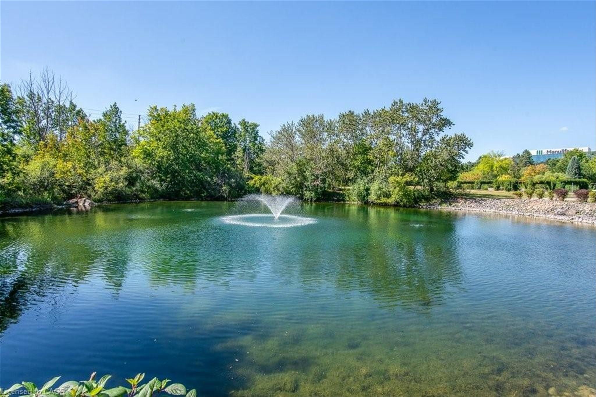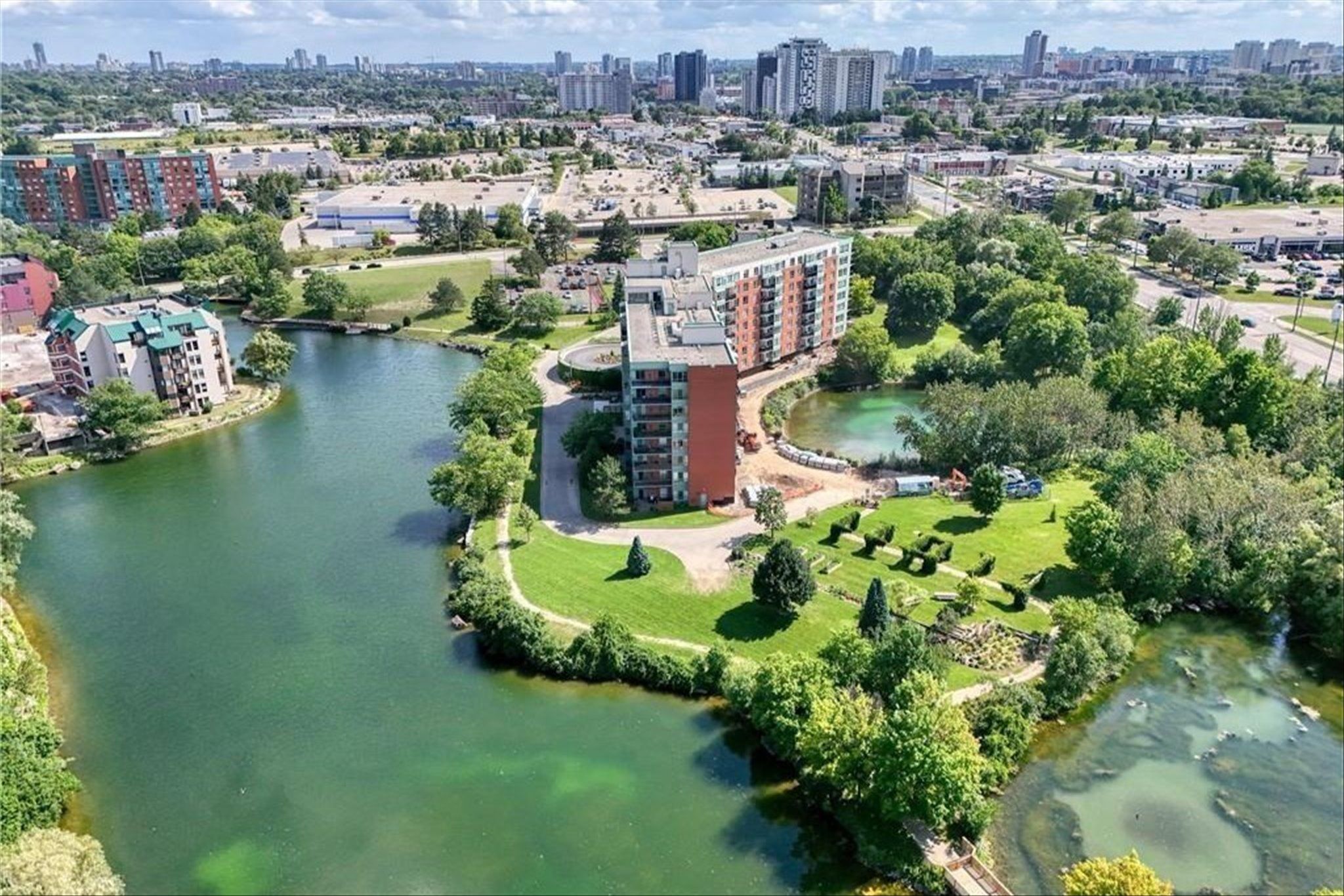 Beautifully maintained condominium located in a quiet and highly desirable area of north waterloo. This spacious two-bedroom suite features southeast-facing windows overlooking four well lake/pond and lush green space, offering picturesque views and an abundance of natural light throughout the day. The open-concept living and dining area is bright and inviting, with sliding doors leading to a generously sized private balcony-perfect for relaxing or enjoying the scenic surroundings. The well-appointed kitchen offers ample cabinetry and is conveniently situated beside a sun-filled breakfast area with large windows. The unit includes two generously sized bedrooms and two beautifully renovated full bathrooms, both featuring in-floor heating for added comfort. Additional highlights include in-suite laundry and laminate flooring throughout, creating a clean and modern living space. This unit comes complete with one underground parking space and an exclusive-use storage locker. Residents enjoy excellent building amenities, including a party room with kitchen, guest suite, library, bike storage, intercom-controlled entry, ample visitor parking, and a rooftop patio with gas bbq-perfect for social gatherings and relaxation. Blue springs is surrounded by an exceptional network of scenic walking and cycling trails, including forwell trail, located just steps from the building, connecting you to miles of peaceful forested paths. Ideally located close to all amenities, including the lrt, public transit, conestoga mall, supermarkets, restaurants, and the university of waterloo, with quick access to major highways for convenient commuting.