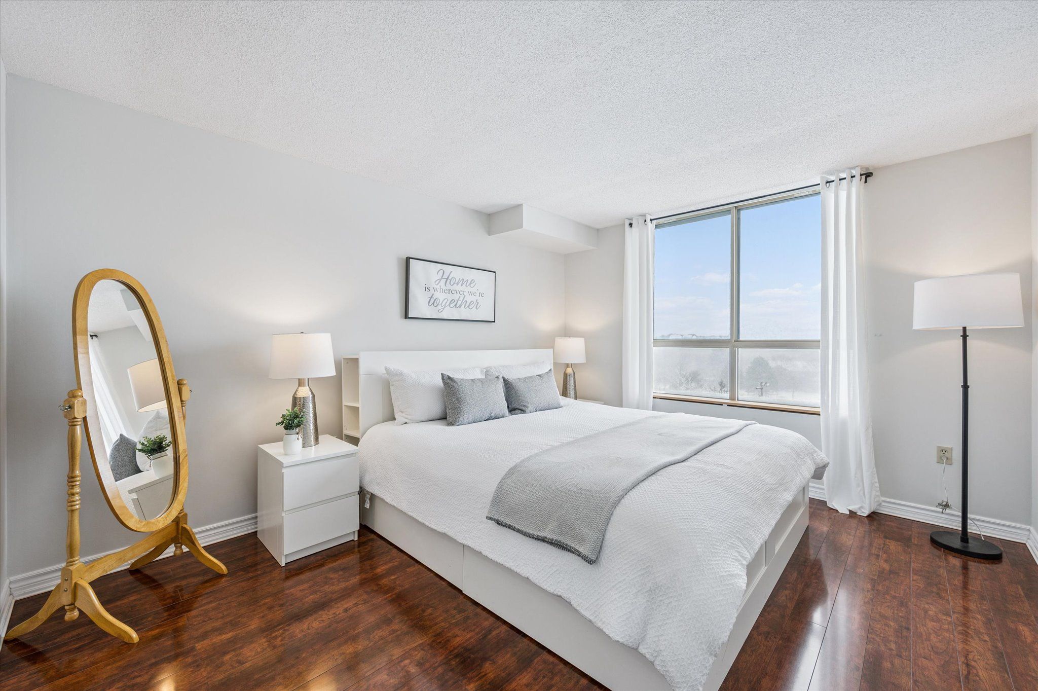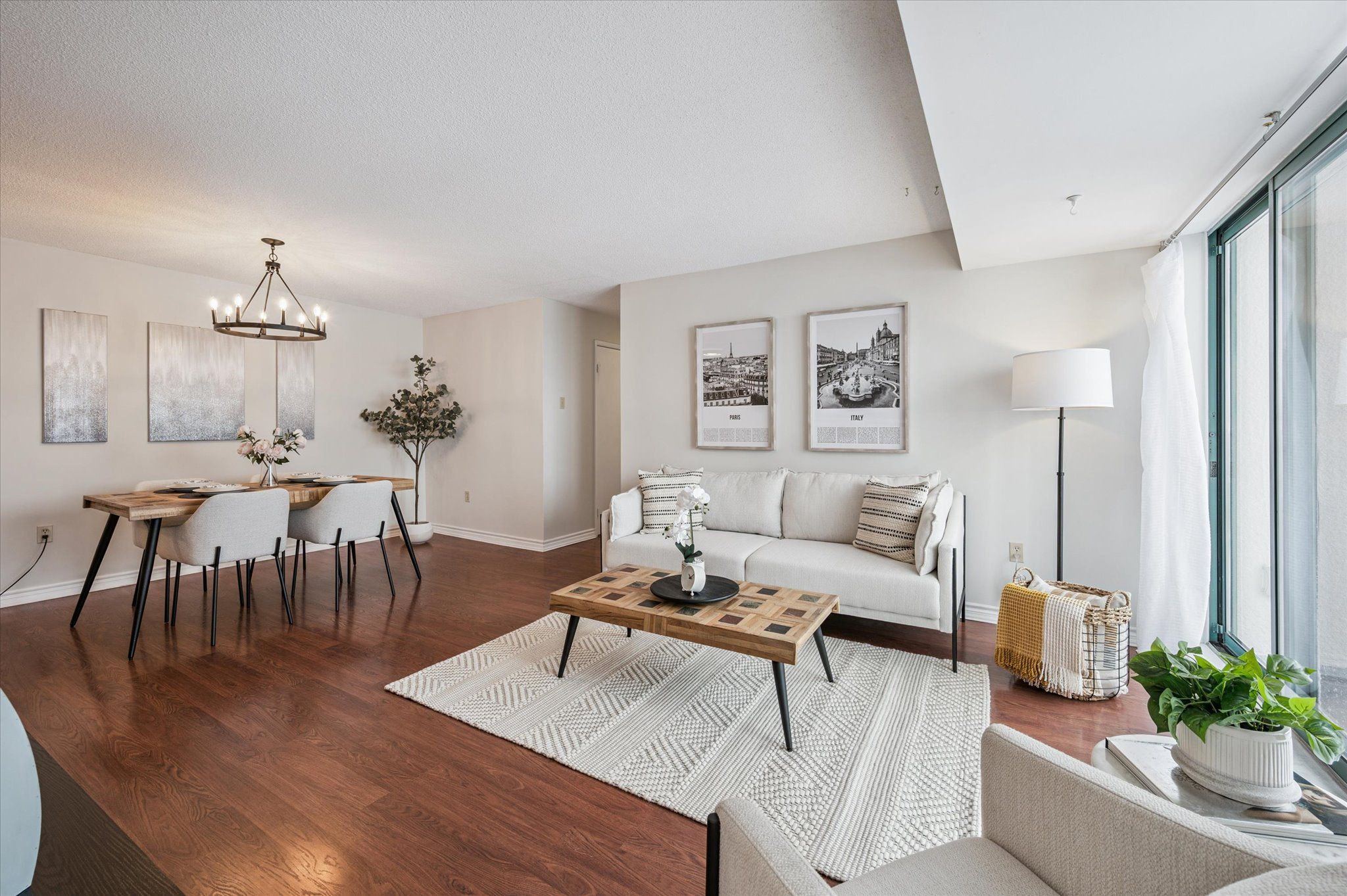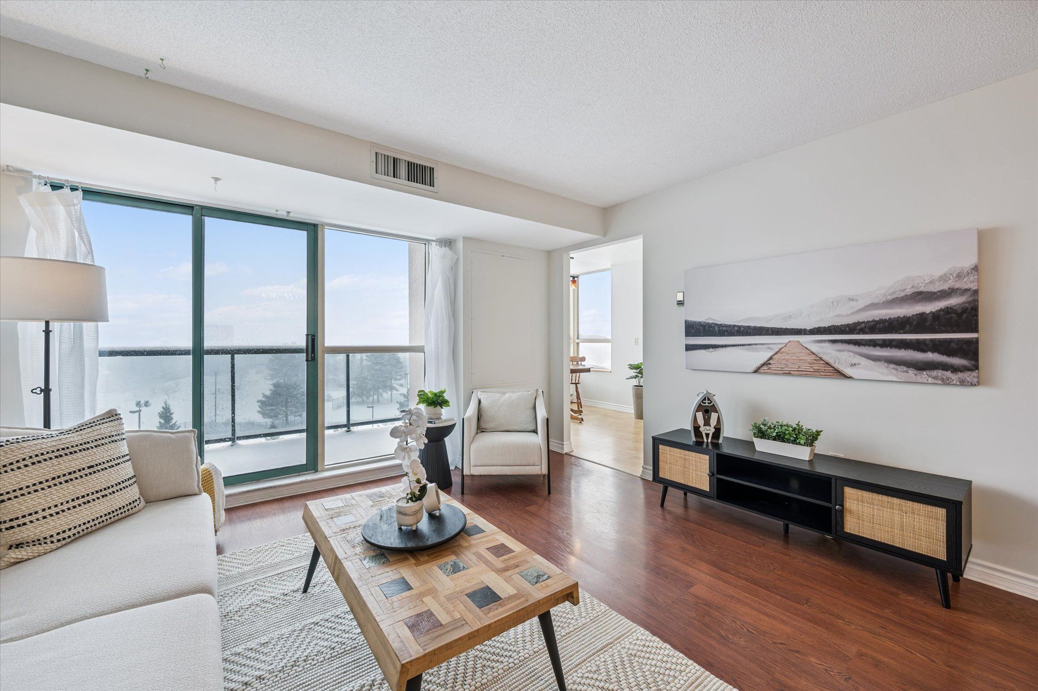 • Open-concept living area with sliding doors to a private balcony.