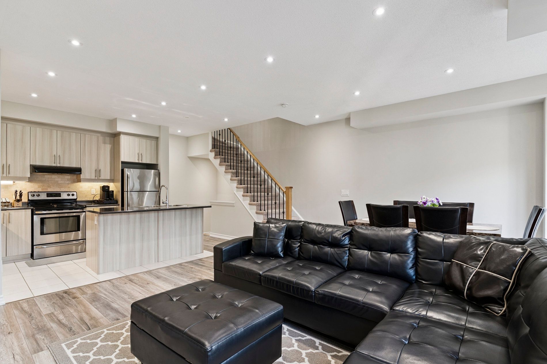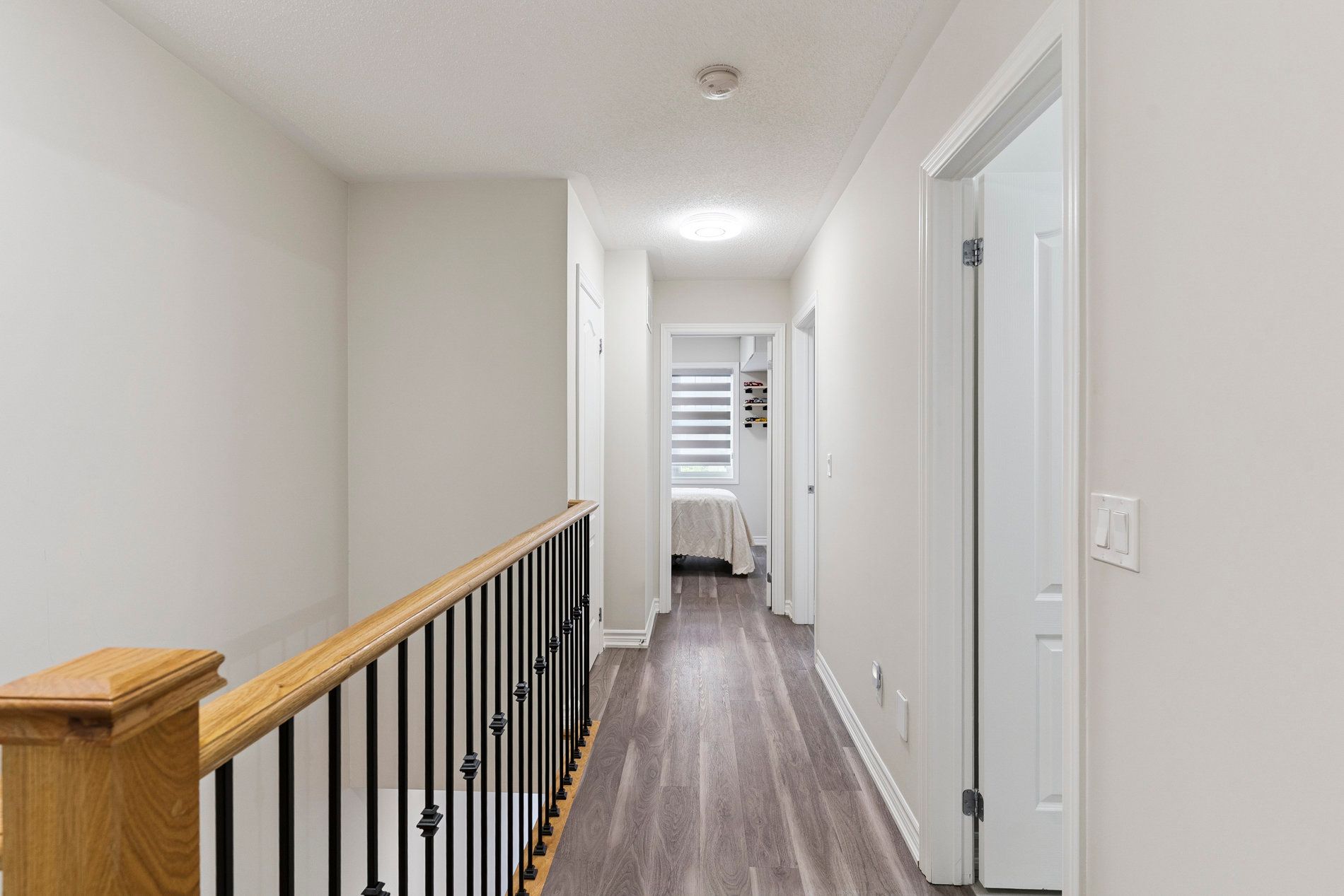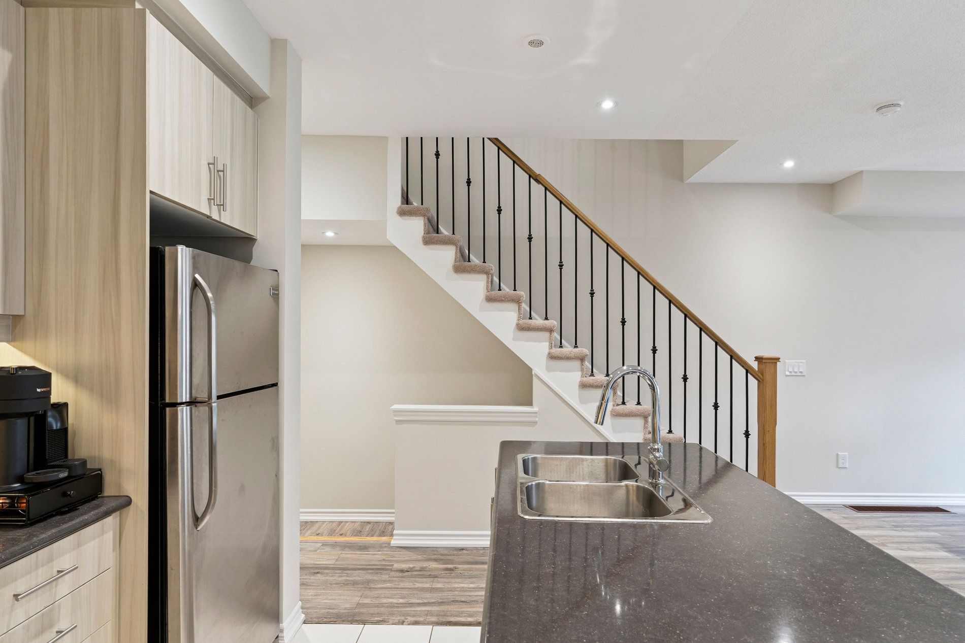 Stylish 2 bedroom + den freehold townhome with 1,359 sq. Ft. And no potl fees! This energy star certified home offers low utilities, a drain water heat recovery unit, programmable nest thermostat and tankless water heater rental. Custom storage cabinets in bedrooms and living room plus a versatile den/office mezzanine with retractable stairs maximizing space. Upgrades include pot lights, modern fixtures, under-cabinet lighting with backsplash, mirror closet sliders, upgraded bathroom mirrors, steel pickets and laminate flooring throughout. Added comforts feature a heated garage with timer, central vac, rough-ins for cameras and bedroom tv. Enjoy efficient, modern living in a highly desirable location close to amenities, schools, parks and transit. Dont miss this one!