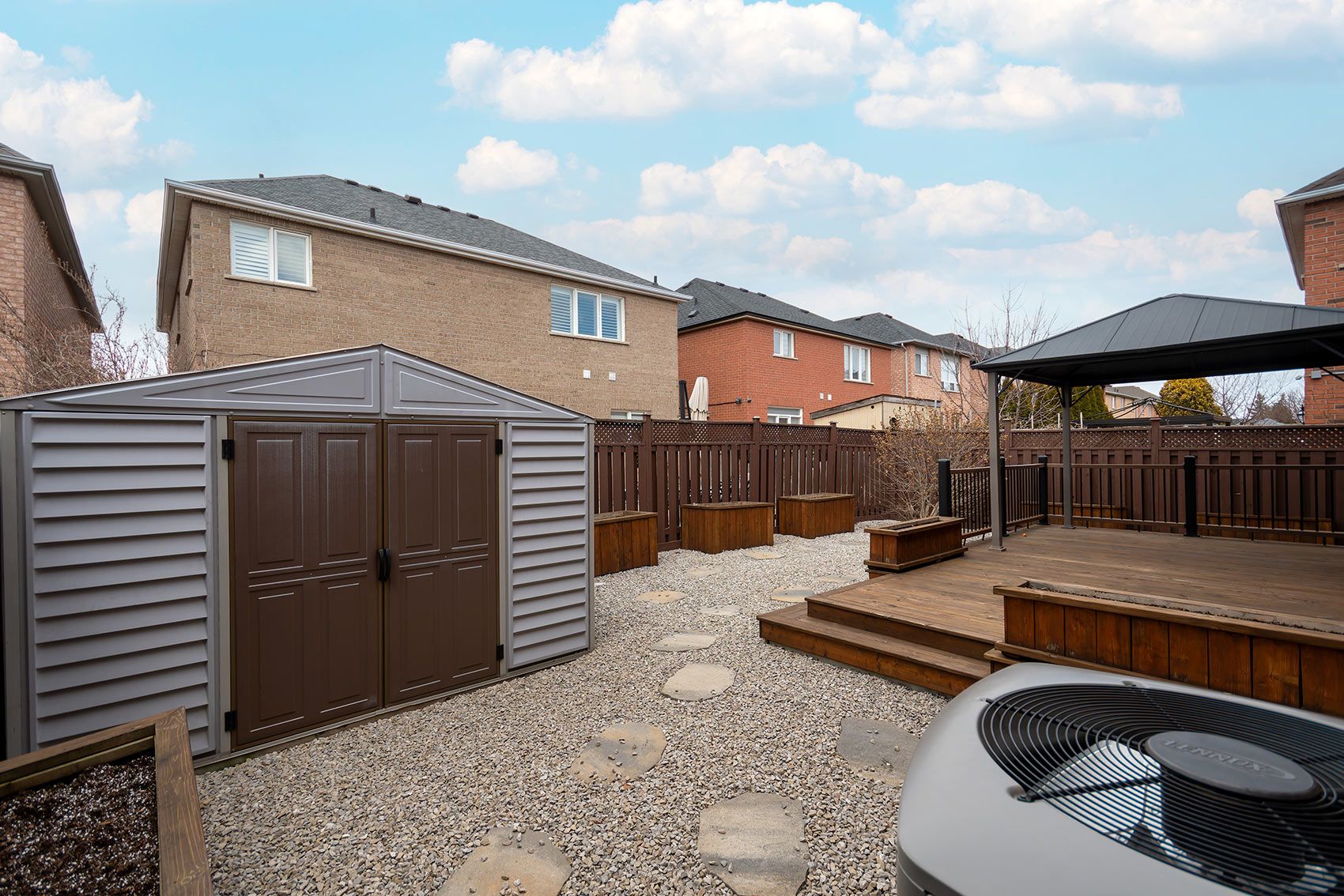 Welcome to this exceptional home in the highly sought-after vellore village community-offered for the first time and built by regal crest homes. Showcasing outstanding curb appeal, this property features an extra-long driveway, double car garage, and parking for up to six vehicles. The low-maintenance, landscaped backyard is perfect for entertaining, complete with a large stained deck, awning, gazebo, patio stones, flower boxes, and a garden shed. Step inside to discover 9-foot smooth ceilings on the main floor and beautiful hardwood strip flooring throughout the main and second levels. The spacious layout includes a main floor laundry room with direct access to the garage, and a family-sized kitchen with a walkout to the deck, overlooking the inviting family room. Upstairs, the generous primary bedroom offers a 5-piece ensuite and a walk-in closet. A private balcony walkout from the third bedroom adds a unique touch. The finished basement provides incredible versatility with an open-concept recreation room, gym area, 3-piece bathroom, and a flexible space ideal for a home office or fifth bedroom, along with ample storage and custom closet organizers. Located in a wonderful, family-friendly neighbourhood, you're just steps to top-rated elementary and high schools, parks, a community centre, shopping, restaurants, and transit. Enjoy convenient access to highway 400, vaughan mills, canada's wonderland, kortright centre, vaughan cortellucci hospital, go transit, and the subway. A truly fantastic place to call home