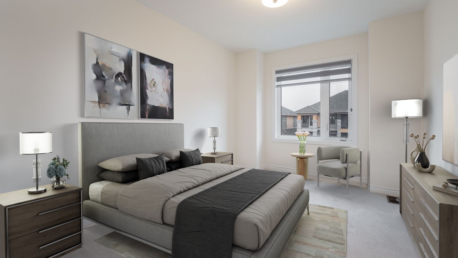 • Spacious master bedroom features a full ensuite with shower and tub.