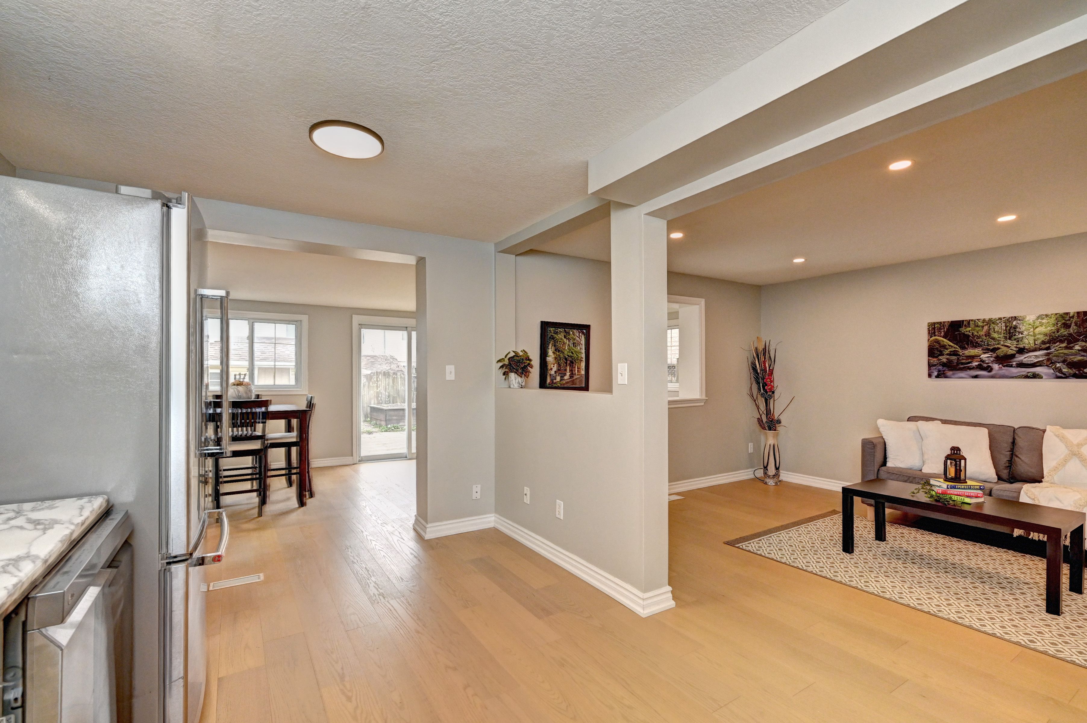• Renovated with a spacious living room and modern kitchen.