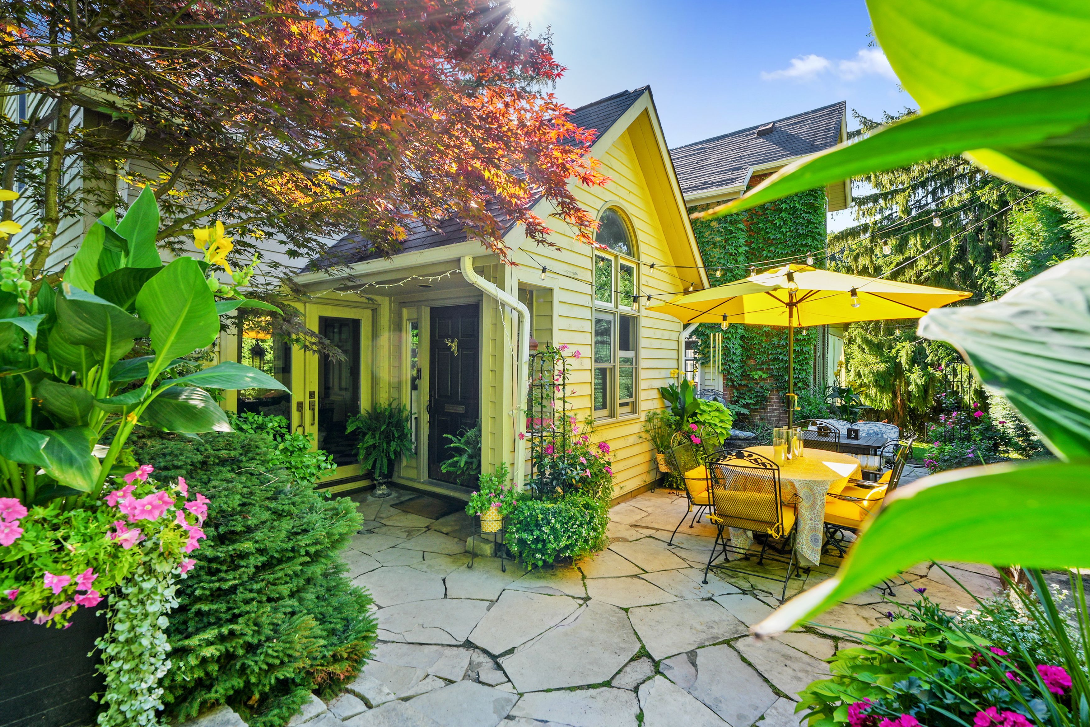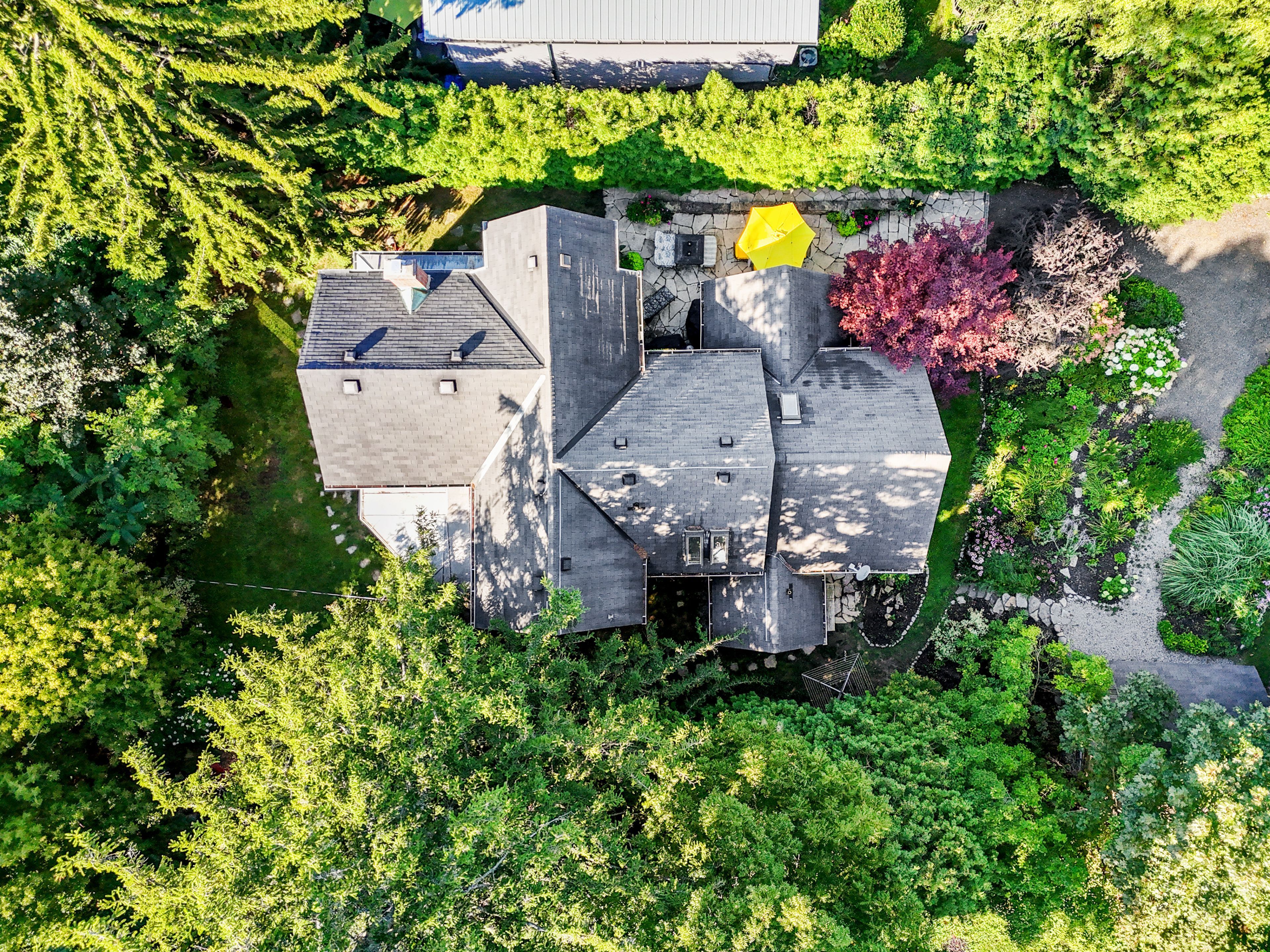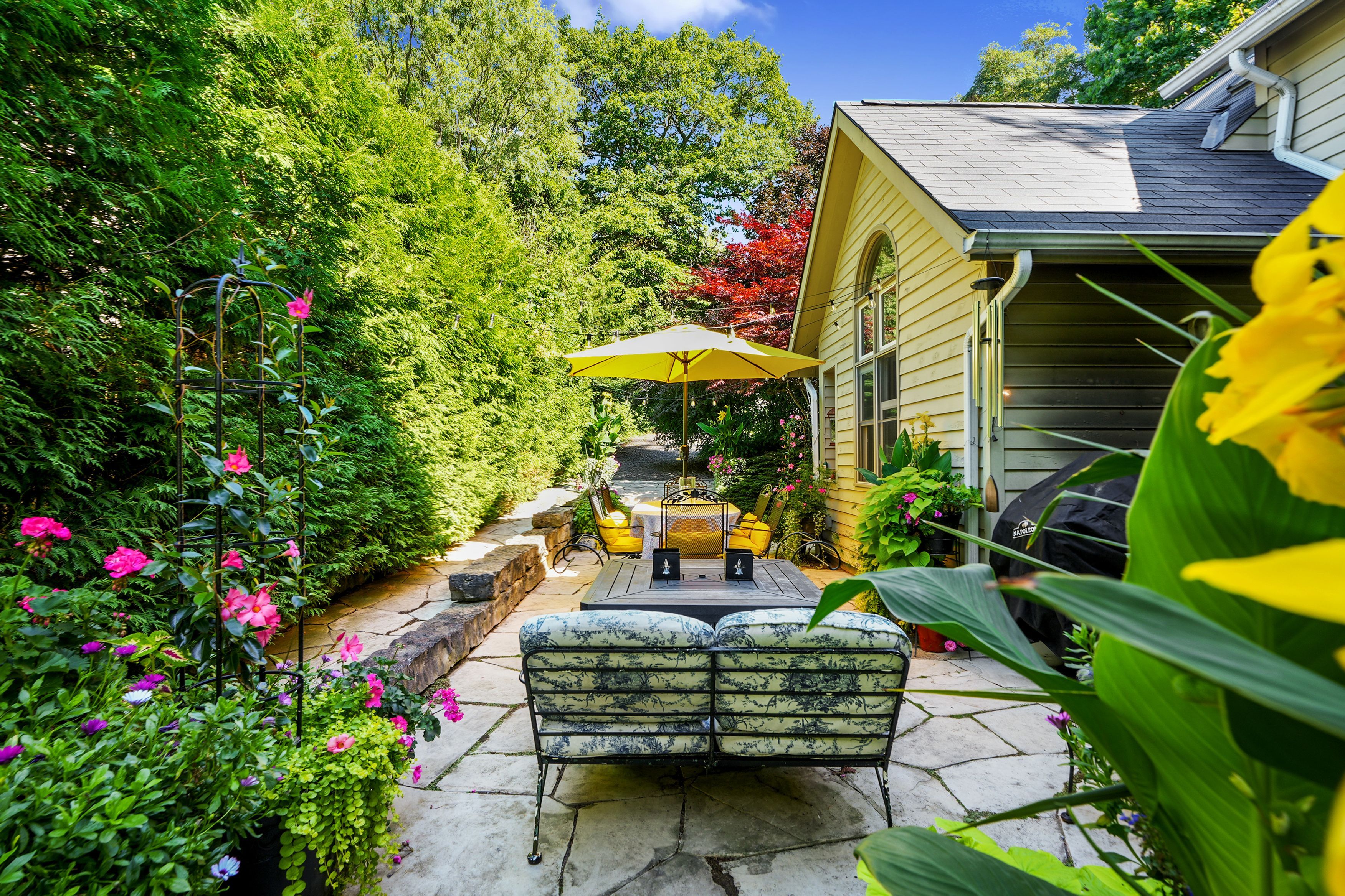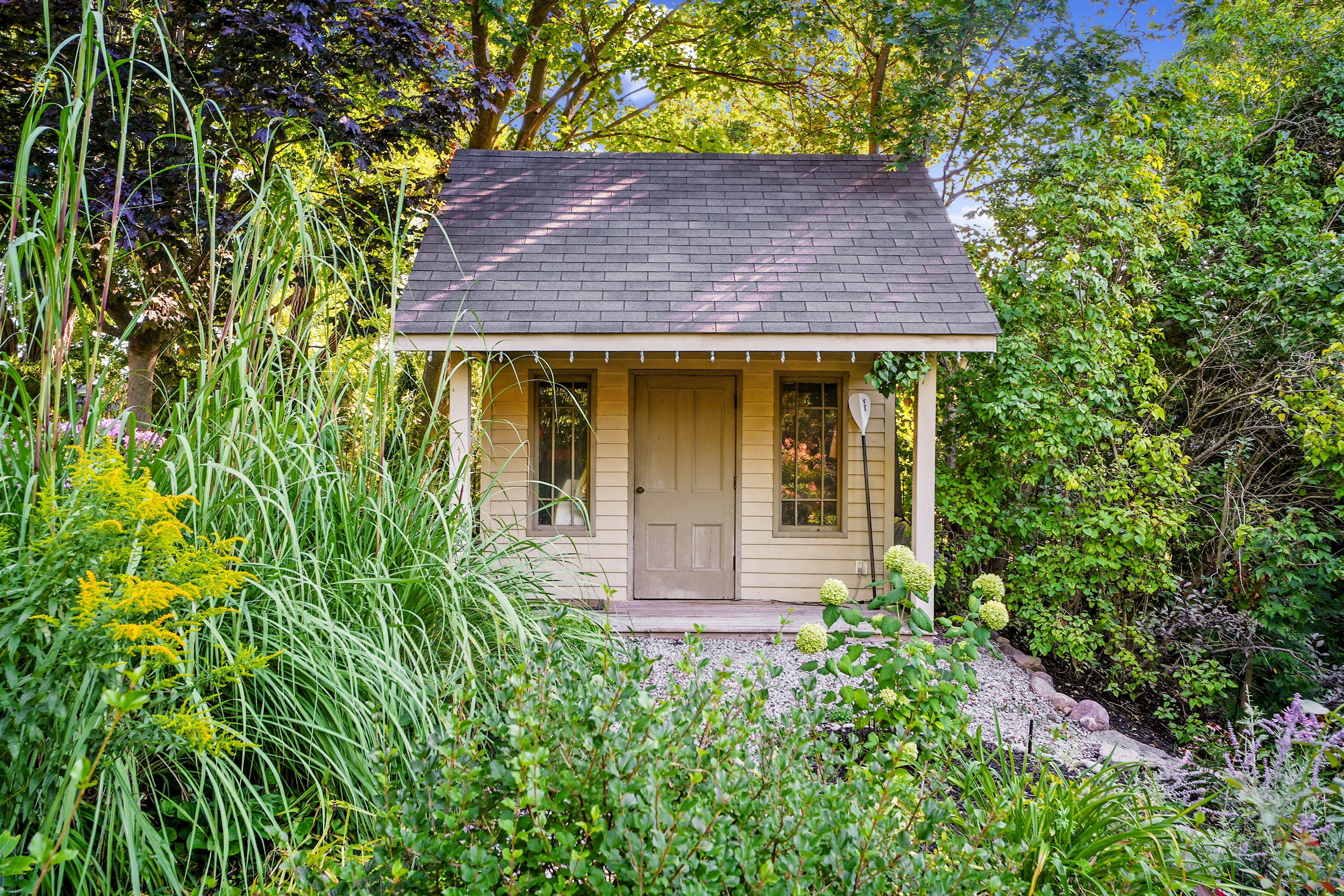 Located on a picturesque, tree-lined street in the heart of downtown port hope, this distinctive 1850s-built home blends timeless character with thoughtful modern updates. Guests are greeted by a beautiful open foyer featuring a striking floor design and large windows that flood the space with natural light. The living room impresses with a sun-soaked layout, a wall of windows, and a soaring two-storey ceiling. In contrast, the spacious dining room showcases detailed trim and high baseboards, an ideal setting for holiday gatherings and year-round entertaining. The kitchen is designed for hosting, offering generous cabinet and counter space, a coffee bar area, gas stove, breakfast bar, and a prep counter accented by pendant lighting. A character-filled sitting or music room connects to the family room through an elegant arched doorway. The cozy family room features an ornate decorative fireplace and floor-to-ceiling windows overlooking the gardens. A main-floor three-piece bathroom and a convenient laundry room complete this level. Upstairs, the primary bedroom offers a spacious retreat with dual closets featuring french doors, high ceilings, and recessed lighting. The bathroom includes skylights, a glass shower enclosure, and a relaxing soaker tub. Two well-appointed bedrooms and an open loft ideal for a home office or guest space complete the upper floor plan. Outside, a private secret garden oasis awaits. Enjoy a covered porch perfect for morning coffee in any weather, a back patio ideal for alfresco dining, and lush mature trees and gardens, all complemented by a charming bunkie. Situated moments from trinity college school local amenities, downtown shops, and restaurants, this home offers the exceptional lifestyle port hope is known for, with easy access to the 401.