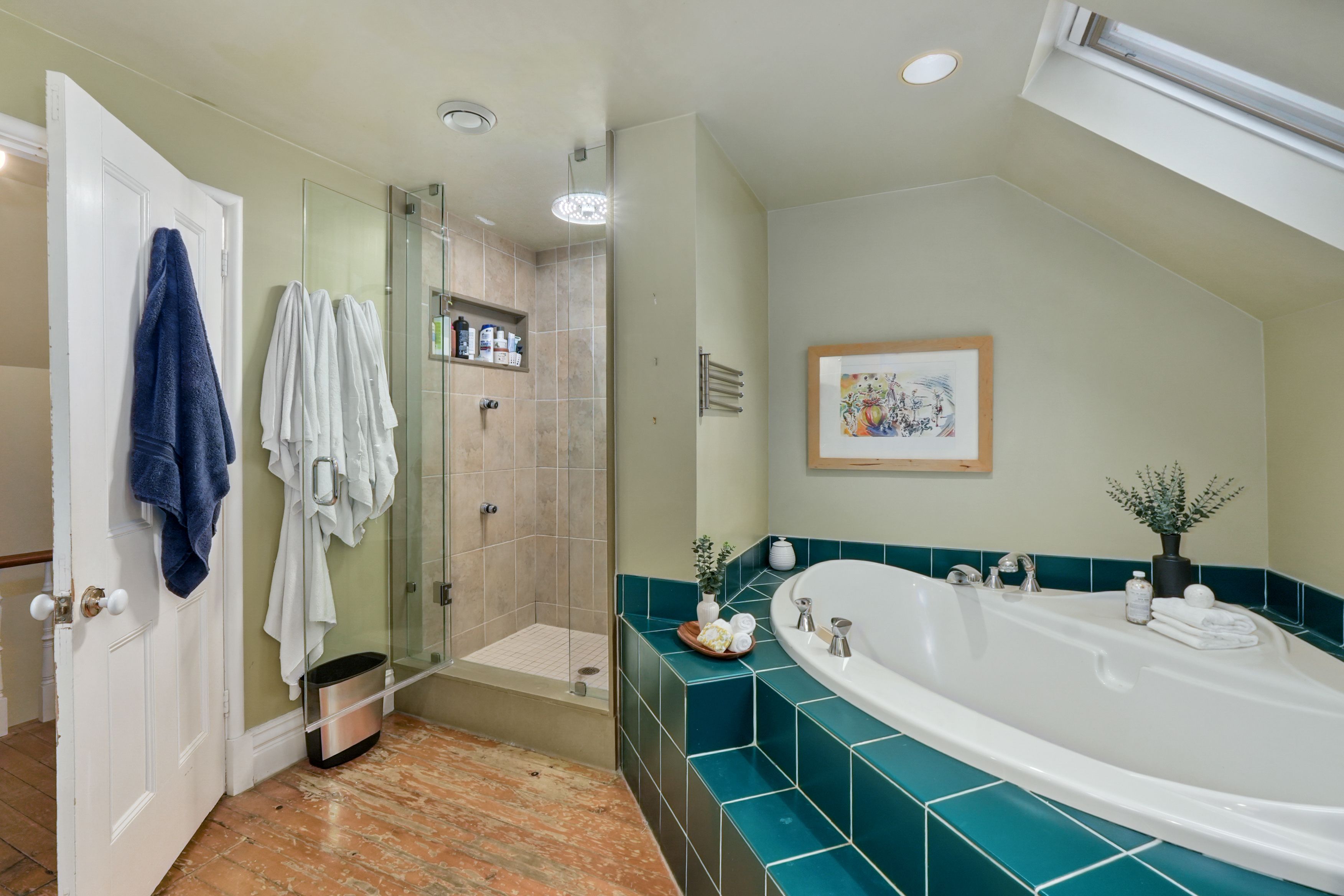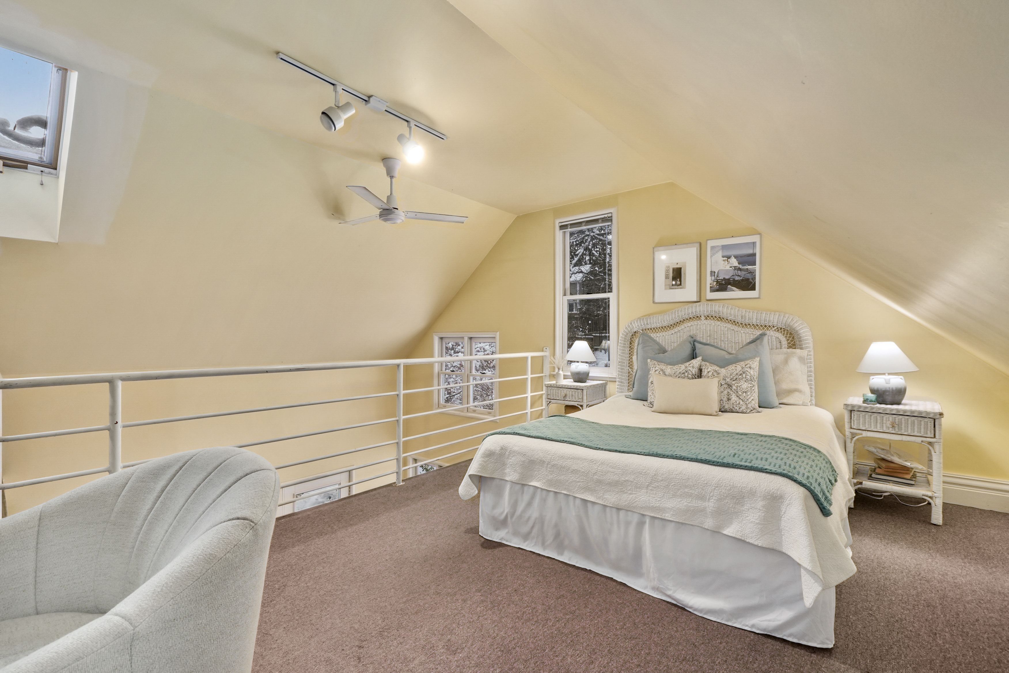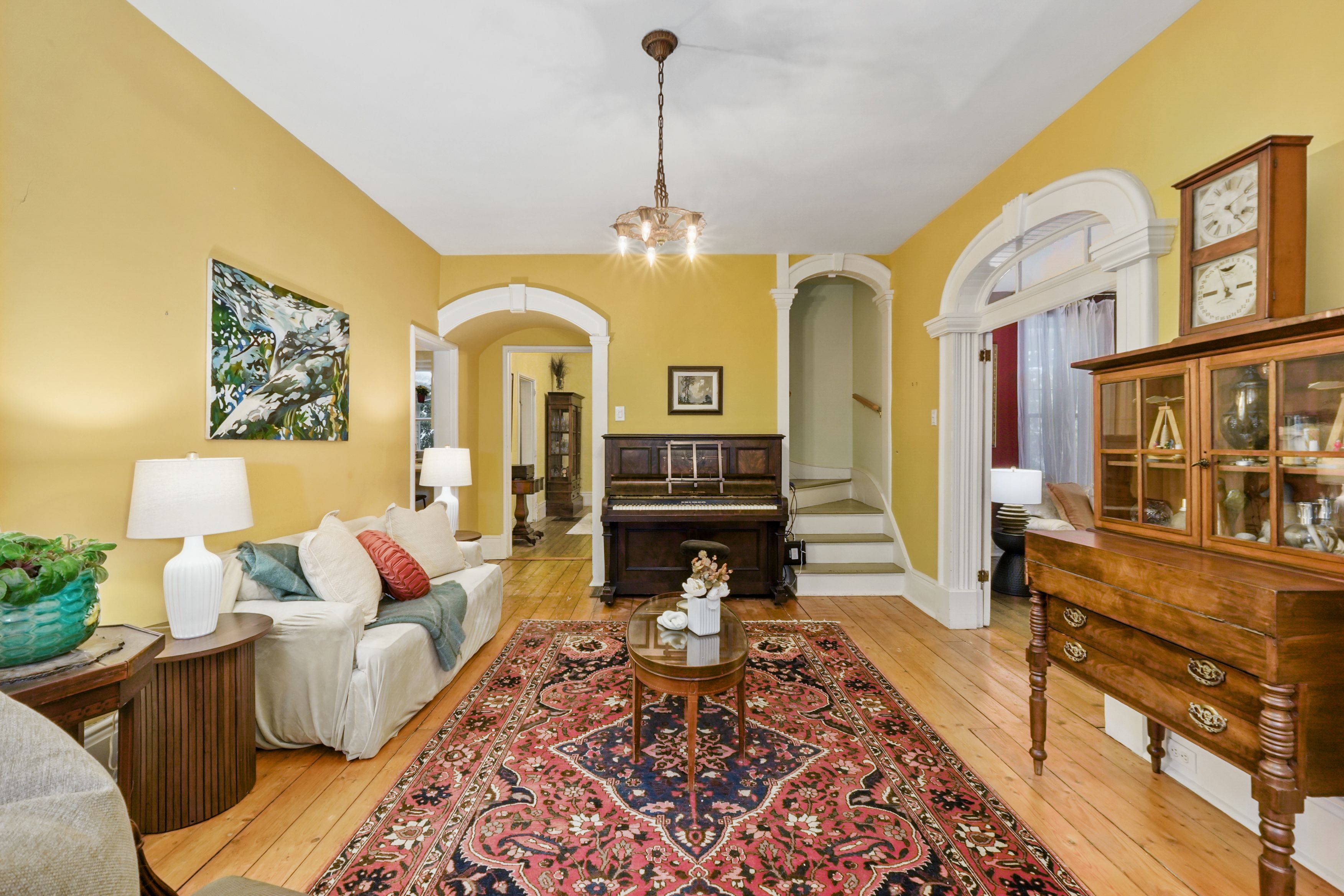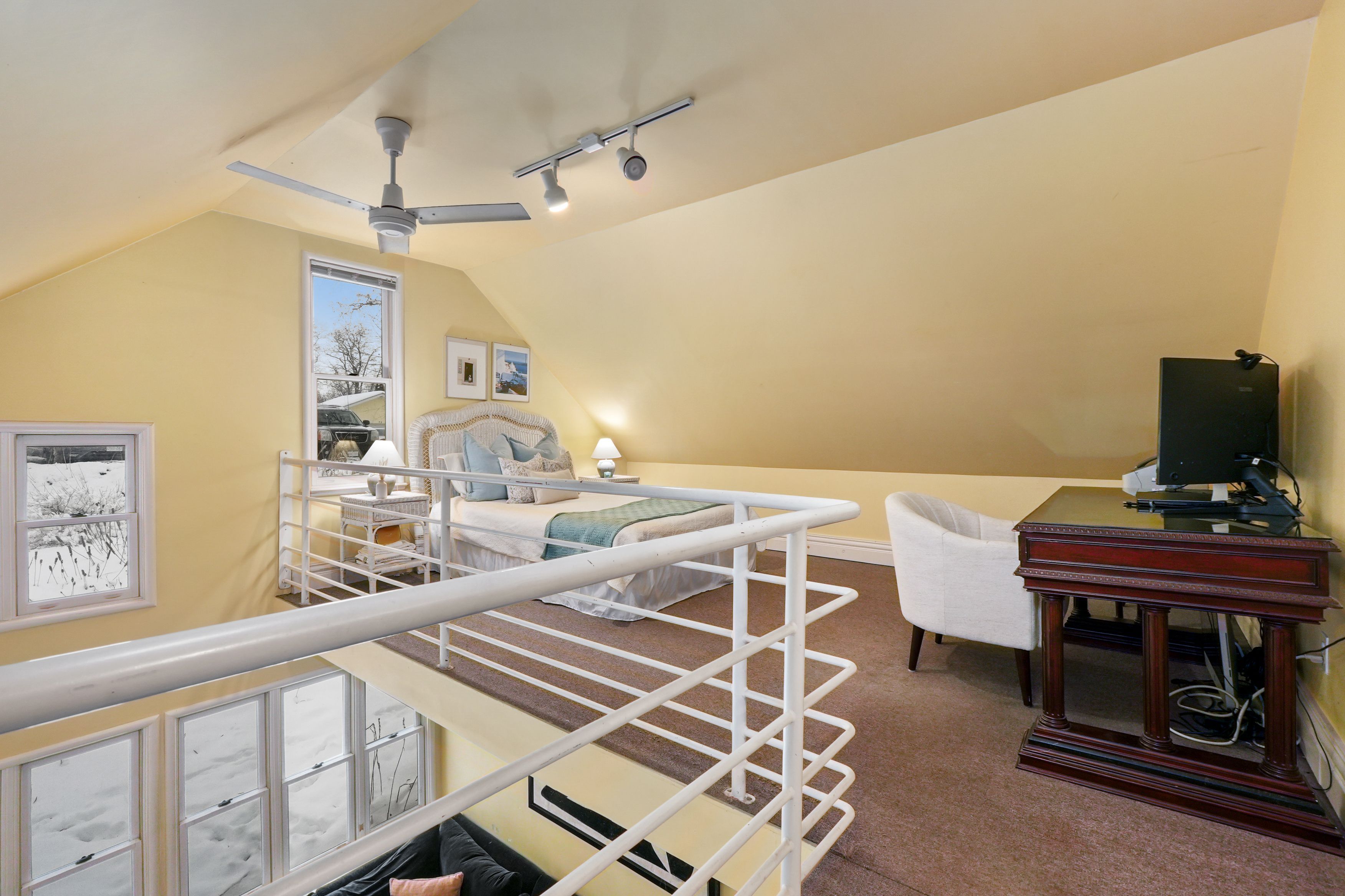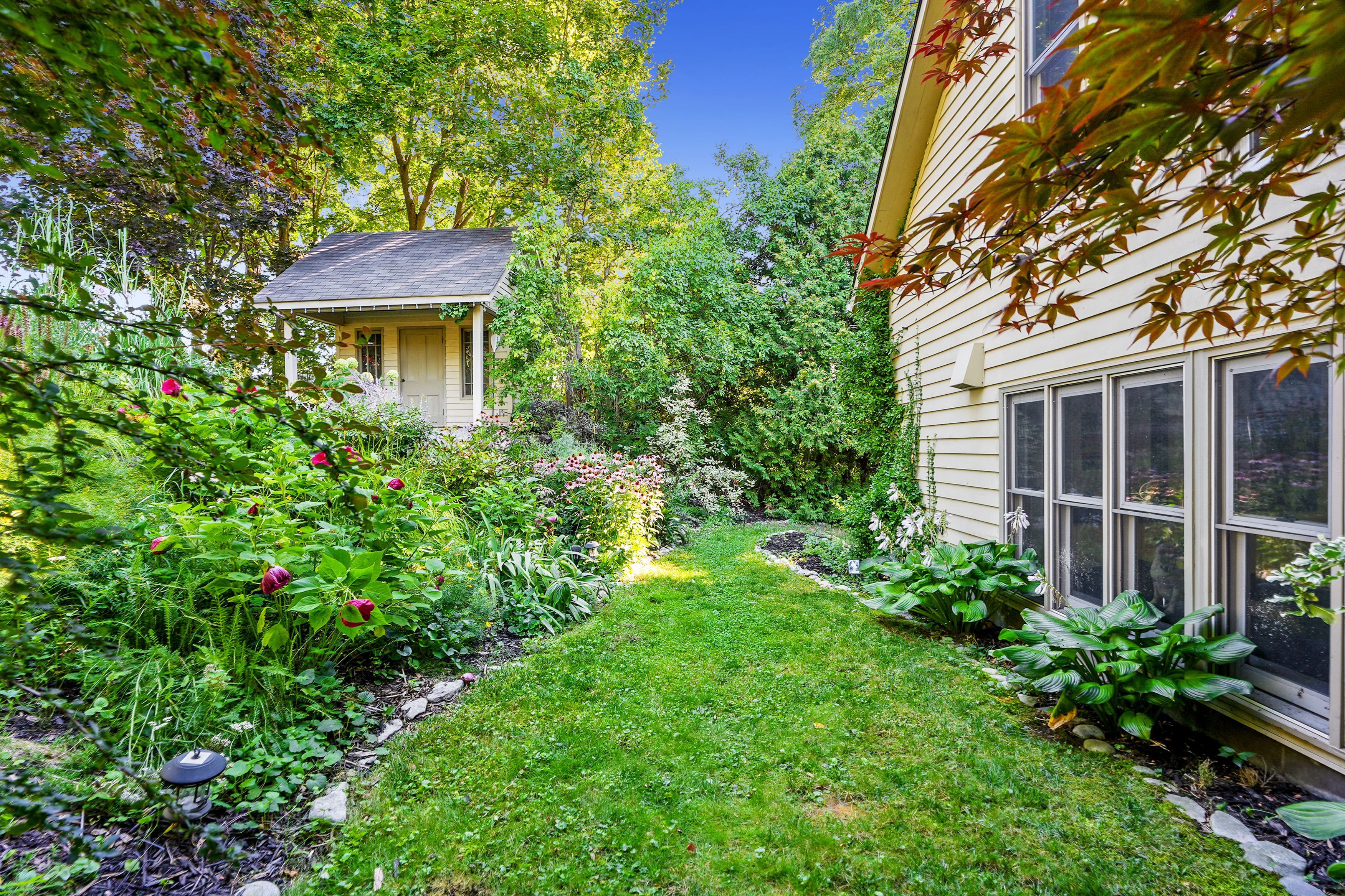 Located on a picturesque, tree-lined street in the heart of downtown port hope, this distinctive 1850s-built home blends timeless character with thoughtful modern updates. Guests are greeted by a beautiful open foyer featuring a striking floor design and large windows that flood the space with natural light. The living room impresses with a sun-soaked layout, a wall of windows, and a soaring two-storey ceiling. In contrast, the spacious dining room showcases detailed trim and high baseboards, an ideal setting for holiday gatherings and year-round entertaining. The kitchen is designed for hosting, offering generous cabinet and counter space, a coffee bar area, gas stove, breakfast bar, and a prep counter accented by pendant lighting. A character-filled sitting or music room connects to the family room through an elegant arched doorway. The cozy family room features an ornate decorative fireplace and floor-to-ceiling windows overlooking the gardens. A main-floor three-piece bathroom and a convenient laundry room complete this level. Upstairs, the primary bedroom offers a spacious retreat with dual closets featuring french doors, high ceilings, and recessed lighting. The bathroom includes skylights, a glass shower enclosure, and a relaxing soaker tub. Two well-appointed bedrooms and an open loft ideal for a home office or guest space complete the upper floor plan. Outside, a private secret garden oasis awaits. Enjoy a covered porch perfect for morning coffee in any weather, a back patio ideal for alfresco dining, and lush mature trees and gardens, all complemented by a charming bunkie. Situated moments from trinity college school local amenities, downtown shops, and restaurants, this home offers the exceptional lifestyle port hope is known for, with easy access to the 401.