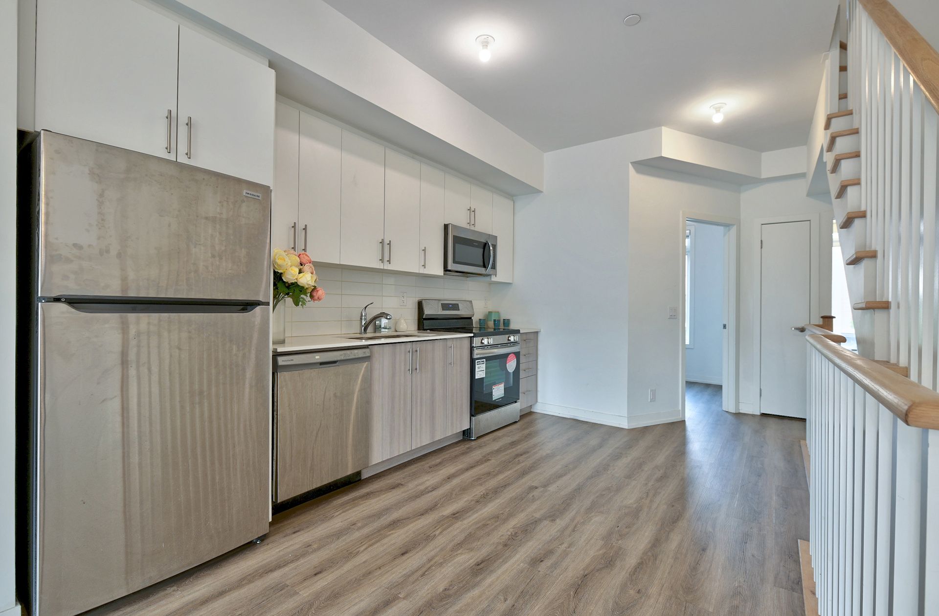 One year new townhouse, easy access to ttc bus route; minutes to lrt. 10 minutes walk to the future 19-acre redevelopment golden mile shopping district. Spacious, 4 bedrooms, 4 bathrooms. Laminate flooring throughout, open concept & modern kitchen, quartz countertop, natural oak staircases, private ground floor garage w/direct access to home. Main floor den can be used an office or bedroom, perfect for working at home.