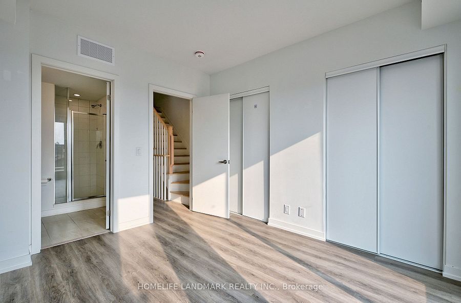 One year new townhouse, easy access to ttc bus route; minutes to lrt. 10 minutes walk to the future 19-acre redevelopment golden mile shopping district. Spacious, 4 bedrooms, 4 bathrooms. Laminate flooring throughout, open concept & modern kitchen, quartz countertop, natural oak staircases, private ground floor garage w/direct access to home. Main floor den can be used an office or bedroom, perfect for working at home.