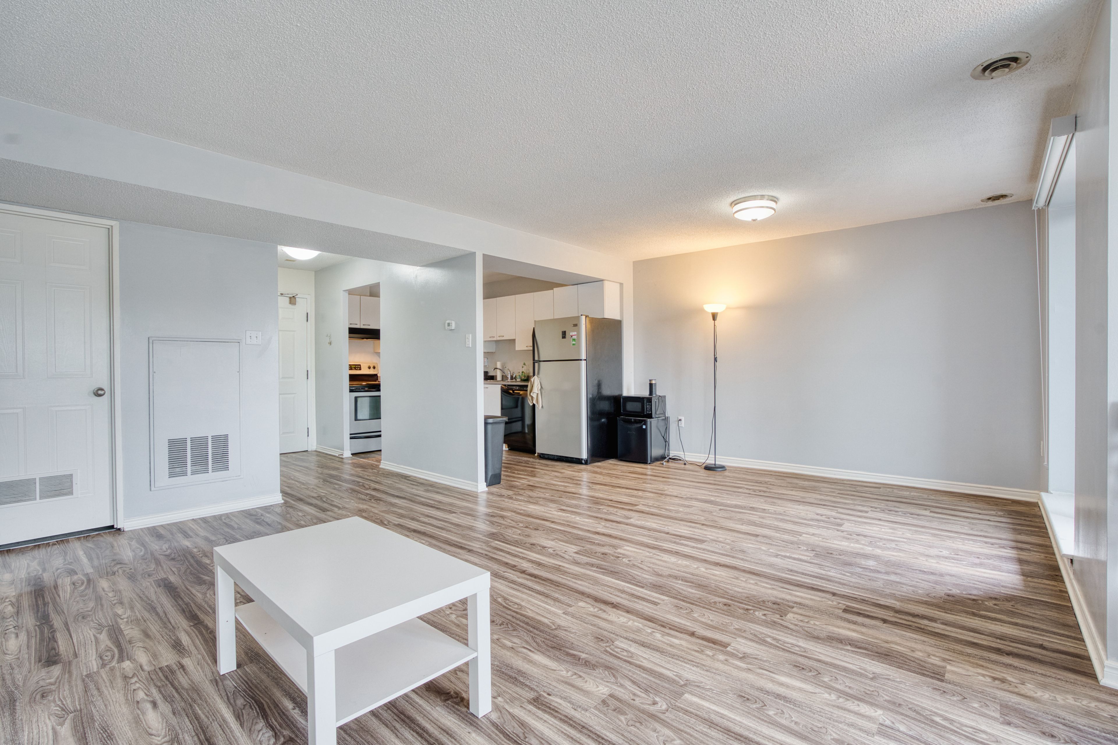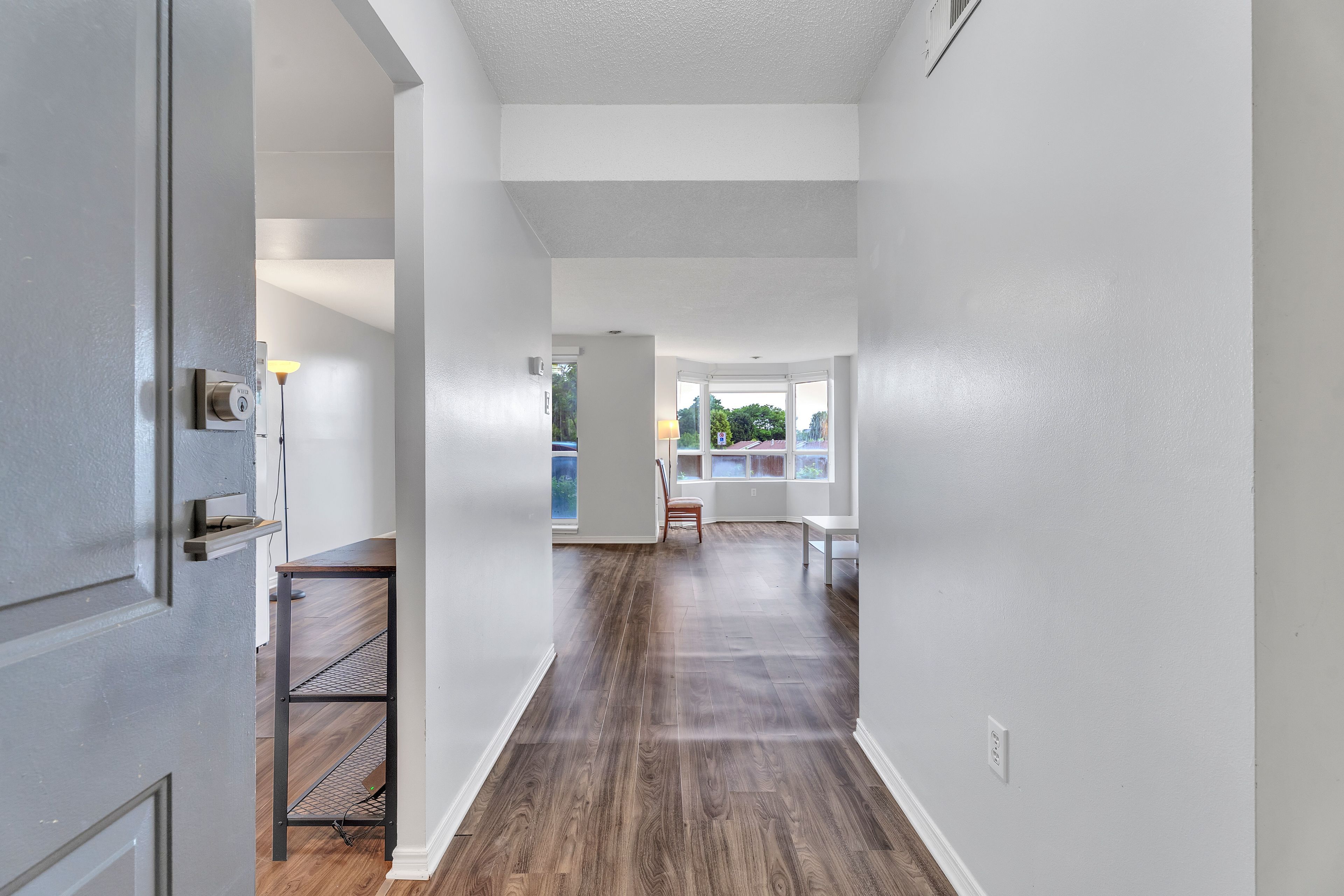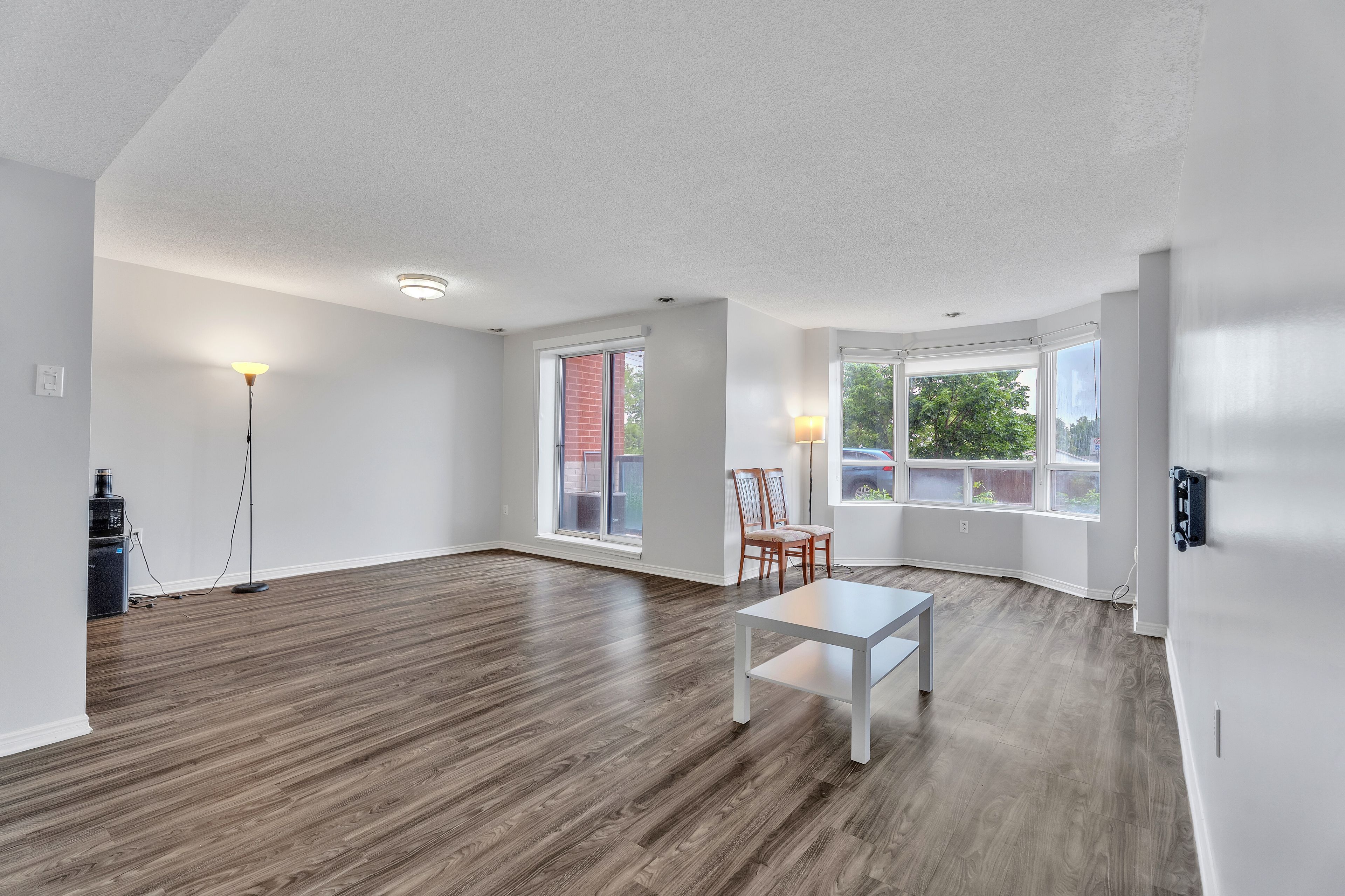 • Spacious open concept design with large windows and a walkout balcony.