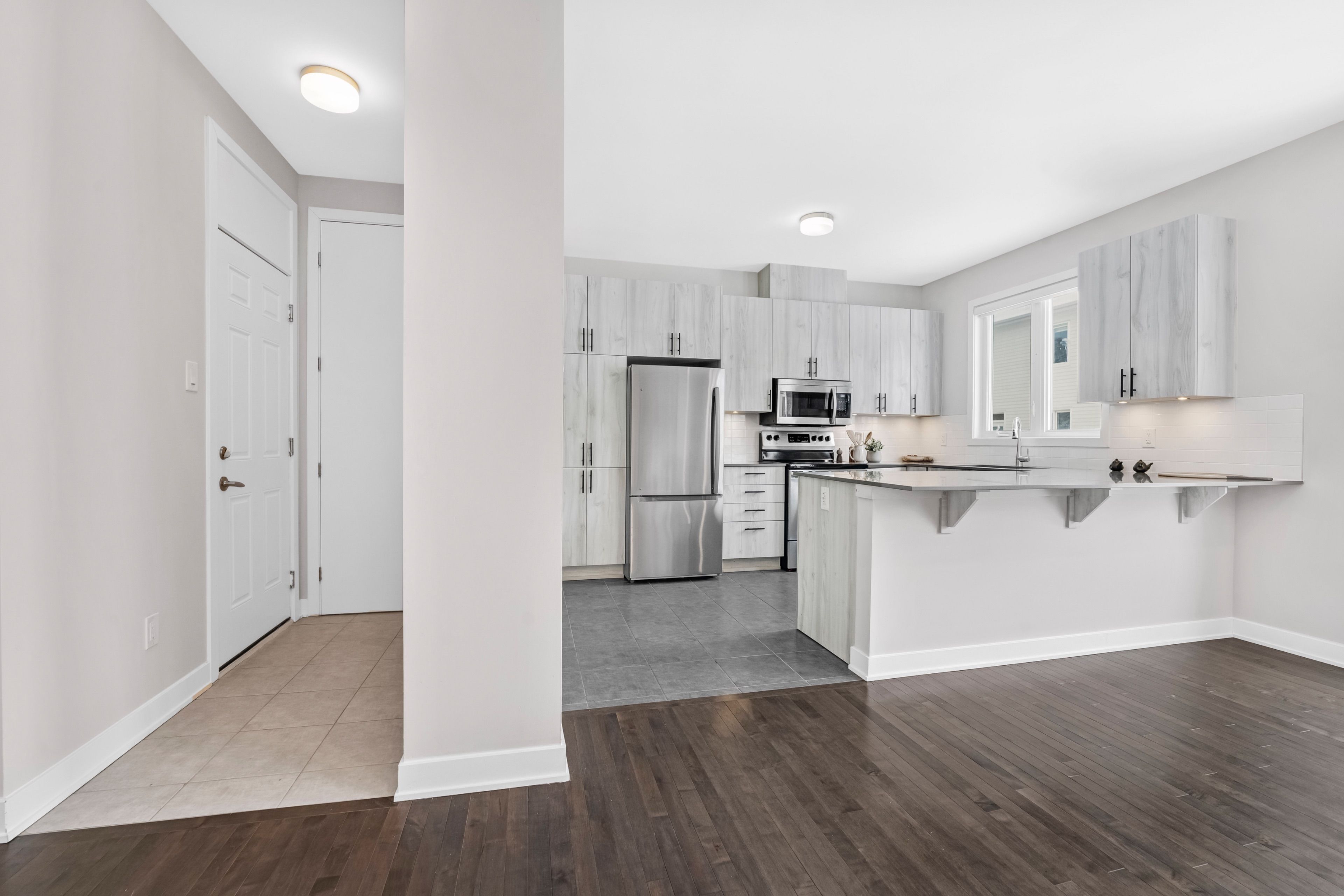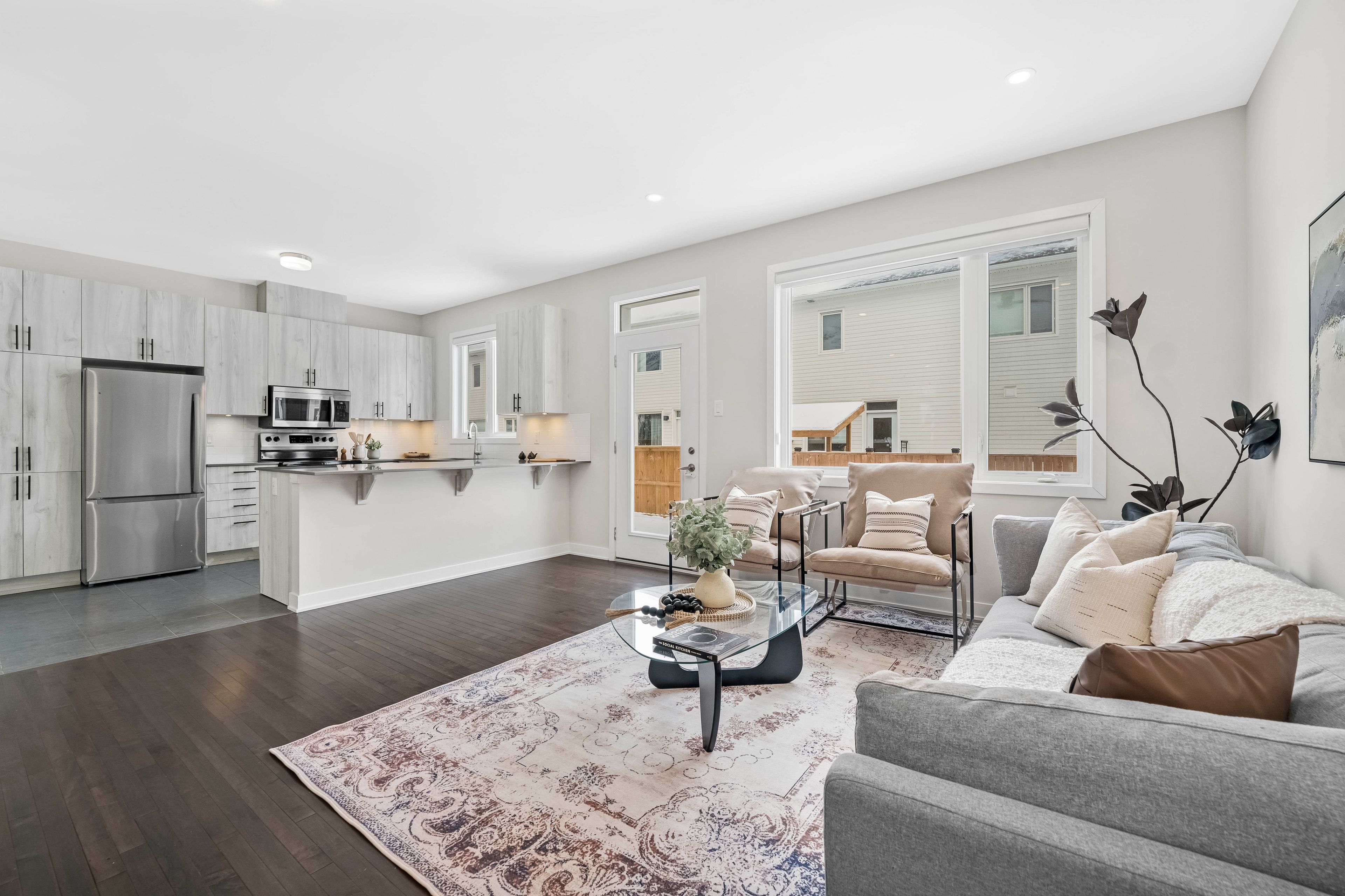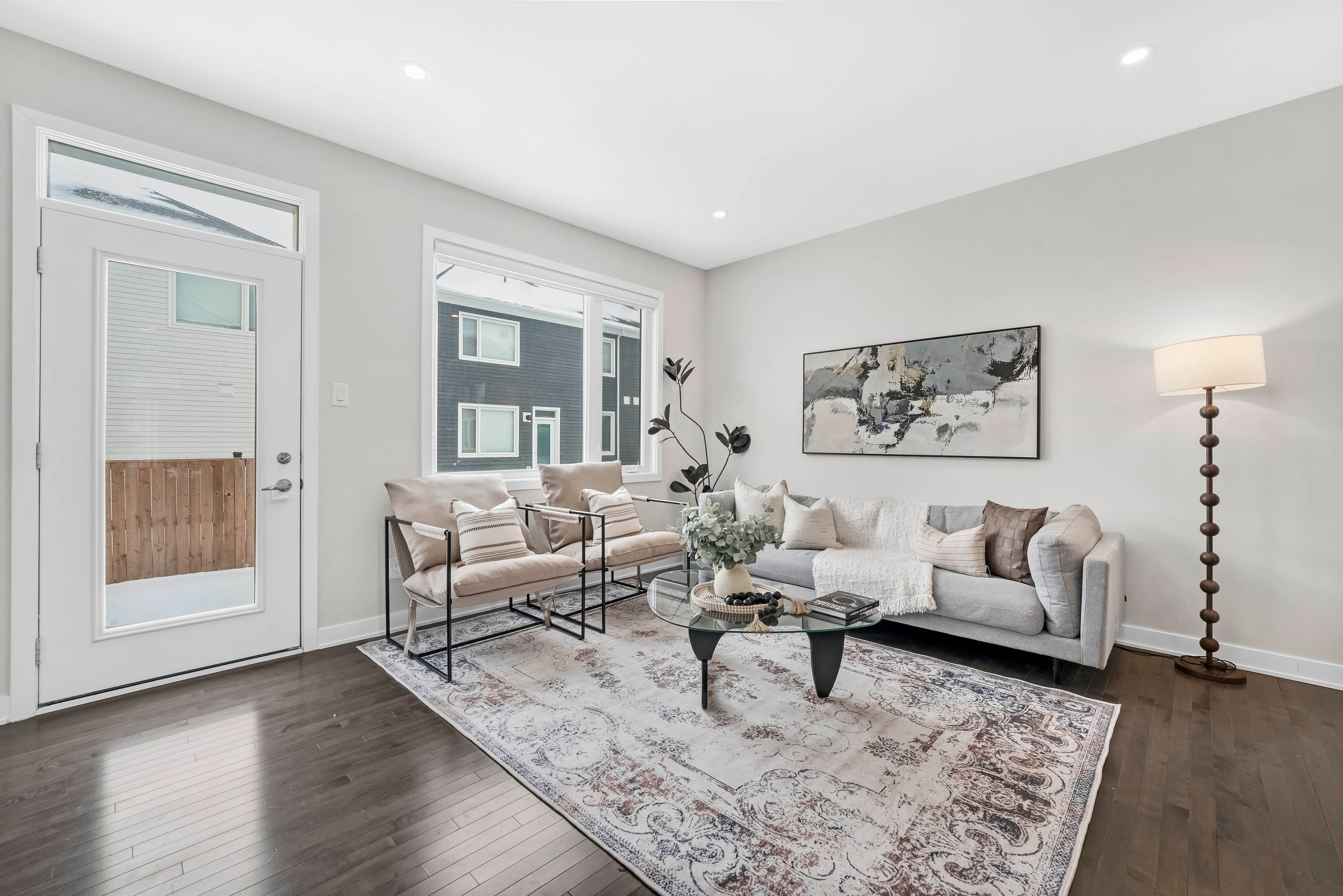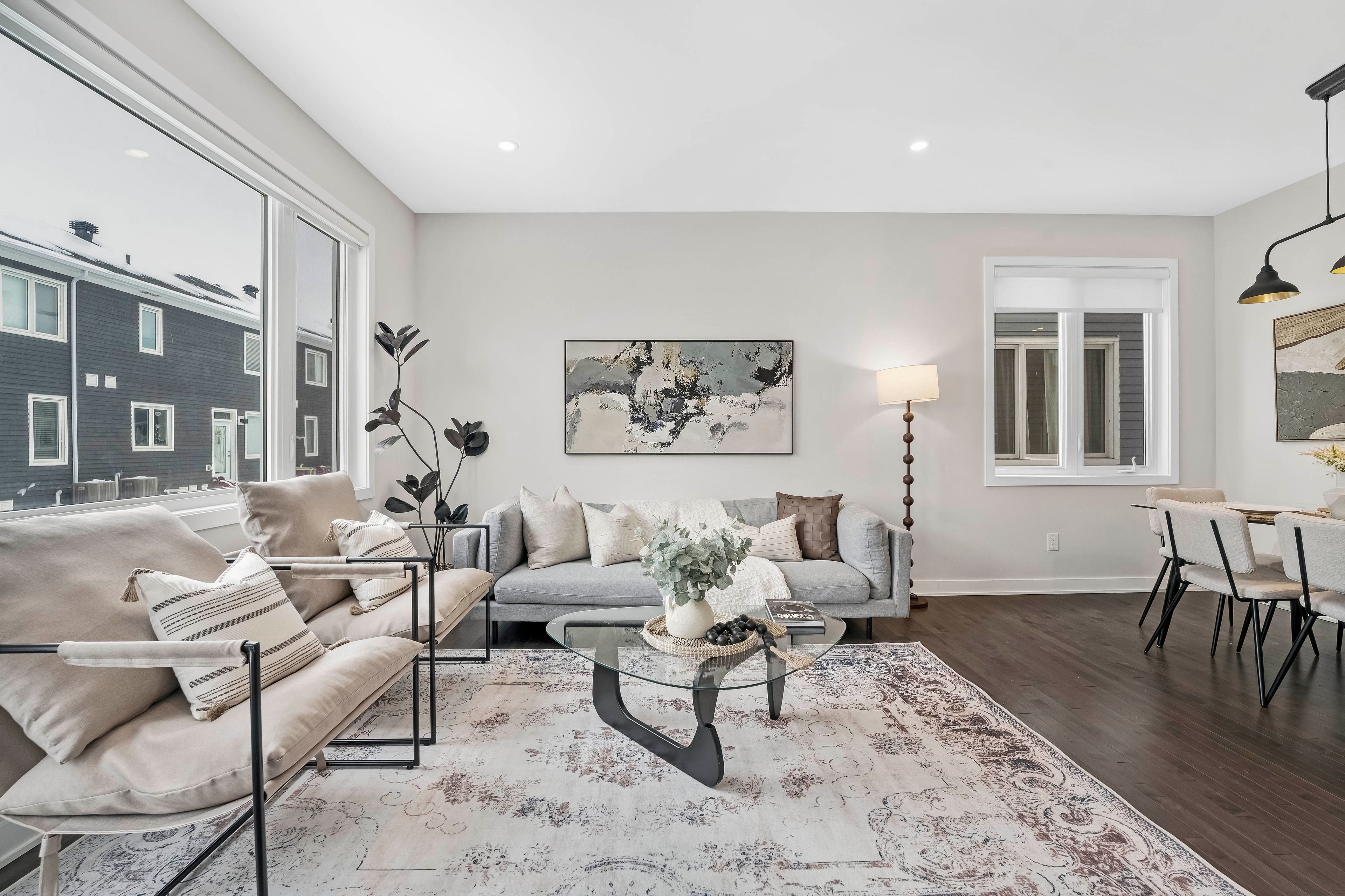 This is a beautifully designed end unit townhome that offers modern living at its finest. With 3 bedrooms, 2. 5 bathrooms, and a finished basement, there is plenty of space for any family. The open-concept floor plan creates a welcoming atmosphere, ideal for entertaining guests. The living area is bright and airy, thanks to an abundance of natural light. The kitchen is equipped with high-quality stainless steel appliances and a sleek quartz countertop. The master bedroom, located on the 2nd floor, boasts a spacious walk-in closet and a luxurious ensuite bathroom. The other bedrooms on the 2nd floor are also generously sized and well-lit, with a shared full bathroom. The finished basement is spacious and ideal for entertaining. Outside, the generous backyard is perfect for hosting and enjoying outdoor activities. Comes with a single garage and driveway parking. Located in a desirable neighbourhood, this townhome is conveniently close to shopping, restaurants, and parks.