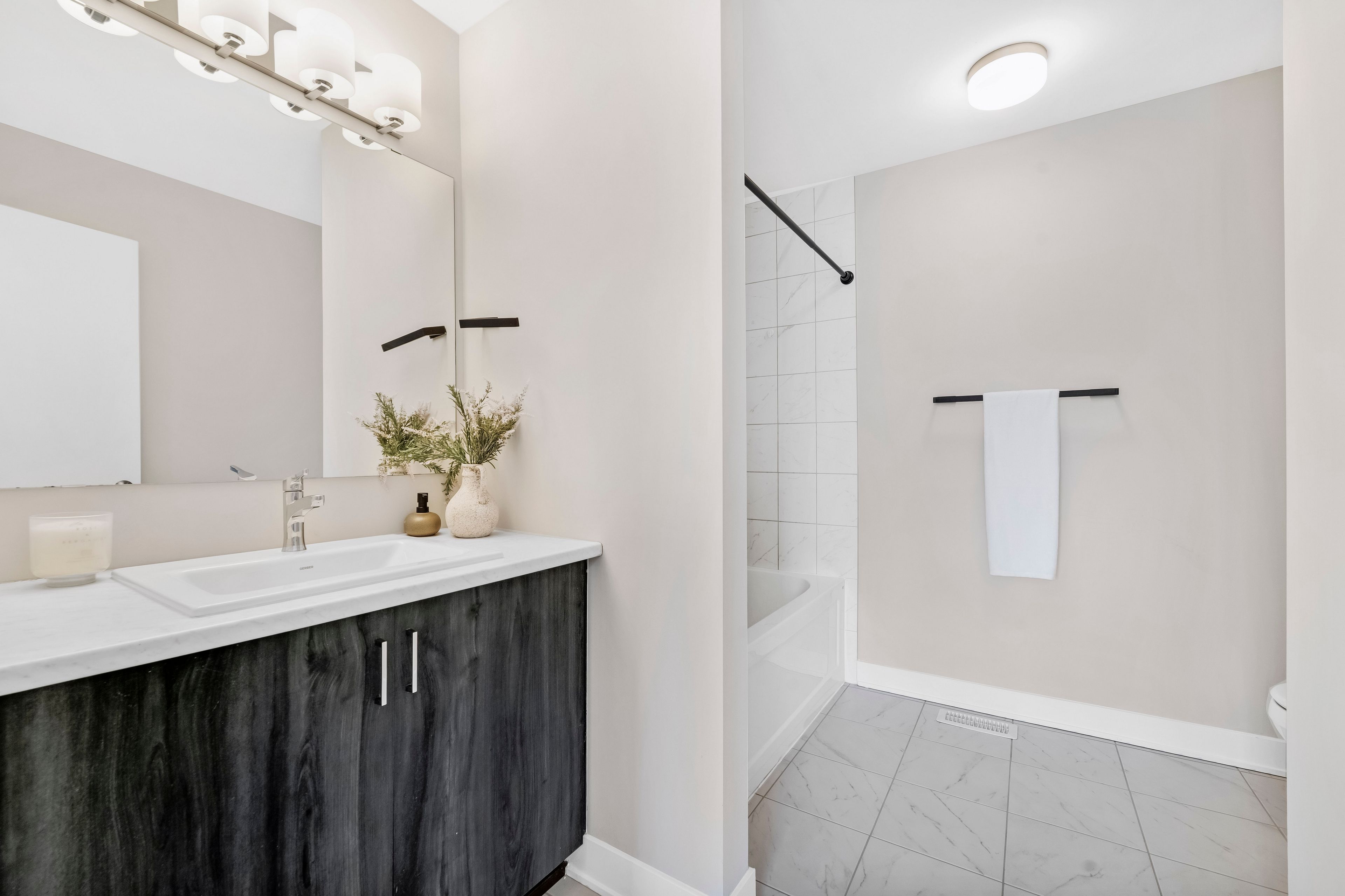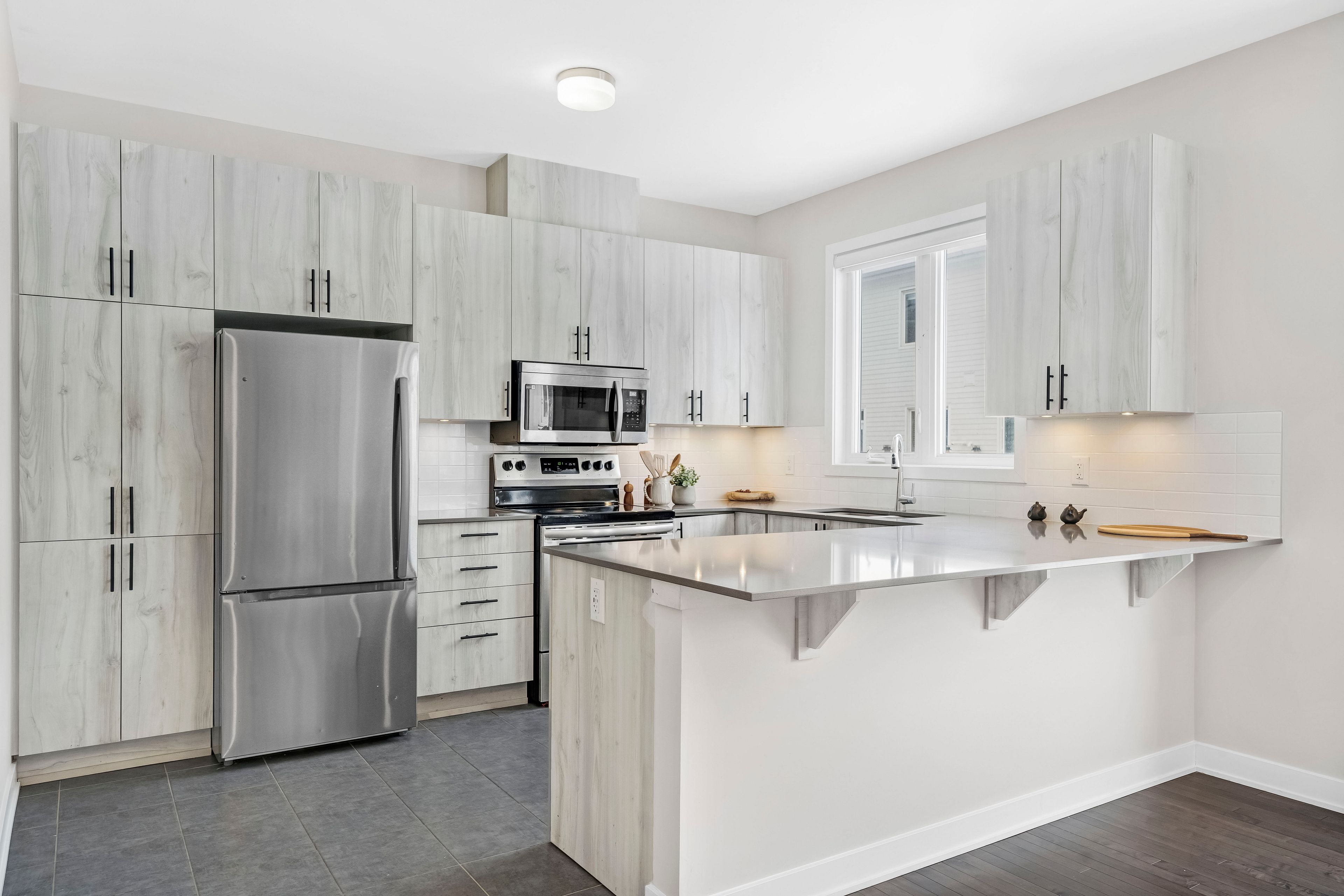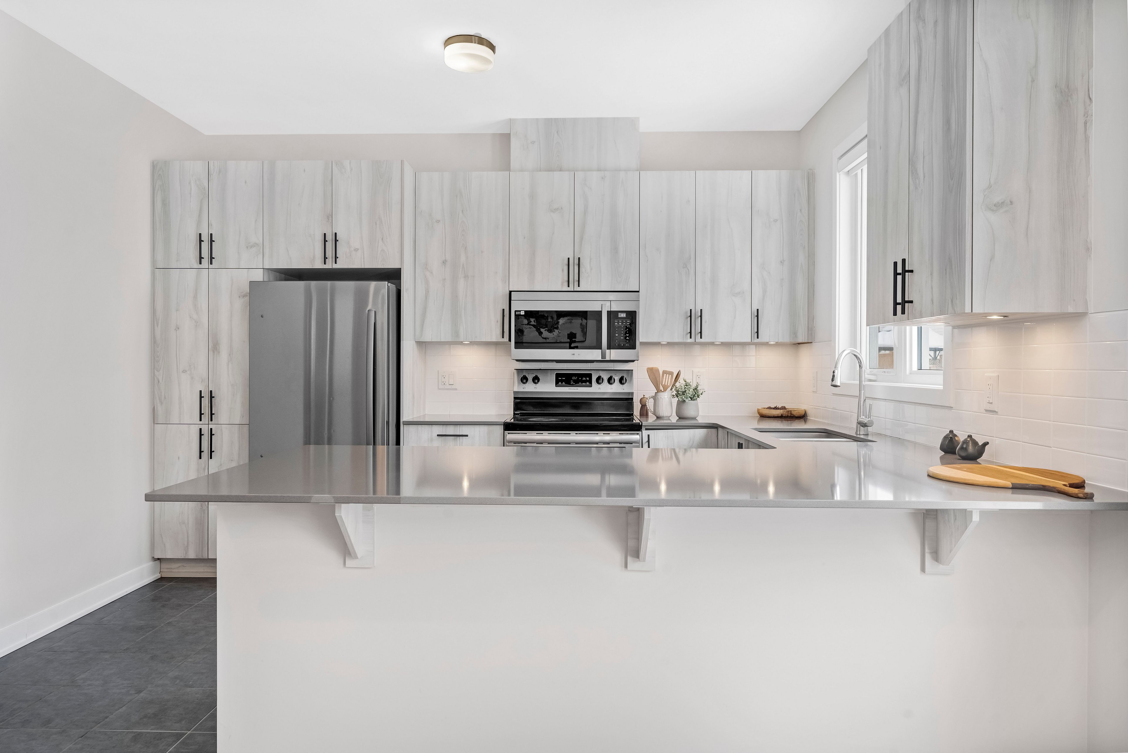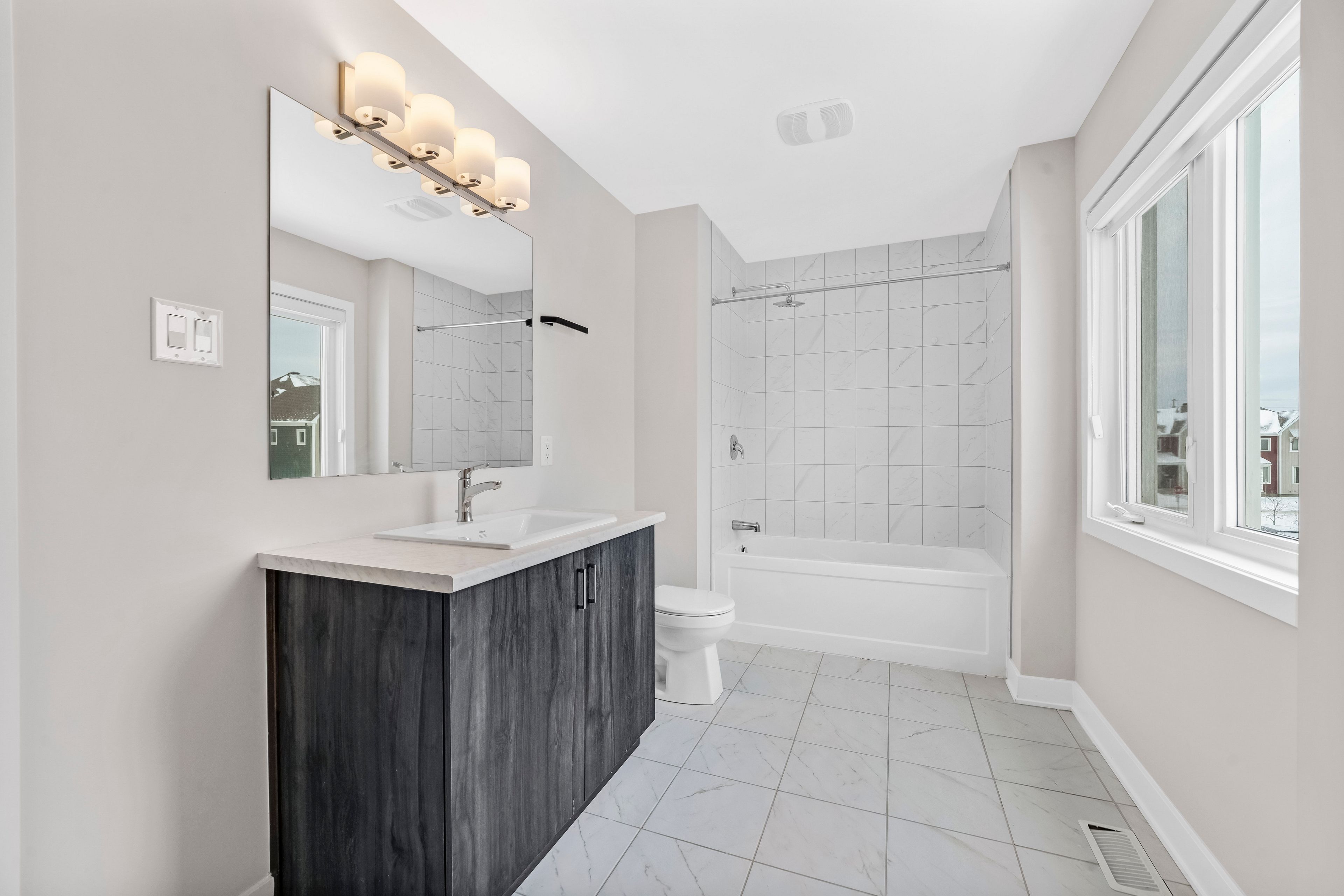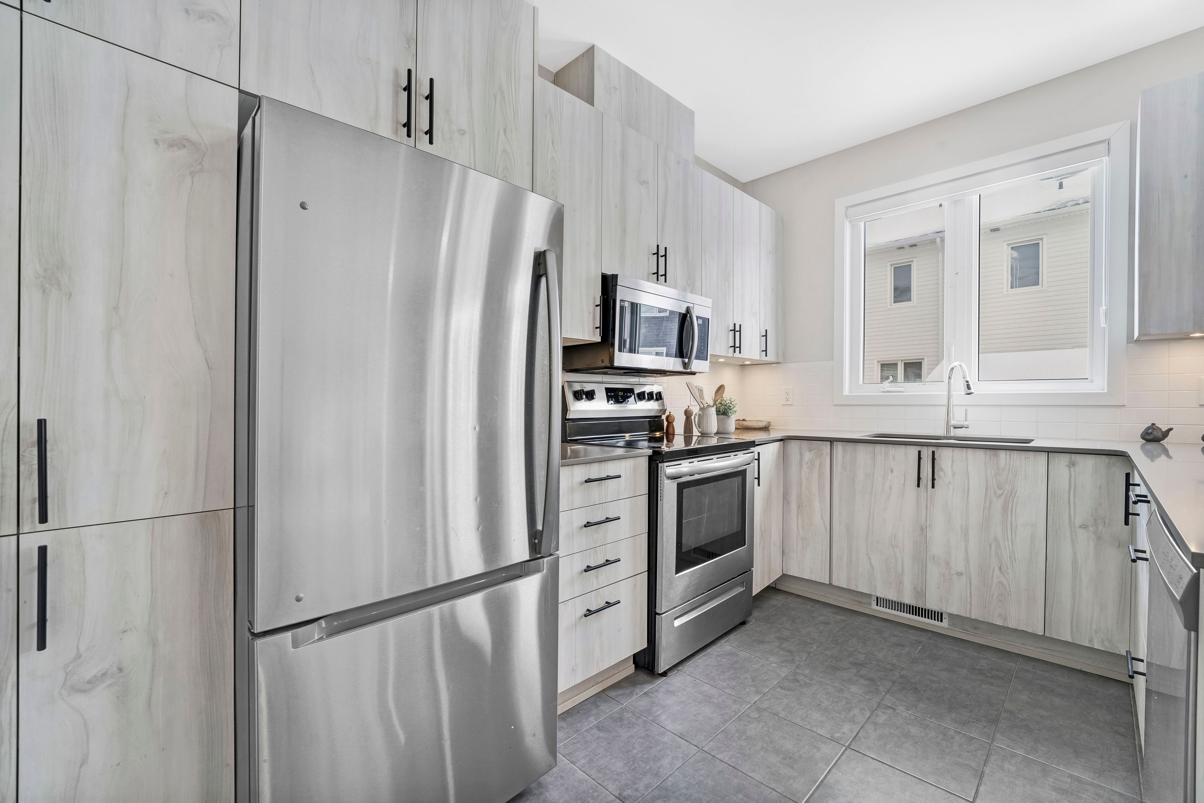 This is a beautifully designed end unit townhome that offers modern living at its finest. With 3 bedrooms, 2. 5 bathrooms, and a finished basement, there is plenty of space for any family. The open-concept floor plan creates a welcoming atmosphere, ideal for entertaining guests. The living area is bright and airy, thanks to an abundance of natural light. The kitchen is equipped with high-quality stainless steel appliances and a sleek quartz countertop. The master bedroom, located on the 2nd floor, boasts a spacious walk-in closet and a luxurious ensuite bathroom. The other bedrooms on the 2nd floor are also generously sized and well-lit, with a shared full bathroom. The finished basement is spacious and ideal for entertaining. Outside, the generous backyard is perfect for hosting and enjoying outdoor activities. Comes with a single garage and driveway parking. Located in a desirable neighbourhood, this townhome is conveniently close to shopping, restaurants, and parks.