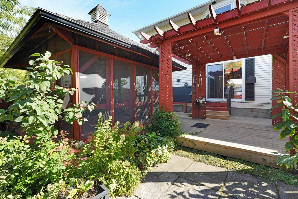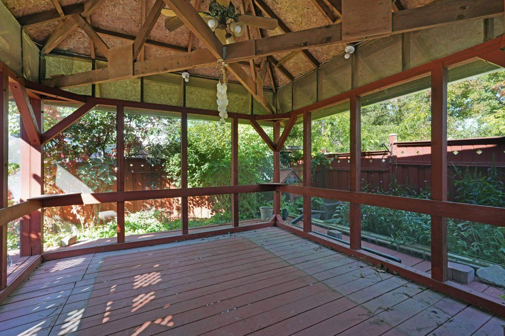 • Private backyard oasis with a screened-in gazebo and sunny pergola.