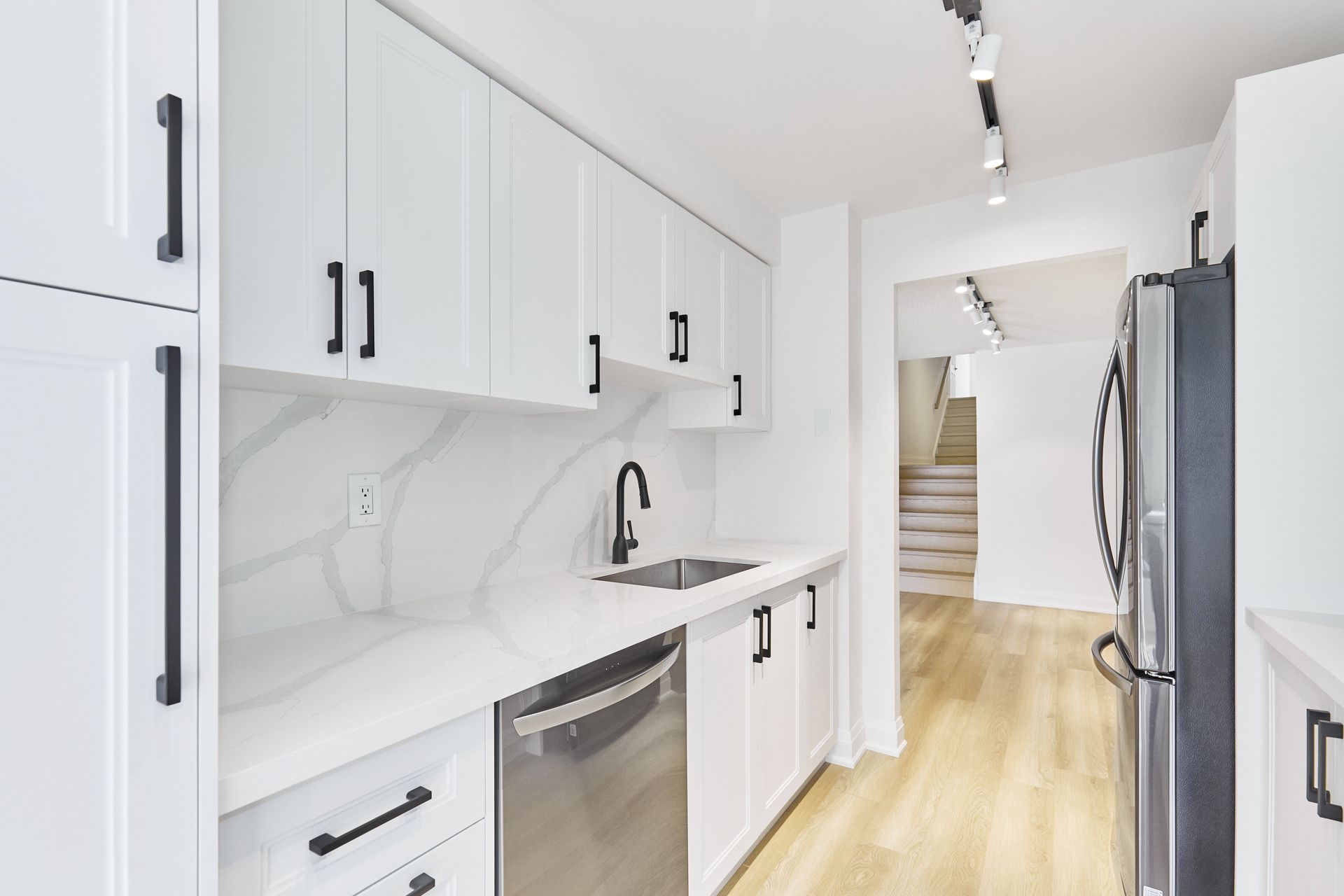 • Modern kitchen features quartz counters and brand new stainless steel appliances.