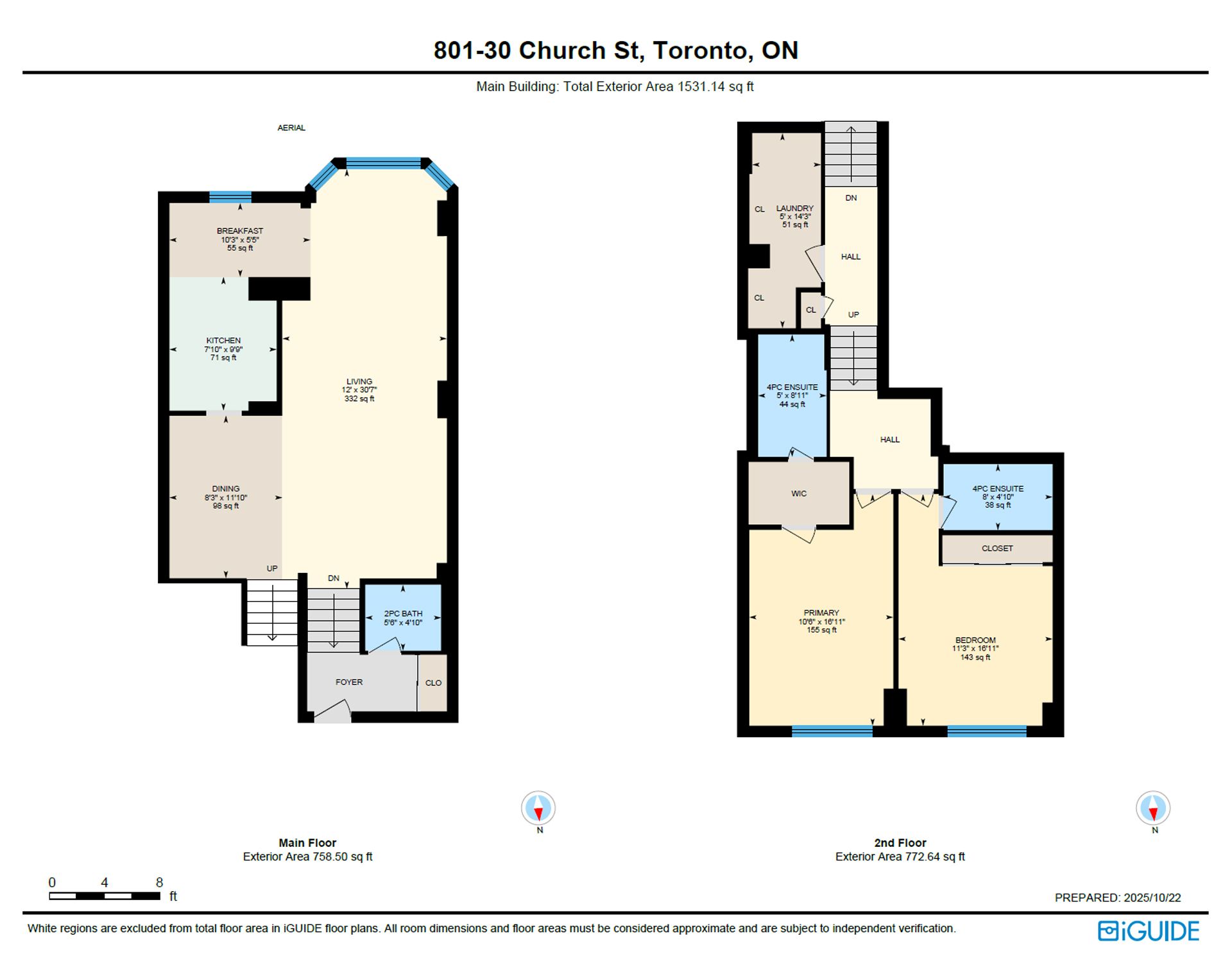 Turnkey, nothing to do but move in. Newly & tastefully renovated 2 storey spacious condo in prime st. Lawrence market. Feels like a house with 2 bedrooms upstairs (no one above you). Huge multi level corner unit on top 2 floors of discreet boutique building. Condo entrance features renovated powder room & custom designed mirrored closet. 7 steps up to main level that features a bright dining & living area with unobstructed sky view of gooderham flatiron building & bercy park with it's famous playful dog fountain. 7 steps up to mid-level you will find oversized laundry room w/brand new lg washer & dryer & storage. Upstairs 2 large bedrooms with renovated ensuite bathrooms. New vinyl plank flooring throughout with solid oak staircase. New living room blinds & freshly painted w/benjamin moore throughout. One of the best parking spots in underground garage, closest to the elevator. Access to a breathtaking roof top terrace w/ gas bbq's & sweeping city & lake views. In the heart of trendy st. Lawrence market, steps to fabulous restaurants, shopping, the financial district, ttc, union station, hockey hall of fame & more.