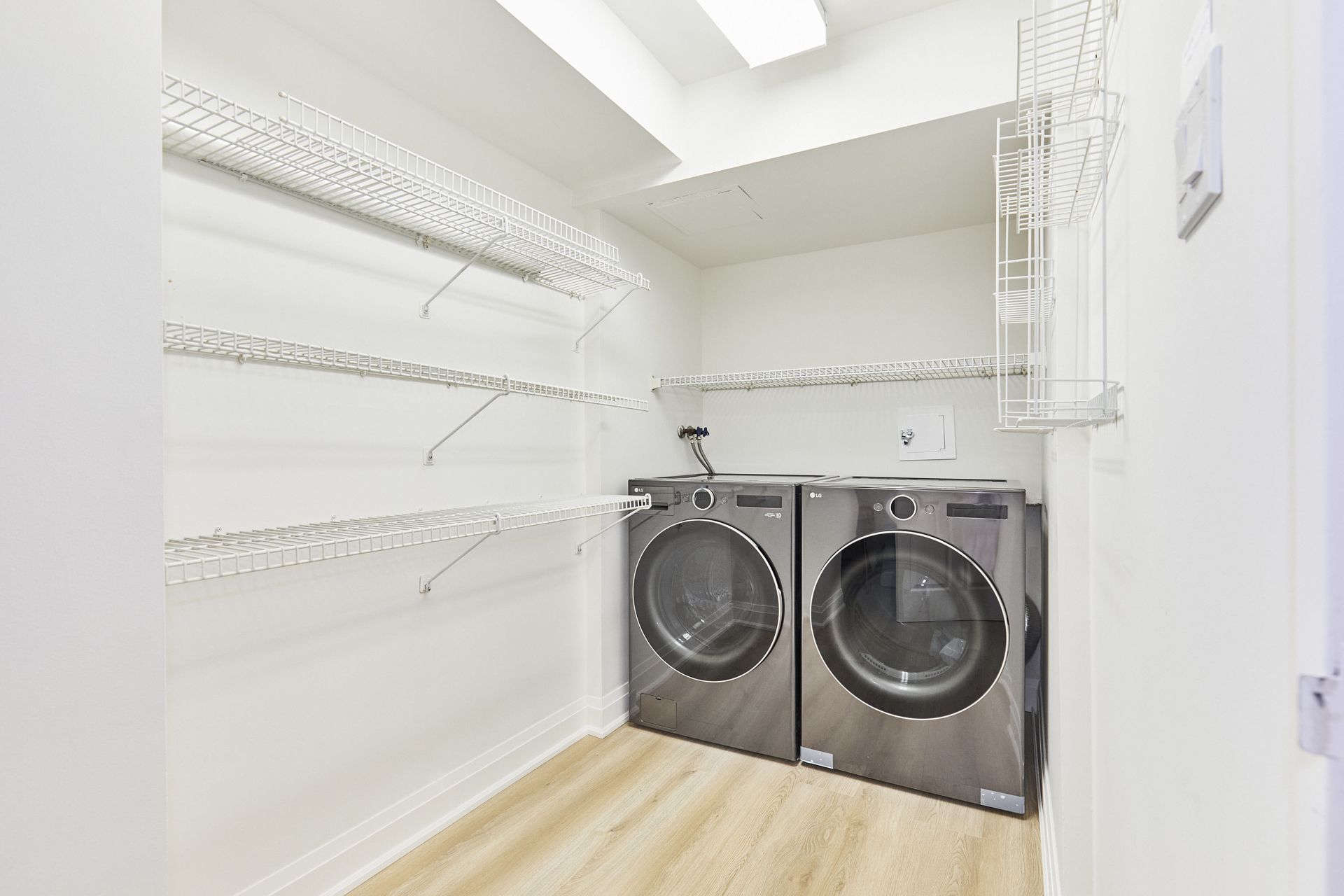 • Convenient mid-level laundry room with brand new appliances and storage.