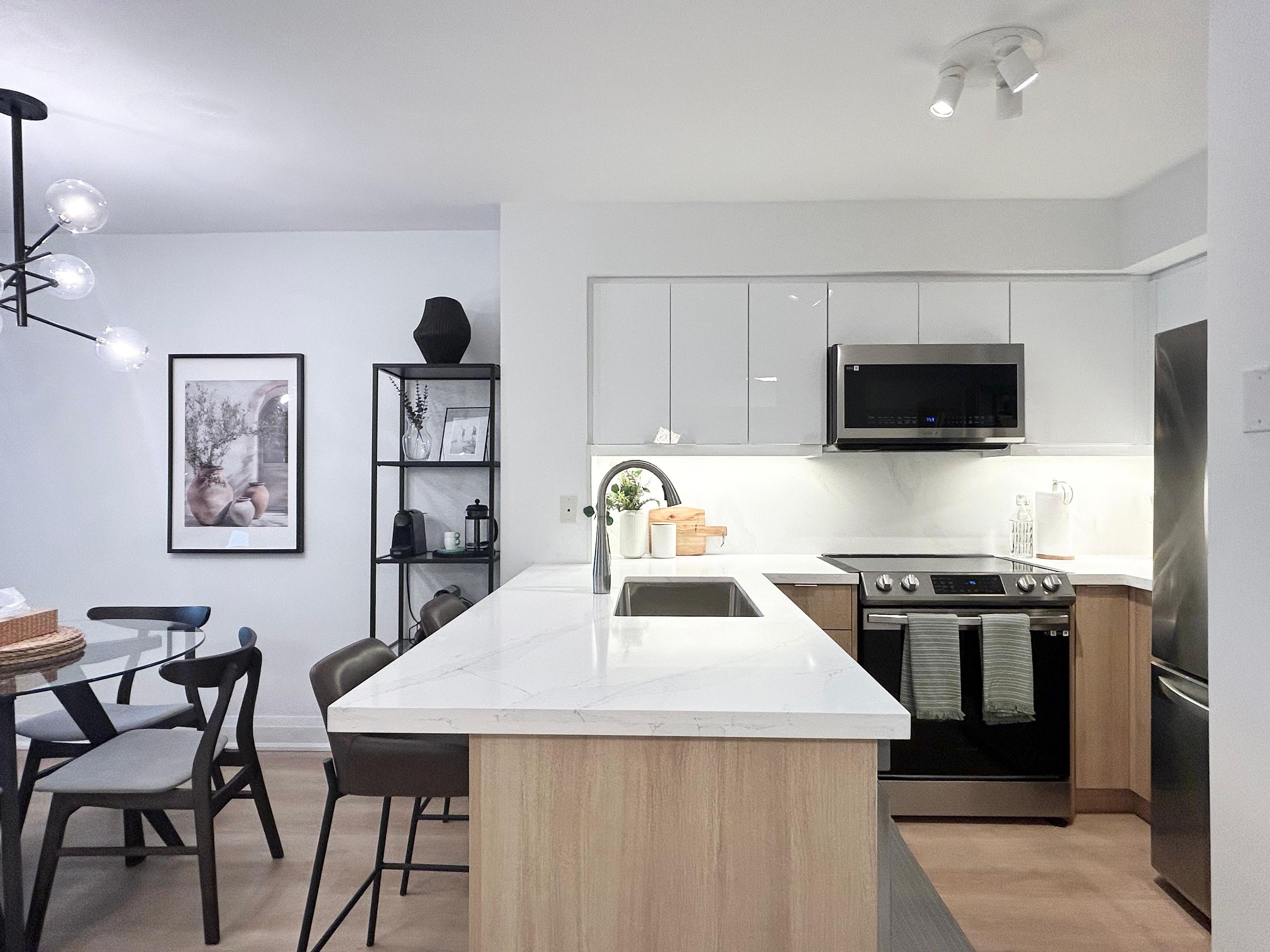 • Recently renovated with modern upgrades in kitchen and bath.