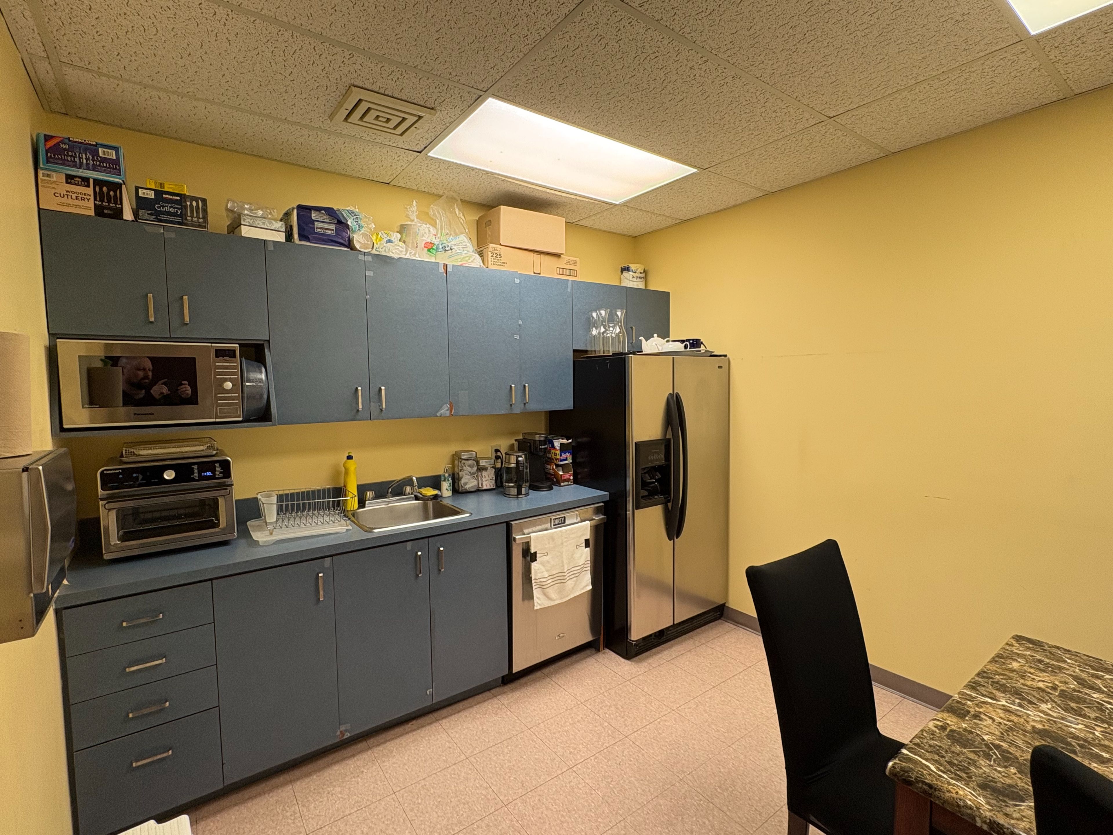 • Full kitchen available for convenience and employee use.