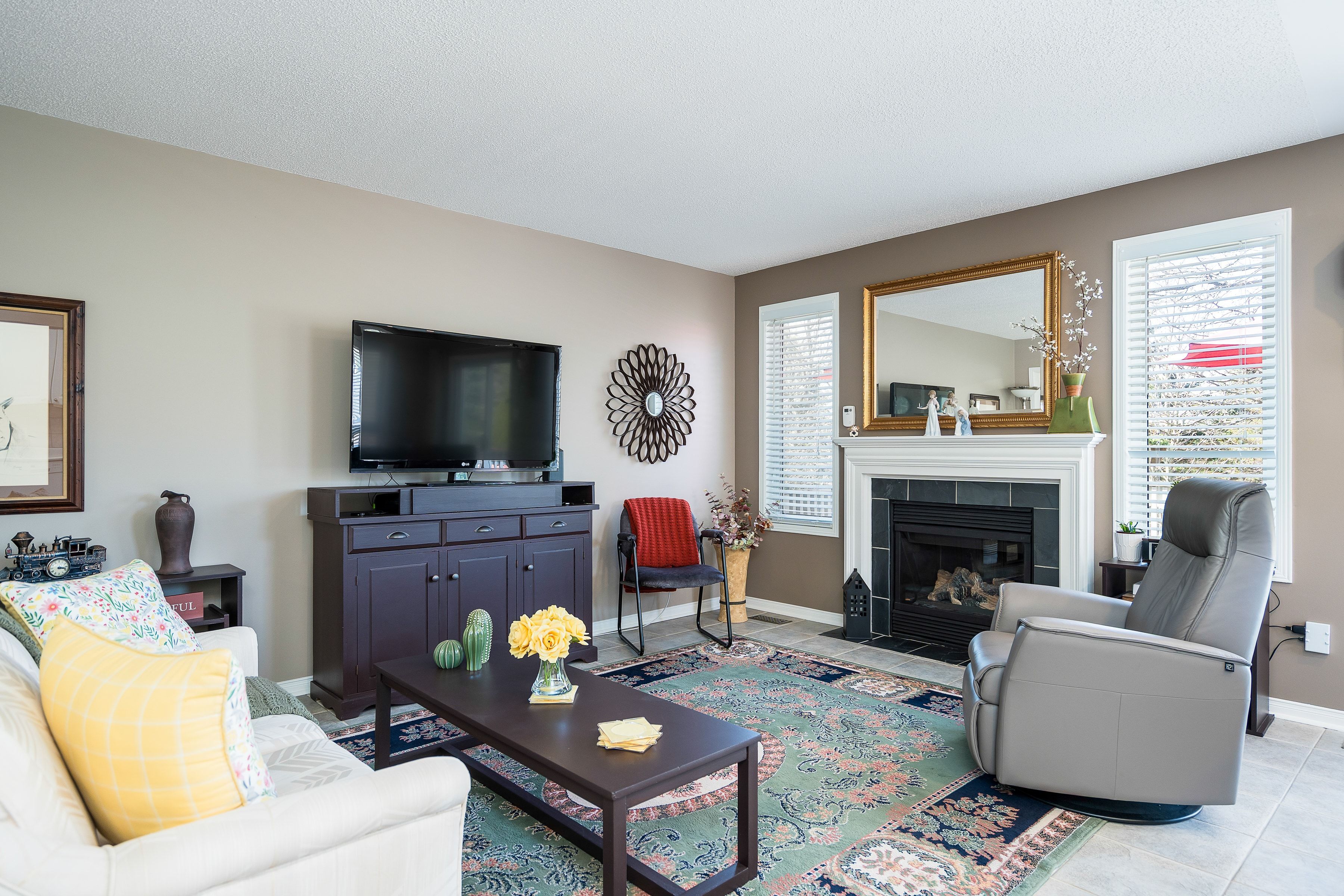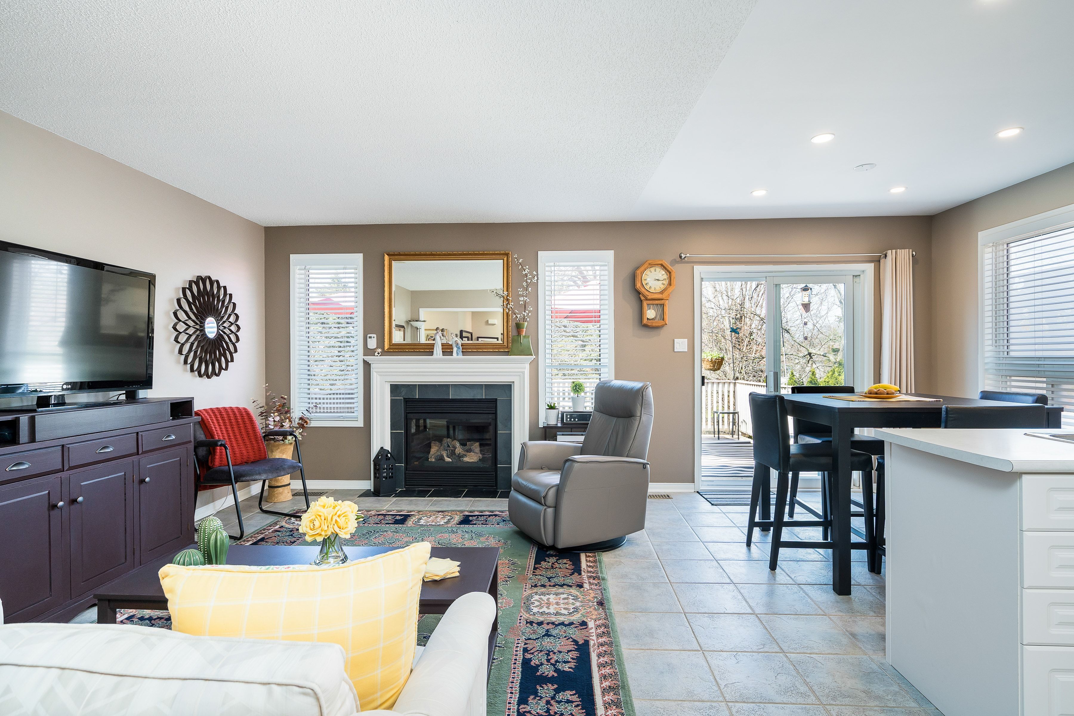 • Cozy family room with a gas fireplace for relaxation.