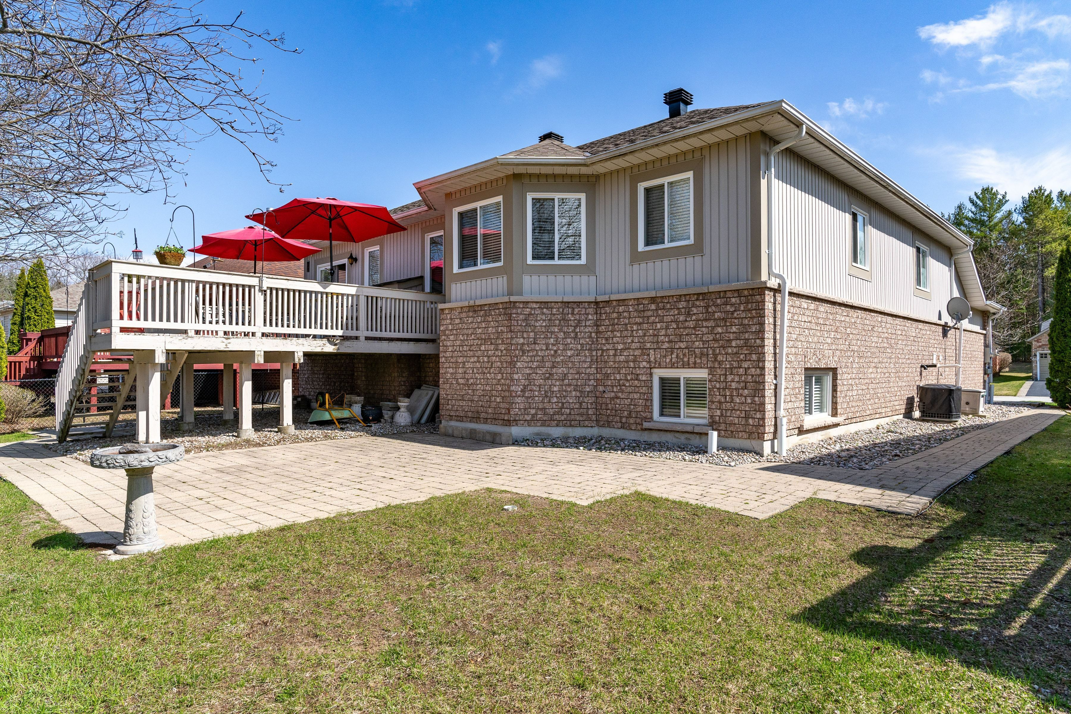 Escape to the beach! This meticulously maintained, smoke free raised bungalow sits on a level 61x167 ft deep lot, offering the space buyers crave. Built in 2004, this move in ready home features a bright and spacious layout, including 2 bedrooms on the main level plus an additional 3 bedrooms in the basement. Two full bathrooms on the main level and a full bathroom in the basement with a walk in shower. The heart of the home is the eat in kitchen, boasting a seamless walk out to an entertainer's size deck, ideal for summer bbqs. Relax in the cosy family room anchored by a warm gas fireplace. This property offers the ultimate convenience with main floor laundry and a primary suite that serves as a true retreat with a walk in shower. The exterior features a large interlocking brick patio perfect for outdoor gatherings. Location is everything, as you are only 10 minutes from the longest freshwater beach in the world. You are also situated close to public golf courses, the casino, and the future costco. Families will appreciate being near the future build catholic high school coming in 2027 and the public high school in 2029. Steps from wasaga beach provincial park trails, this super clean home delivers the perfect lifestyle upgrade. Just turn the key and start living the georgian bay lifestyle!