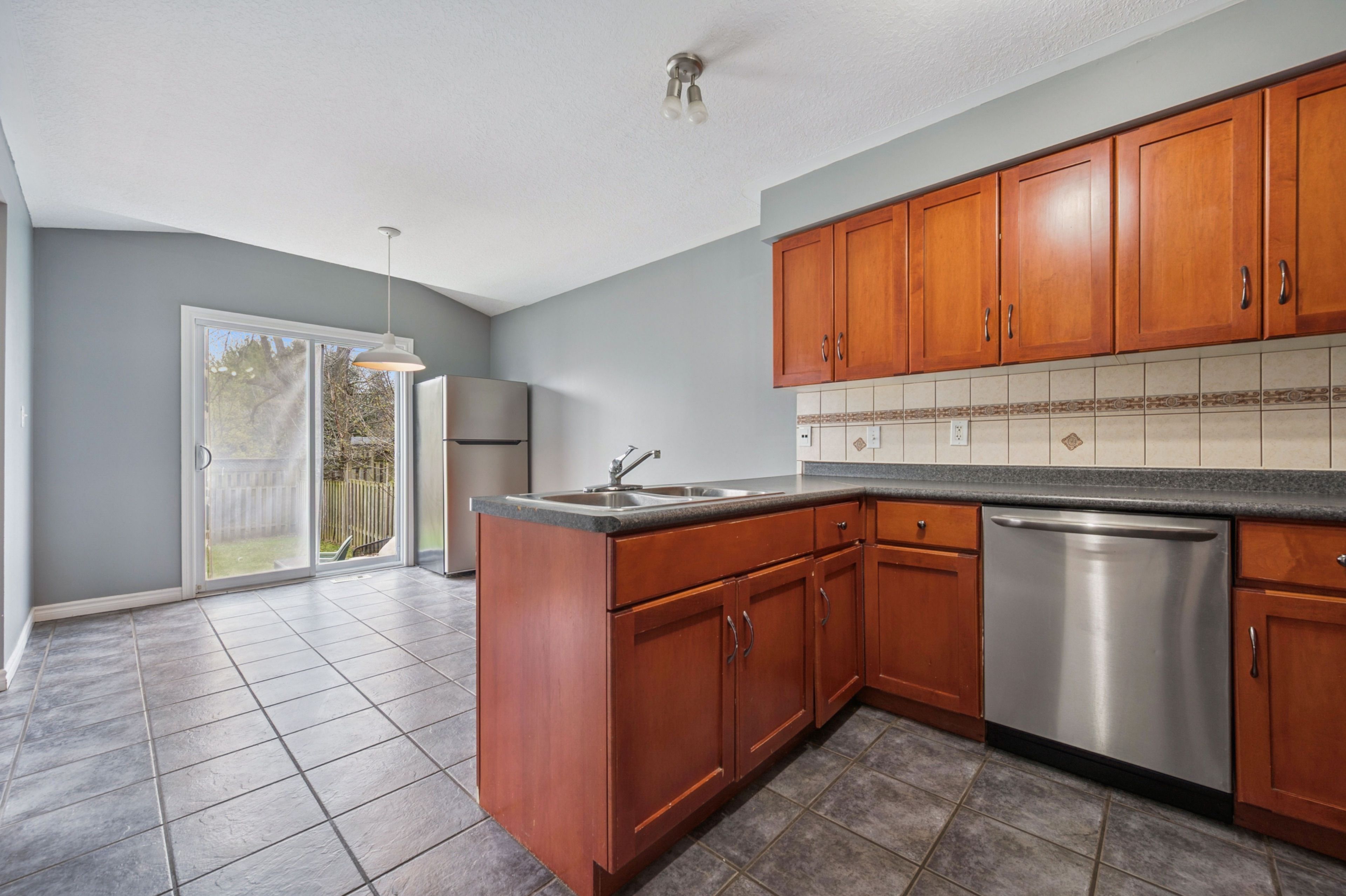 • Bright kitchen with spacious dinette and walk-out to fenced backyard.
