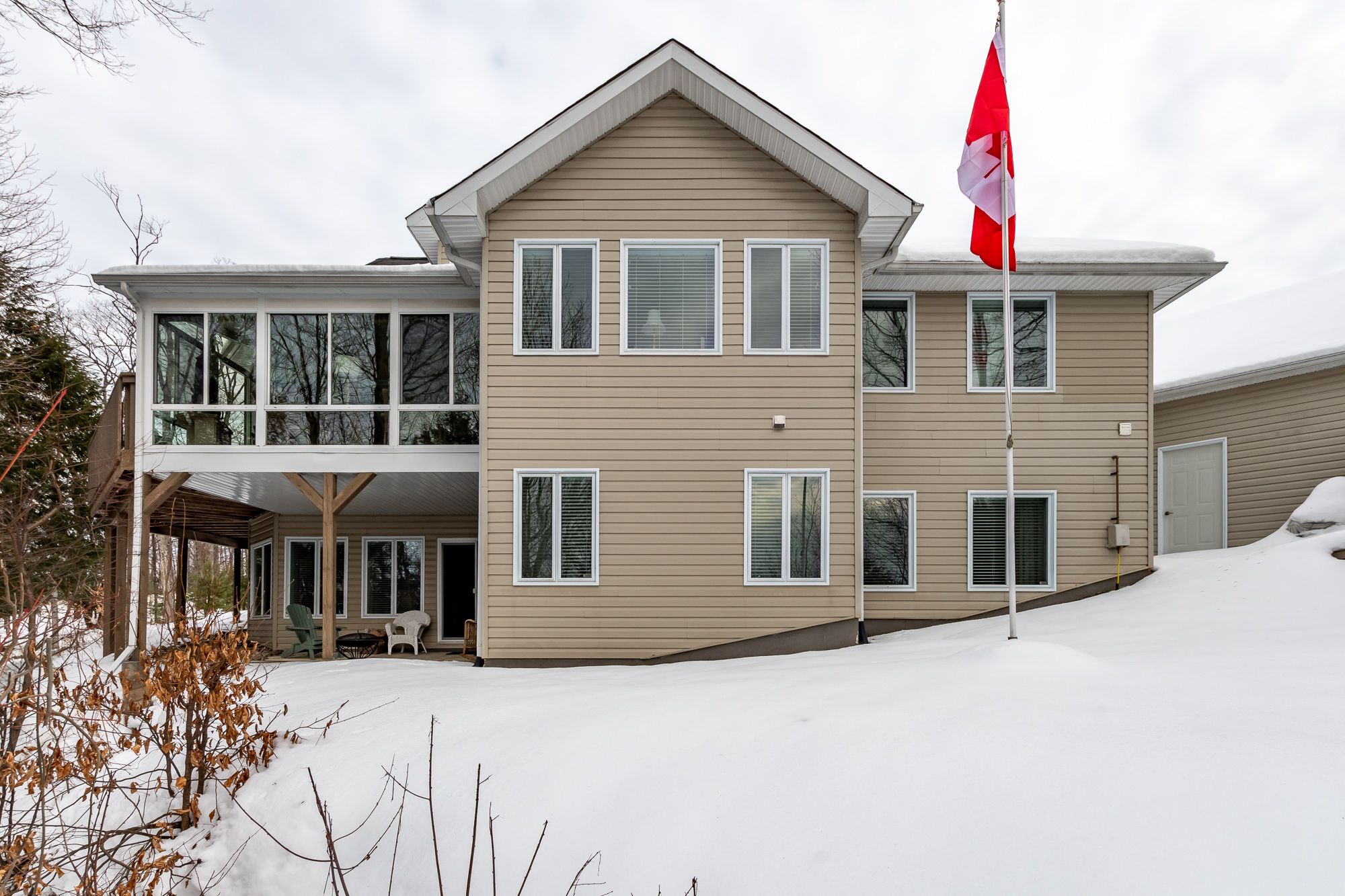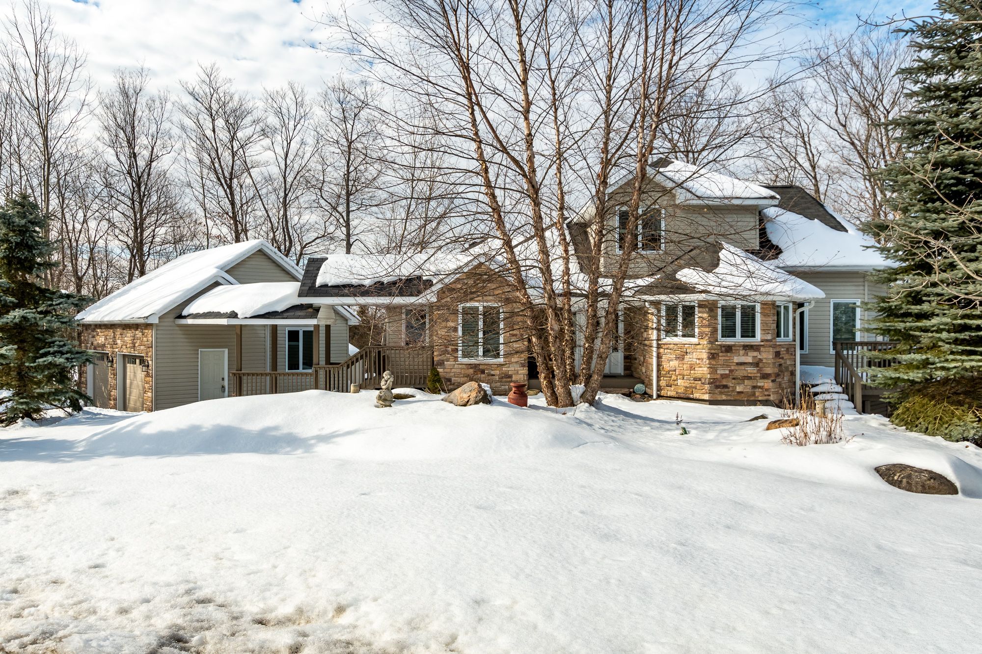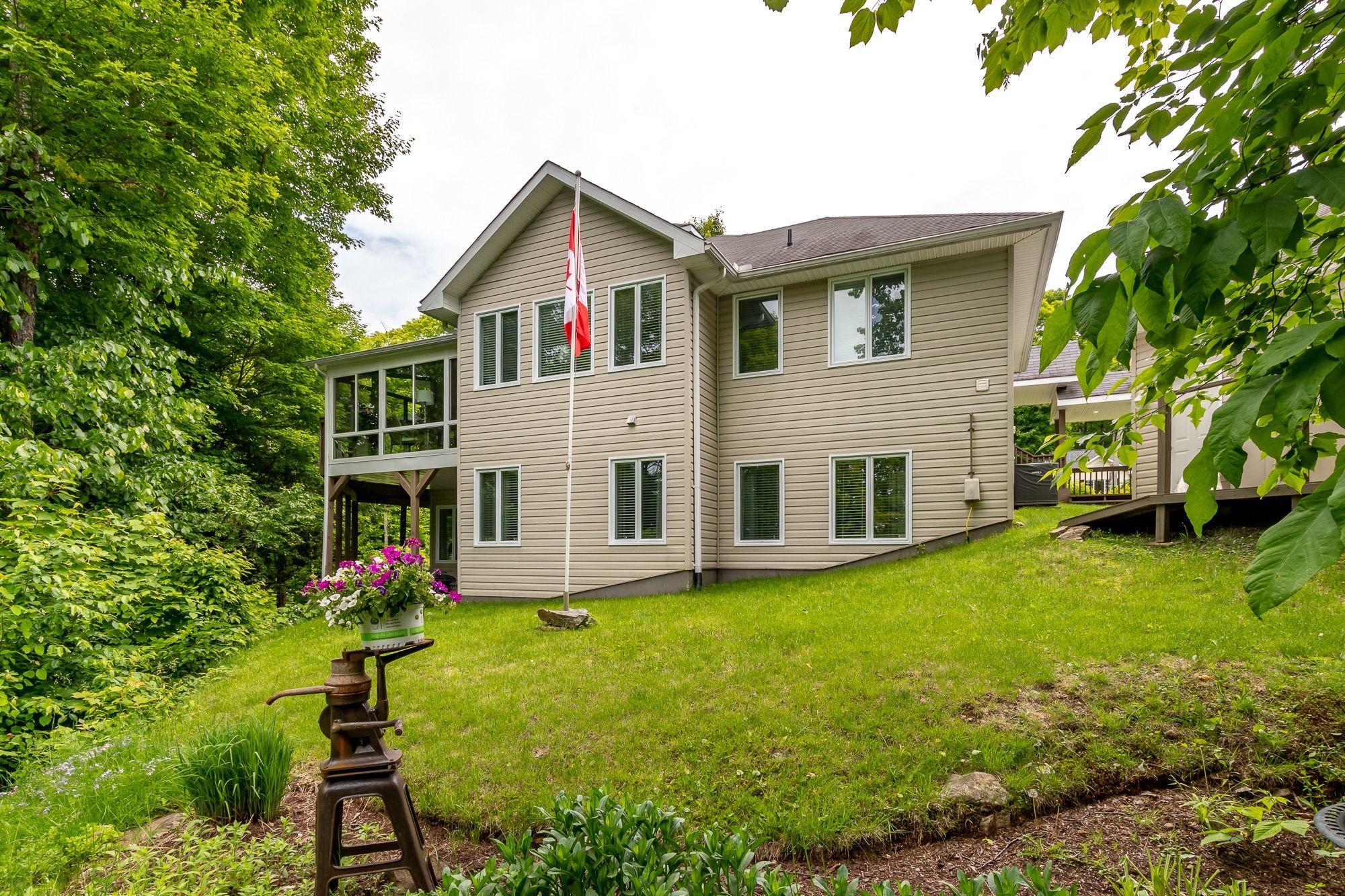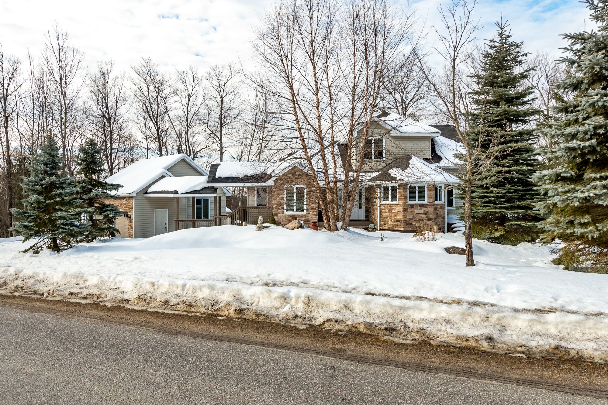 Welcome to 30 deerfoot trail, nestled in the prestigious woodland heights community. Step inside this stunning home to discover four spacious bedrooms and three bathrooms, with the bathrooms boasting heated floors for ultimate comfort. The beautifully updated open-concept kitchen, dining, and living areas create a seamless flow, ideal for casual family living and entertaining guests. The kitchen has been thoughtfully upgraded with refinished cabinets, brand-new flooring, updated appliances (excluding the dishwasher), a new sink and faucet, a stylish new backsplash, and sleek new countertops. A stunning office loft space overlooks the bright living room. Cozy up by one of the three propane fireplaces or bask in the natural light of the gorgeous sunroom. The finished walkout basement adds even more living space, complete with a cozy fireplace, two additional bedrooms, and a full bathroom, perfect for accommodating guests or creating a private retreat. Additional features include a generac generator for peace of mind, a detached oversized double-car garage with an epoxy floor and barnboard walls, and recent improvements such as a brand-new fridge and stove, a renovated primary ensuite bathroom, new blinds, carpets, and hardwood flooring, as well as new leaf filters for the gutters. Enhanced curb appeal comes with additional landscaping, making this property a true gem in the heart of woodland heights. This exquisite home offers unparalleled luxury and convenience, with nearby amenities including the esteemed deerhurst resort and golf club, the renowned mark o'meara course at the grandview golf club, and the exhilarating slopes of the hidden valley ski club. For nature enthusiasts, the woodland heights community features a sprawling 100-acre nature sanctuary with winding hiking trails a paradise for outdoor adventurers.