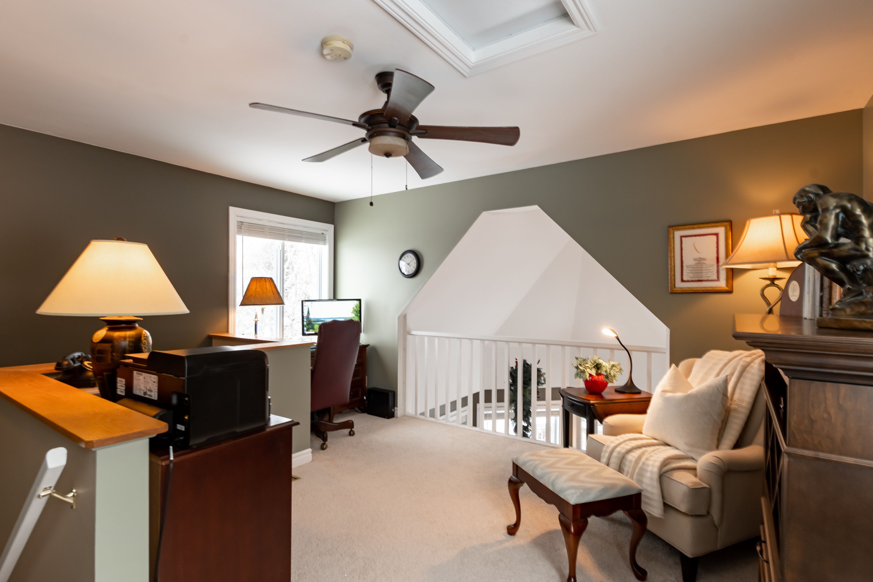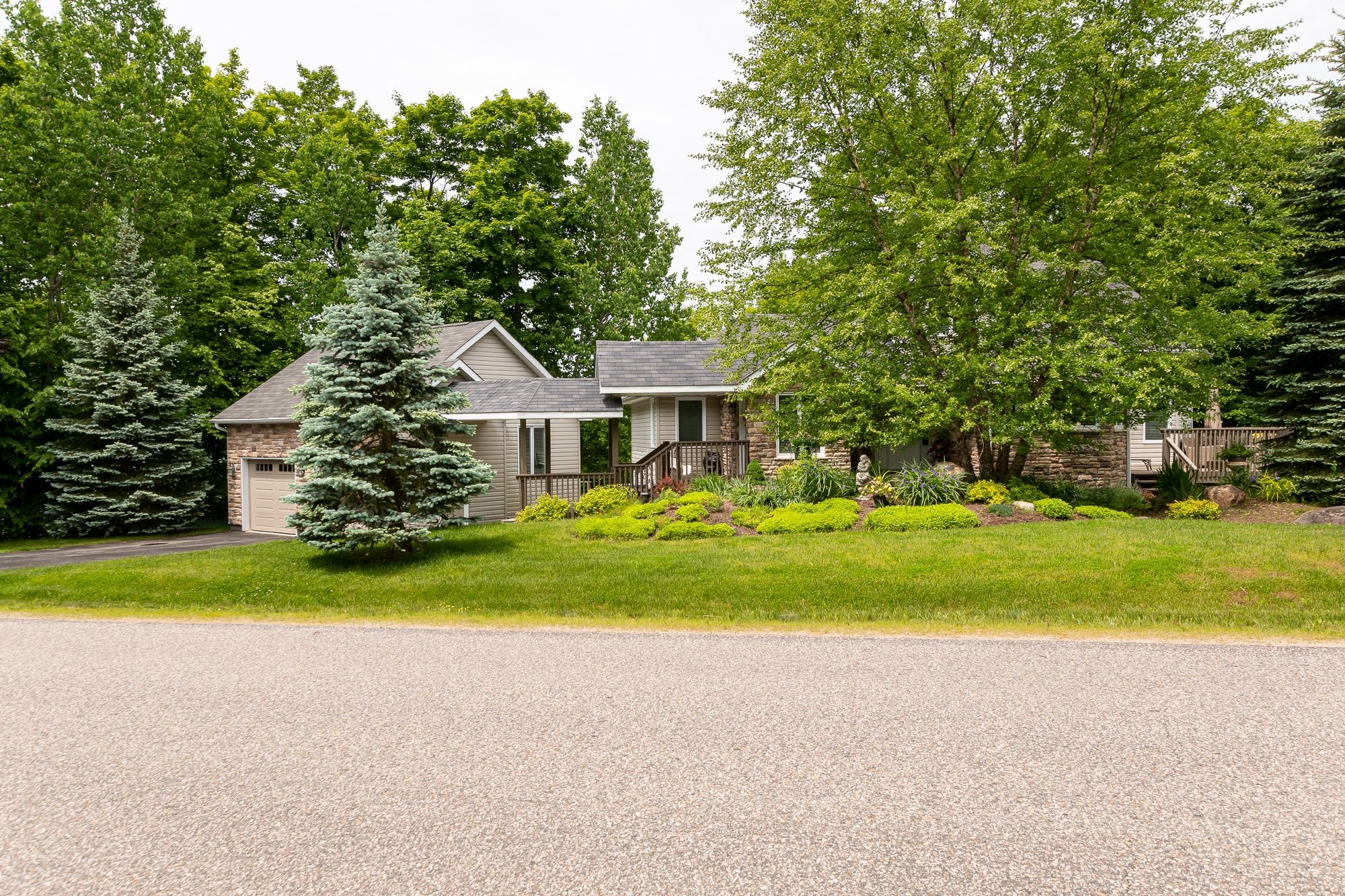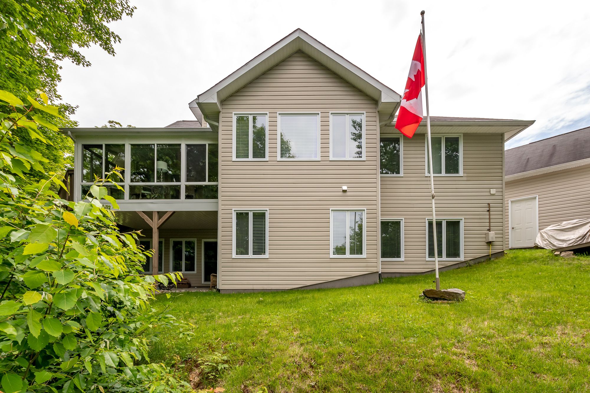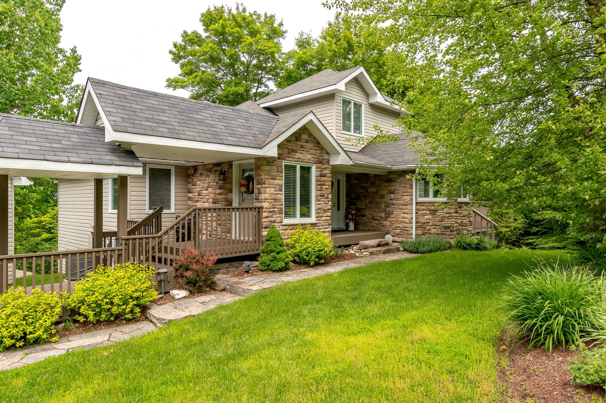 Welcome to 30 deerfoot trail, nestled in the prestigious woodland heights community. Step inside this stunning home to discover four spacious bedrooms and three bathrooms, with the bathrooms boasting heated floors for ultimate comfort. The beautifully updated open-concept kitchen, dining, and living areas create a seamless flow, ideal for casual family living and entertaining guests. The kitchen has been thoughtfully upgraded with refinished cabinets, brand-new flooring, updated appliances (excluding the dishwasher), a new sink and faucet, a stylish new backsplash, and sleek new countertops. A stunning office loft space overlooks the bright living room. Cozy up by one of the three propane fireplaces or bask in the natural light of the gorgeous sunroom. The finished walkout basement adds even more living space, complete with a cozy fireplace, two additional bedrooms, and a full bathroom, perfect for accommodating guests or creating a private retreat. Additional features include a generac generator for peace of mind, a detached oversized double-car garage with an epoxy floor and barnboard walls, and recent improvements such as a brand-new fridge and stove, a renovated primary ensuite bathroom, new blinds, carpets, and hardwood flooring, as well as new leaf filters for the gutters. Enhanced curb appeal comes with additional landscaping, making this property a true gem in the heart of woodland heights. This exquisite home offers unparalleled luxury and convenience, with nearby amenities including the esteemed deerhurst resort and golf club, the renowned mark o'meara course at the grandview golf club, and the exhilarating slopes of the hidden valley ski club. For nature enthusiasts, the woodland heights community features a sprawling 100-acre nature sanctuary with winding hiking trails a paradise for outdoor adventurers.