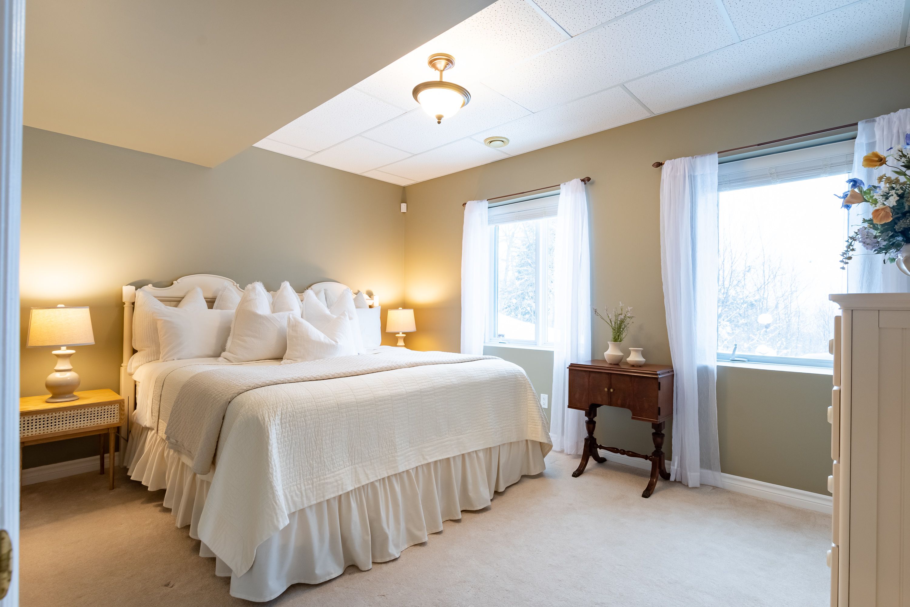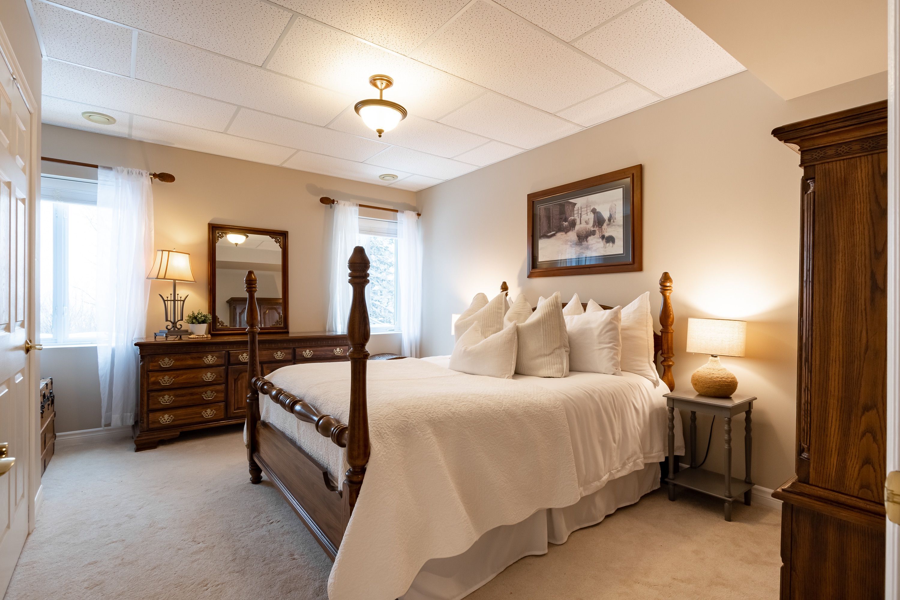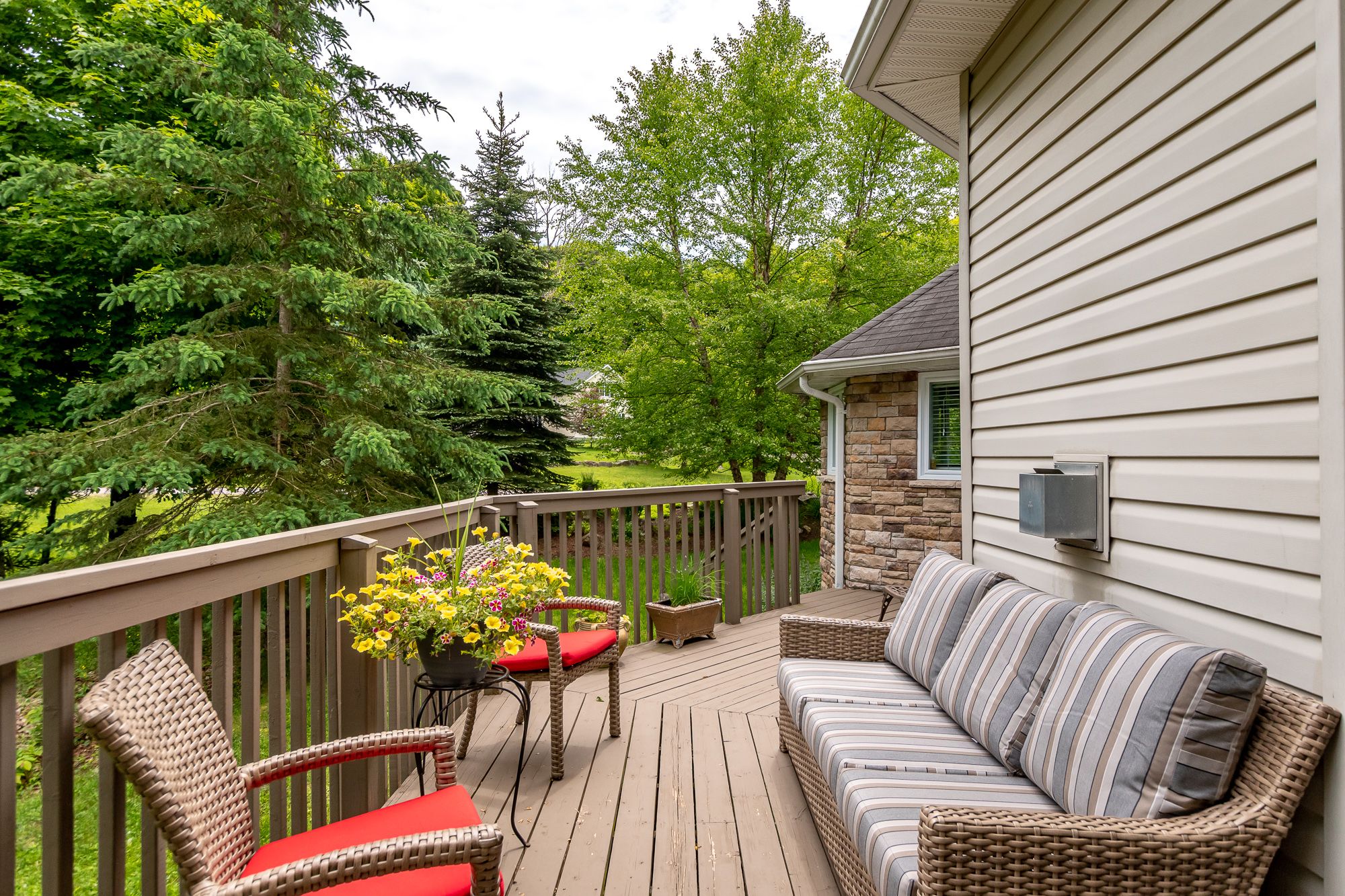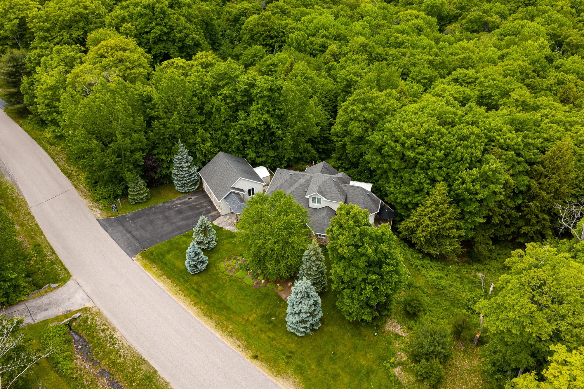 Welcome to 30 deerfoot trail, nestled in the prestigious woodland heights community. Step inside this stunning home to discover four spacious bedrooms and three bathrooms, with the bathrooms boasting heated floors for ultimate comfort. The beautifully updated open-concept kitchen, dining, and living areas create a seamless flow, ideal for casual family living and entertaining guests. The kitchen has been thoughtfully upgraded with refinished cabinets, brand-new flooring, updated appliances (excluding the dishwasher), a new sink and faucet, a stylish new backsplash, and sleek new countertops. A stunning office loft space overlooks the bright living room. Cozy up by one of the three propane fireplaces or bask in the natural light of the gorgeous sunroom. The finished walkout basement adds even more living space, complete with a cozy fireplace, two additional bedrooms, and a full bathroom, perfect for accommodating guests or creating a private retreat. Additional features include a generac generator for peace of mind, a detached oversized double-car garage with an epoxy floor and barnboard walls, and recent improvements such as a brand-new fridge and stove, a renovated primary ensuite bathroom, new blinds, carpets, and hardwood flooring, as well as new leaf filters for the gutters. Enhanced curb appeal comes with additional landscaping, making this property a true gem in the heart of woodland heights. This exquisite home offers unparalleled luxury and convenience, with nearby amenities including the esteemed deerhurst resort and golf club, the renowned mark o'meara course at the grandview golf club, and the exhilarating slopes of the hidden valley ski club. For nature enthusiasts, the woodland heights community features a sprawling 100-acre nature sanctuary with winding hiking trails a paradise for outdoor adventurers.