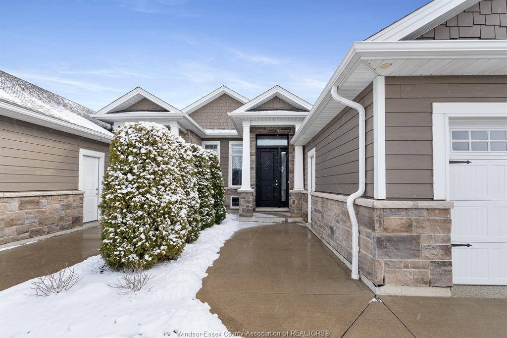 Welcome to easy living in this beautifully finished 2018 ranch built by new millennium homes! Offering 2+2 brs & 2. 1 baths, this fully finished home delivers the perfect blend of style, space & location. Step inside to a bright open concept main floor designed for living & entertaining. The stunning kitchen layout is the heart, featuring a large island, dedicated coffee bar, and loads of cabinetry for storage. The space flows naturally into the living & dining areas, creating a warm and inviting place to gather with family & friends. Convenience continues with main floor laundry and a spacious primary br retreat complete with custom built-ins and a sleek ensuite w/glass & tile shower. Every detail has been carefully finished and lovingly maintained. The fully finished basement expands your living space with 2 additional brs, a full bath, and an incredible wet bar featuring a striking live edge counter & beverage fridge, perfect for movie nights, hosting, or creating the ultimate rec space. Car lovers, hobbyists, or anyone needing extra workspace will fall in love with the amazing garage. Outfitted with an epoxy floor, heat, commercial stainless sink & excellent storage, it’s clean, functional, and ready for year-round use. Step outside and enjoy the privacy of no rear neighbours, giving you a peaceful backdrop for relaxing evenings or summer bbqs. Location truly sets this home apart. You’re just minutes from the marina, seacliff park, point pelee and the beautiful lake erie shoreline, making it easy to enjoy waterfront walks, sunsets, boating & everything this vibrant lakeside community has to offer. Beautifully finished, meticulously maintained & perfectly located, this move-in ready ranch offers the lifestyle you’ve been waiting for. Don’t miss your chance, call today for your personal tour!
