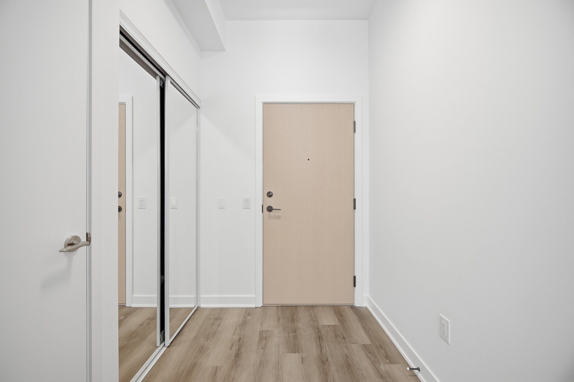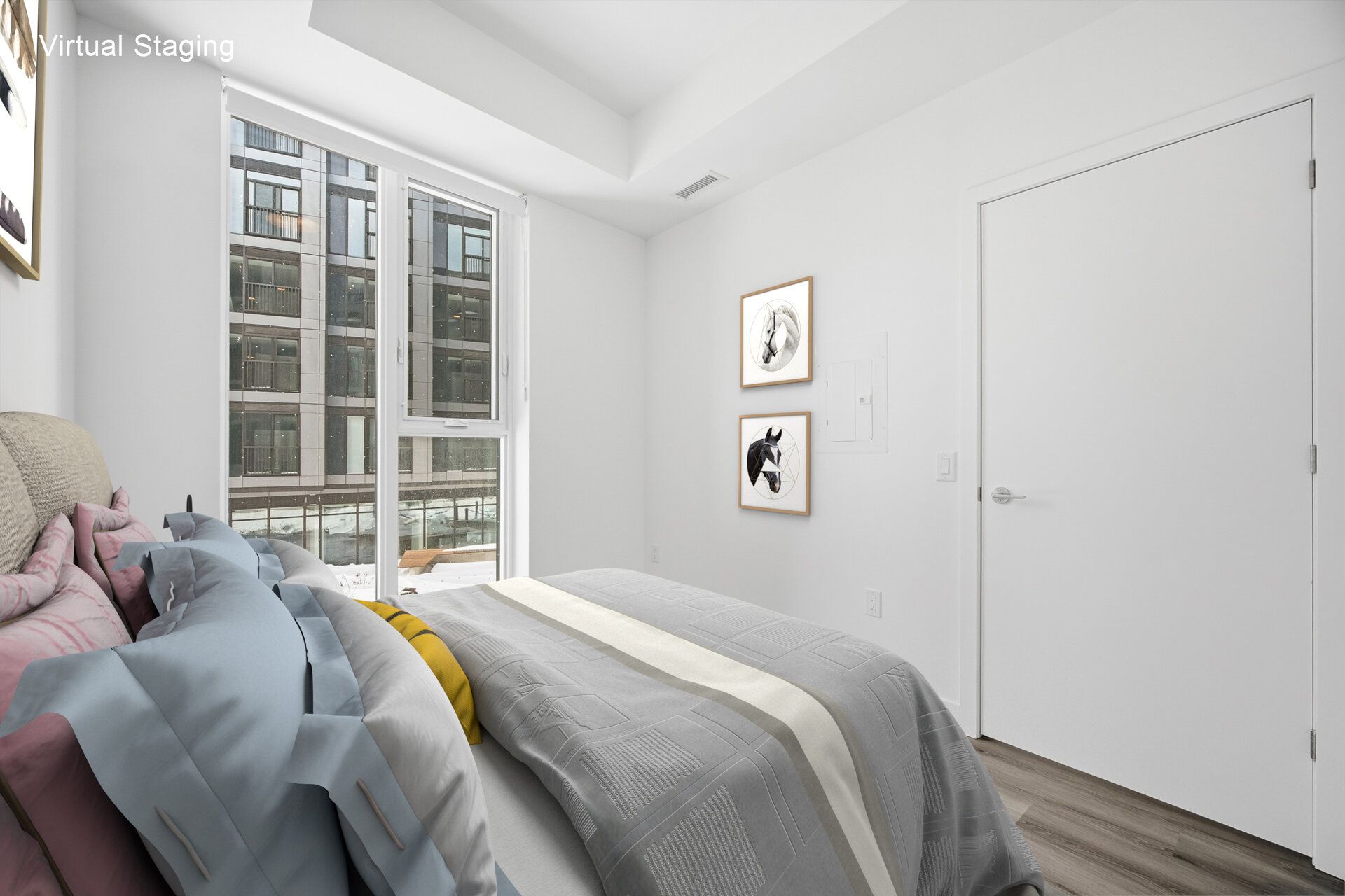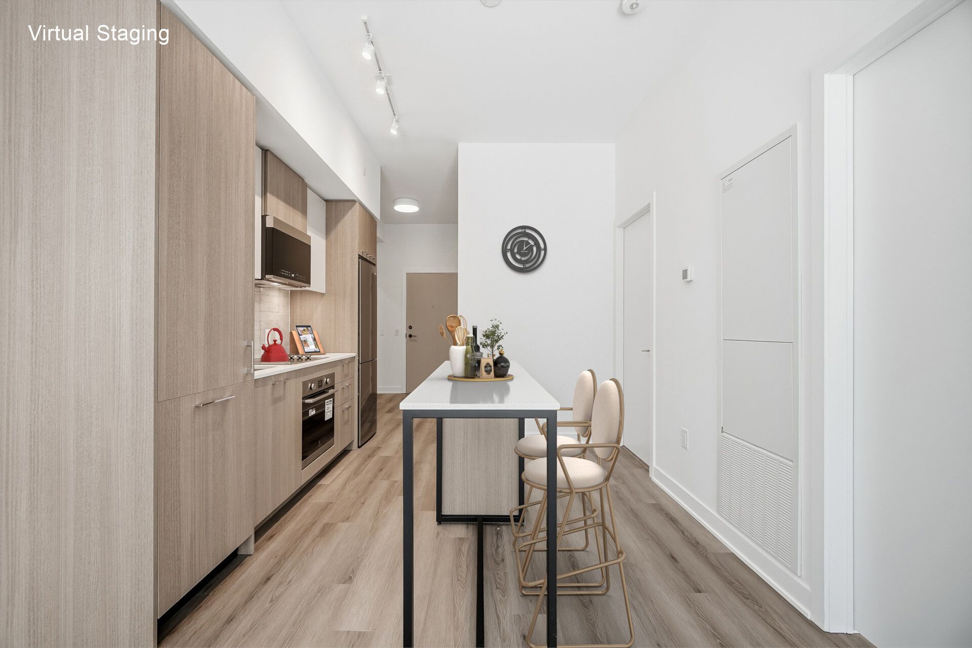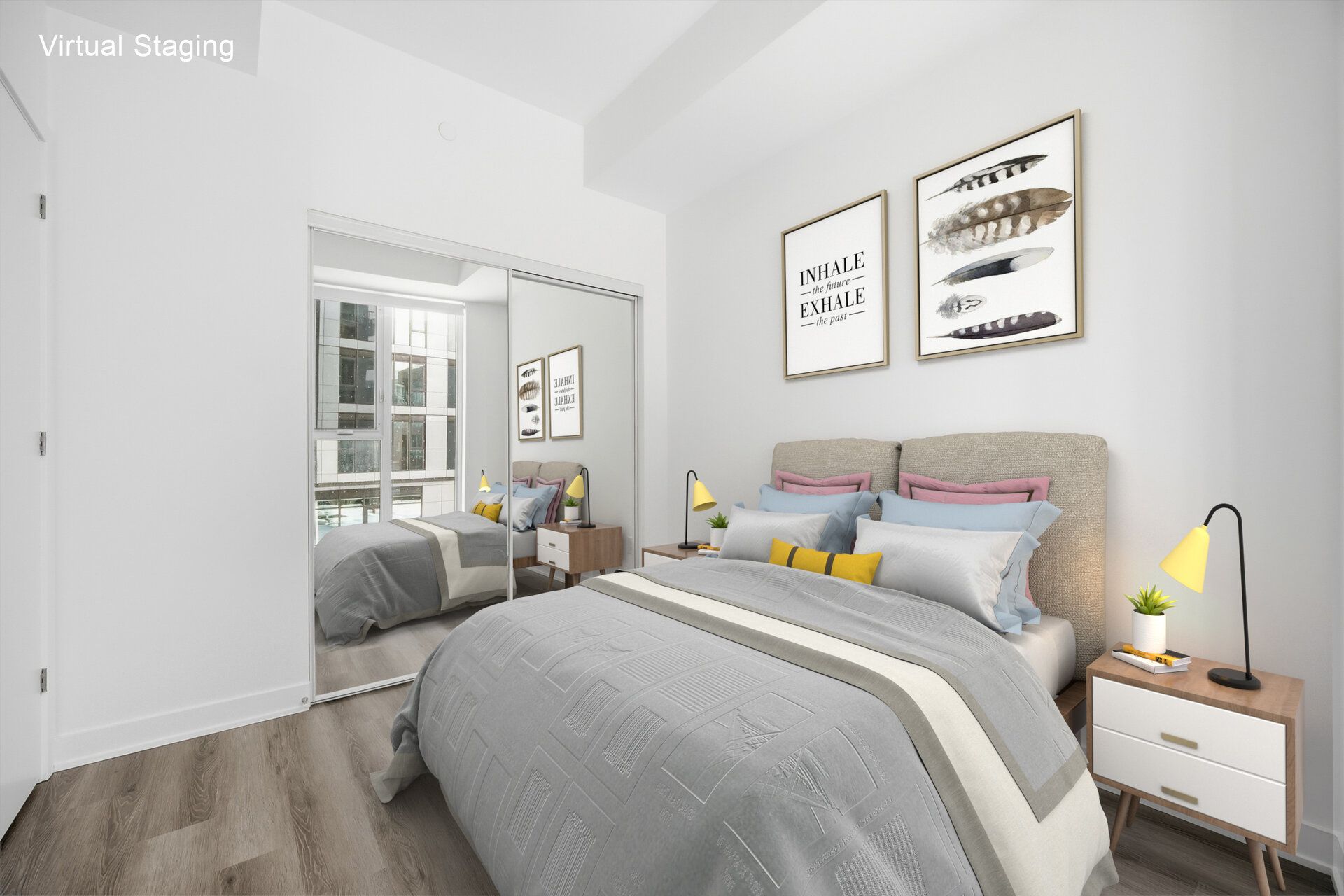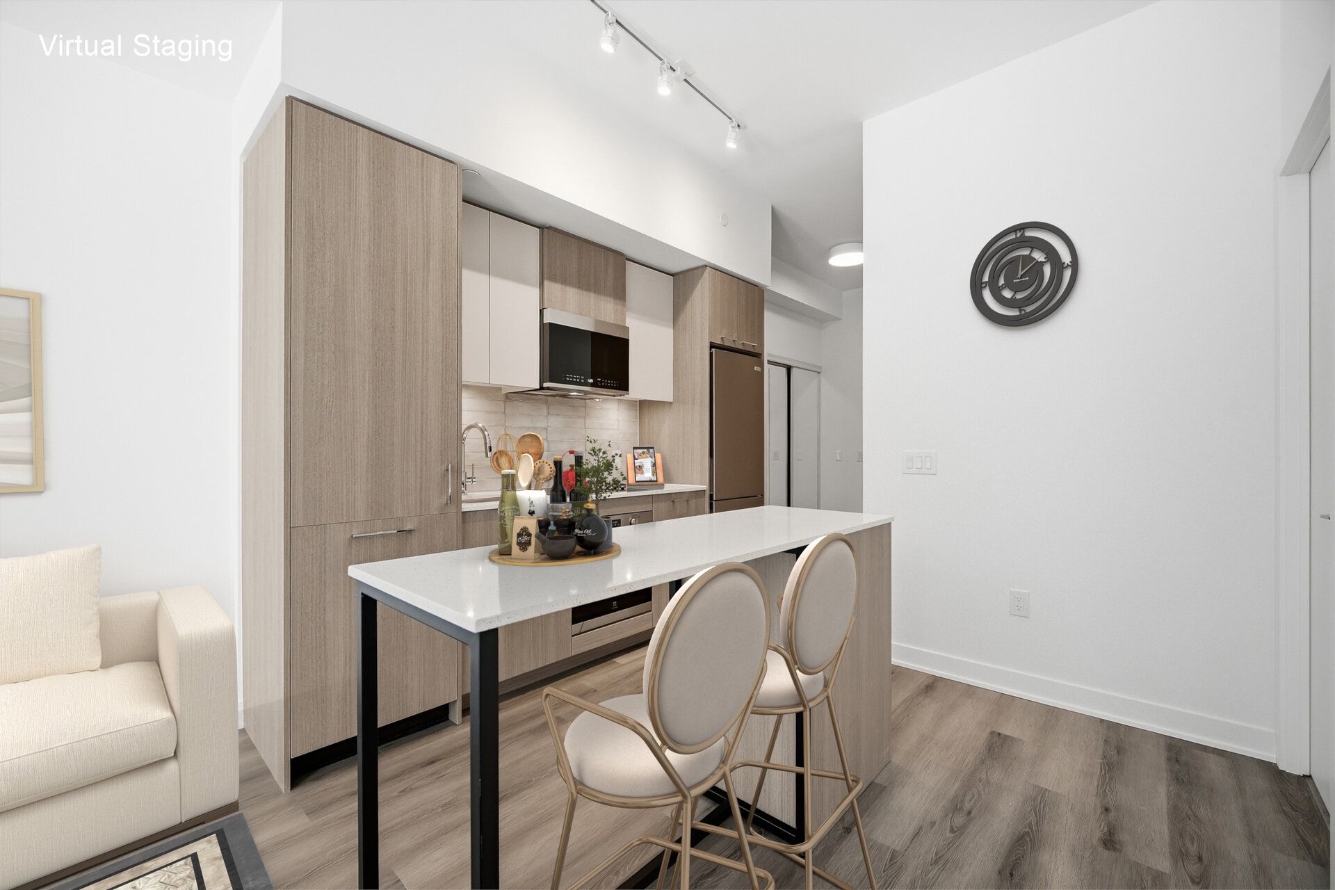 Welcome to this newly built condo located in an up and coming trendy neighbourhood in the city of toronto. You will enjoy the convenience of walking around and enjoying the lights & sounds to has to offer. Walk into a modern unit that features laminate flooring throughout the combined living, dining and kitchen, overlooking w views from the balcony. Spacious & bright bedroom, also offers spectacular views & a large closet & a clean and modern 4 piece bathroom. You will love the amenities this building has to offer. Walking distance to shops, public transit and parks in the area. Don't miss this one, come and see it today!