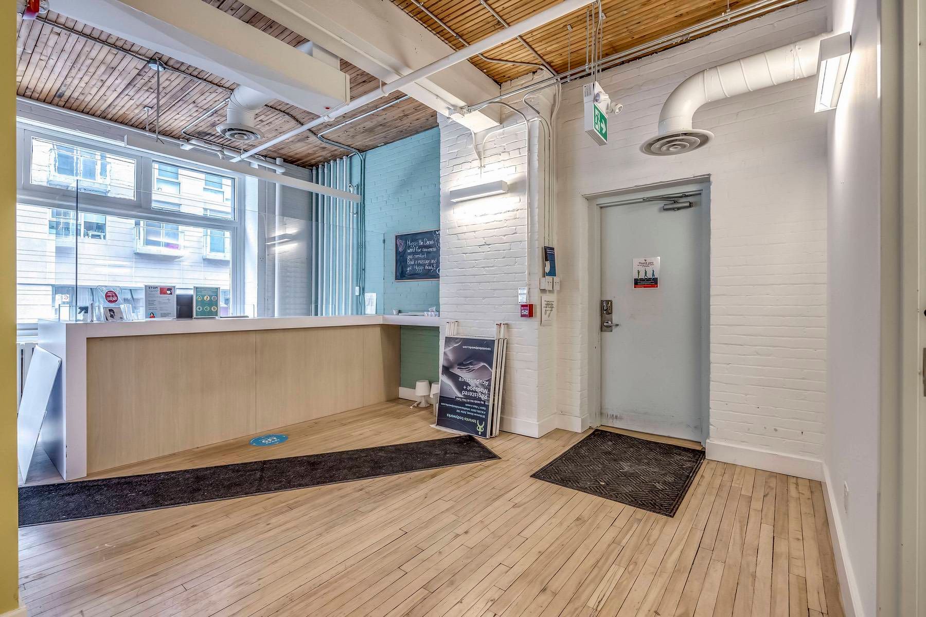 Located steps from toronto's financial core and the path, 30 duncan street is a beautiful brick and beam building. Suite 102 features wrap around windows and high ceilings. Suitable for office or retail uses. Currently built-out with multiple private treatment rooms. Steps to transit and retail amenities.
