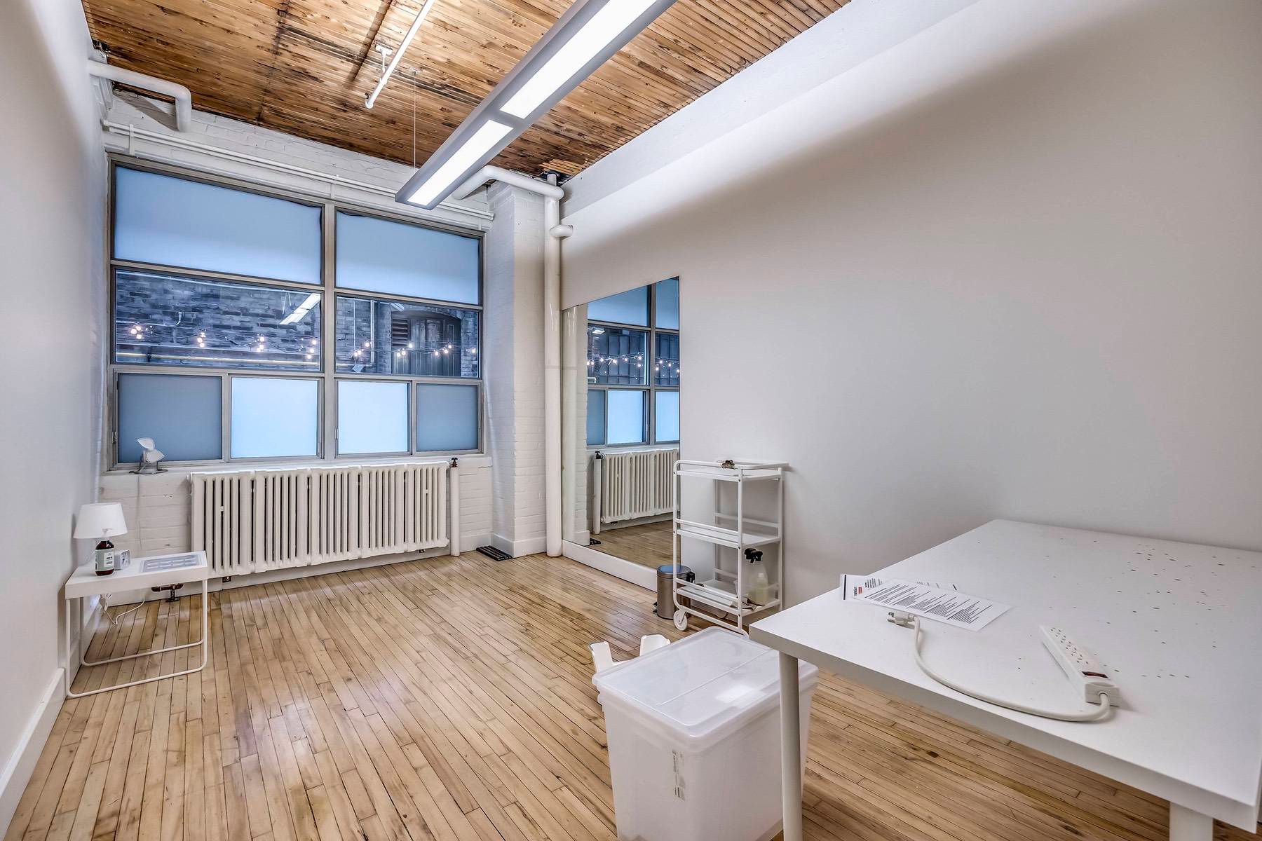 • Bright suite with wrap-around windows and high ceilings.