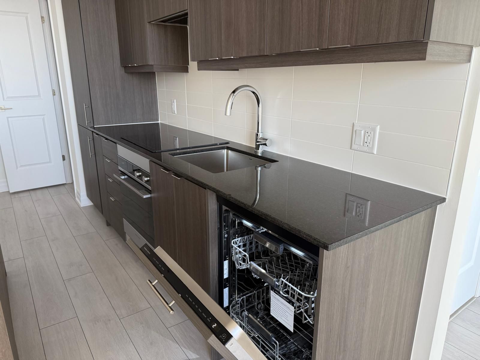 • Modern kitchen featuring quartz countertops and built-in appliances.
