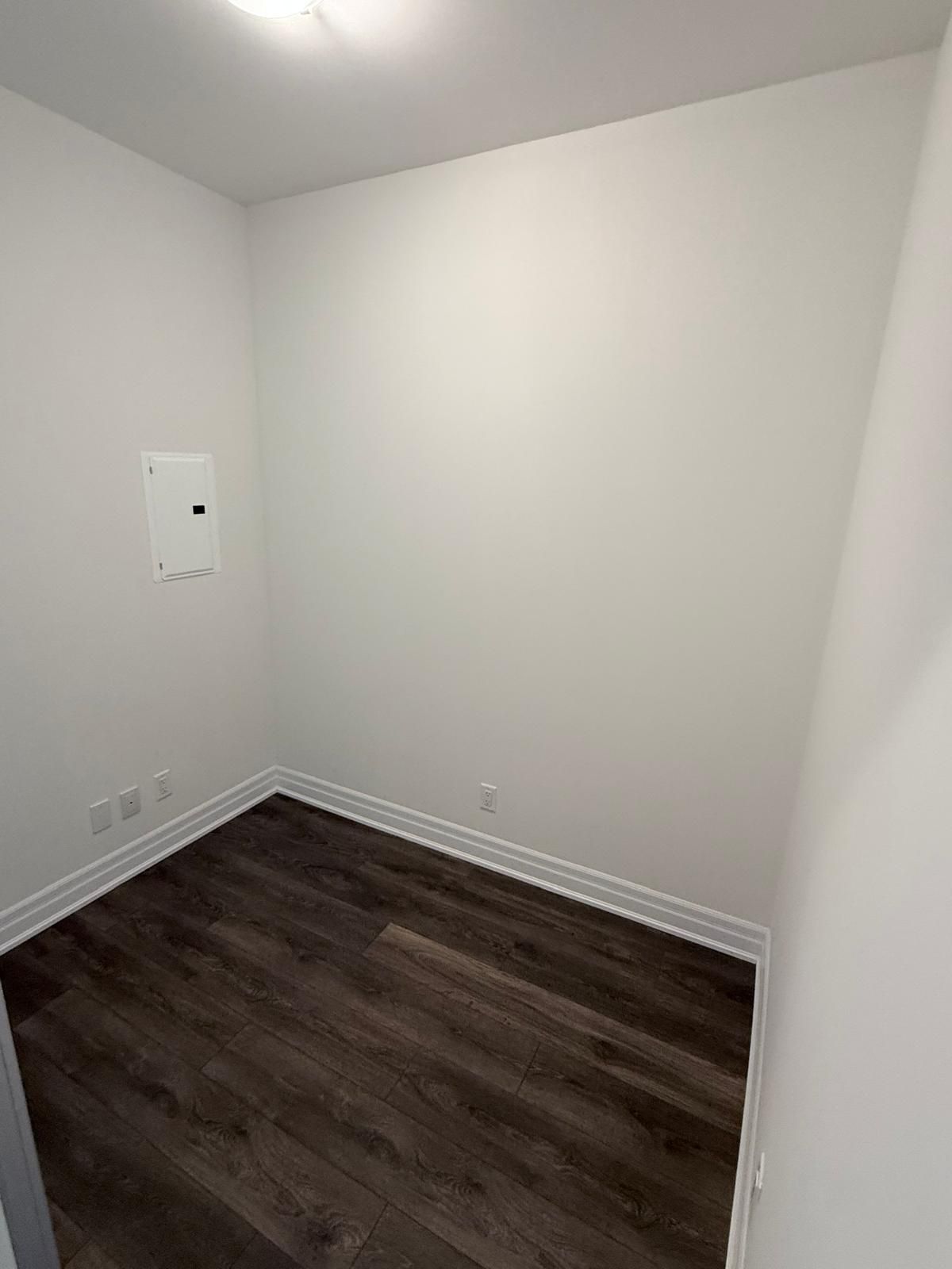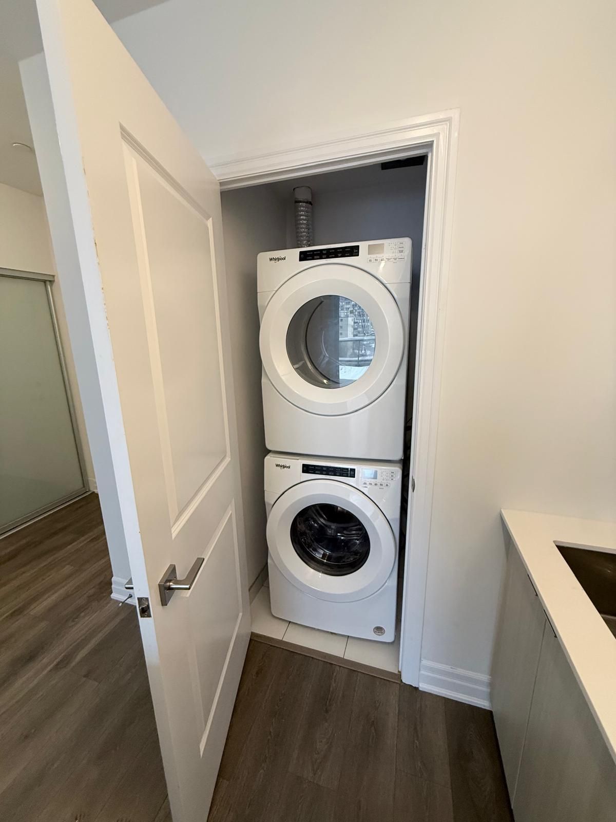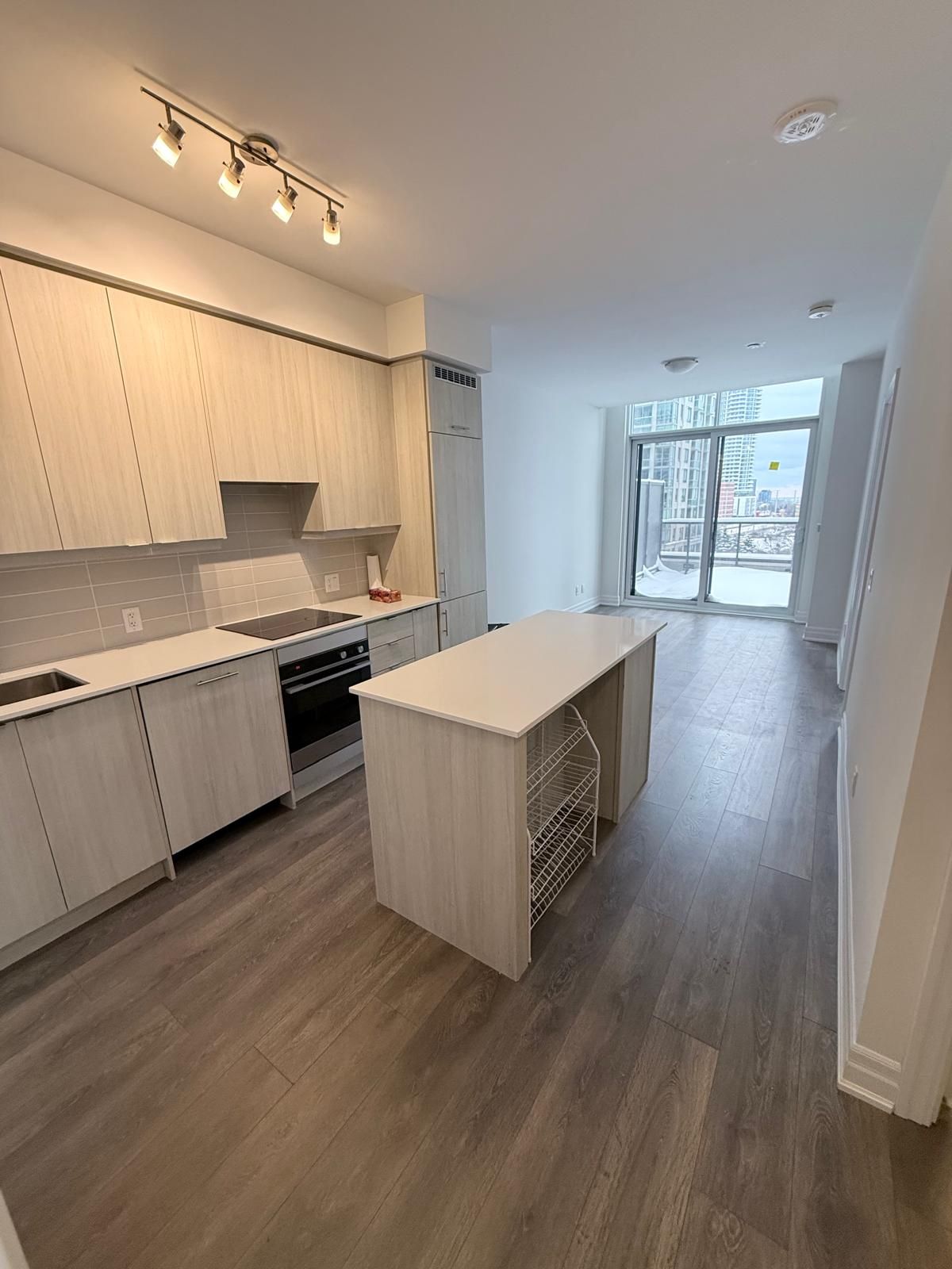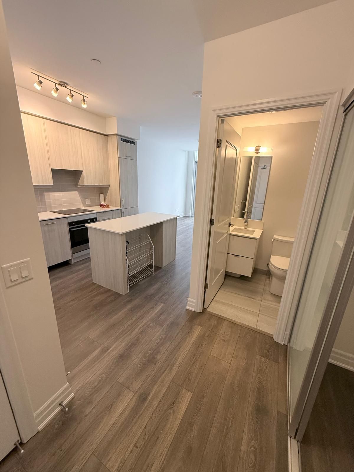 Step into modern luxury at edge towers by solmar at 30 elm drive west. This 1-year-old, freshly painted 1-bedroom + den suite features soaring10-ft ceilings, premium laminate and ceramic flooring, and a gourmet kitchen with quartz countertops, stylish backsplash, stainless steel integrated appliances, undermount sink with pull-out faucet, and a spacious island-perfect for entertaining. The versatile den with sliding door makes an ideal home office or guest retreat. Enjoy two full bathrooms, a stacked washer/dryer, and a one of a kind 242 sq. Ft. Covered terrace, offering private outdoor living. Located steps from square one, whole foods, transit, highways, and the future lrt, with access to world class amenities, this suite combines comfort, convenience, and sophisticated urban living.