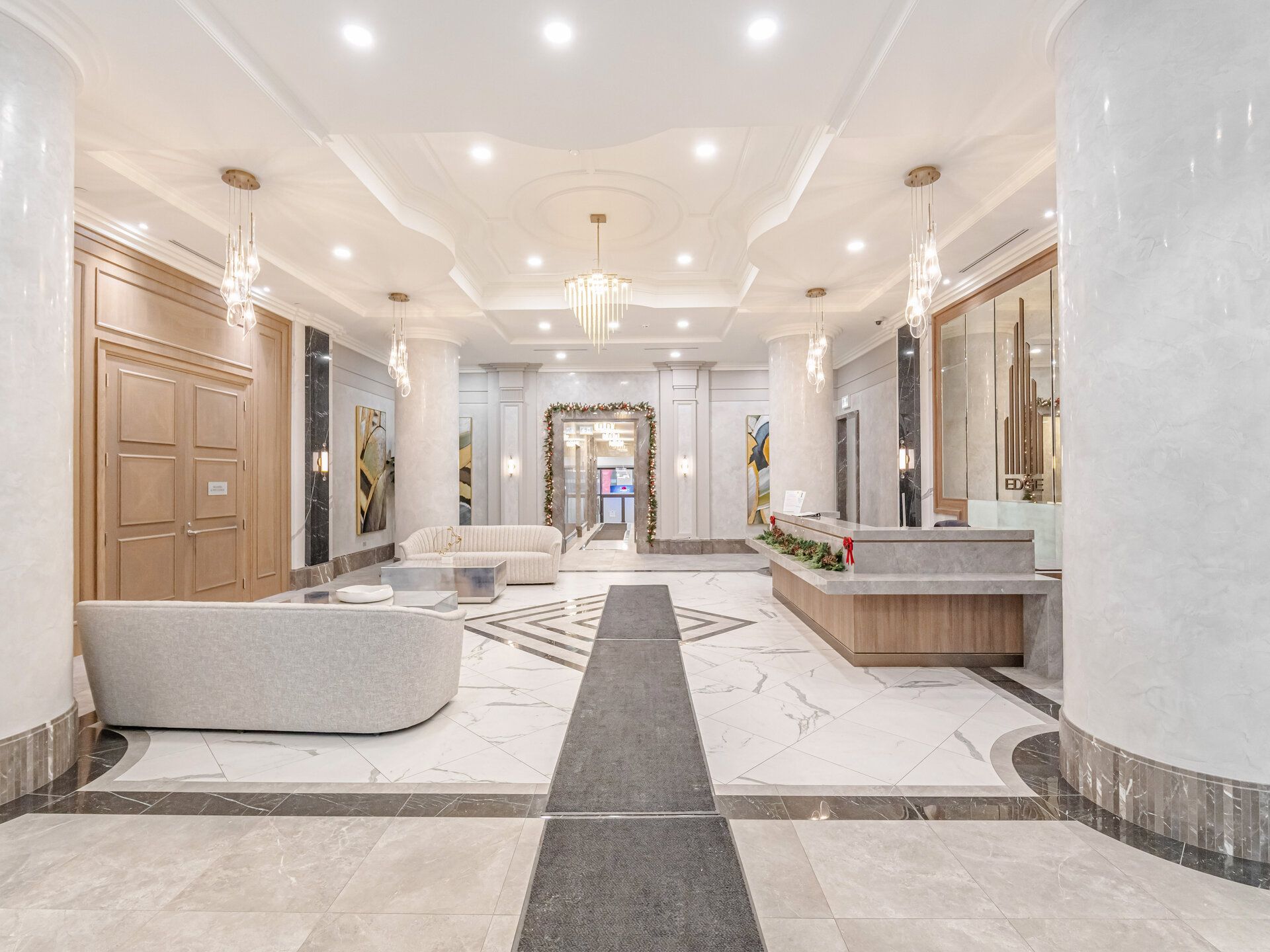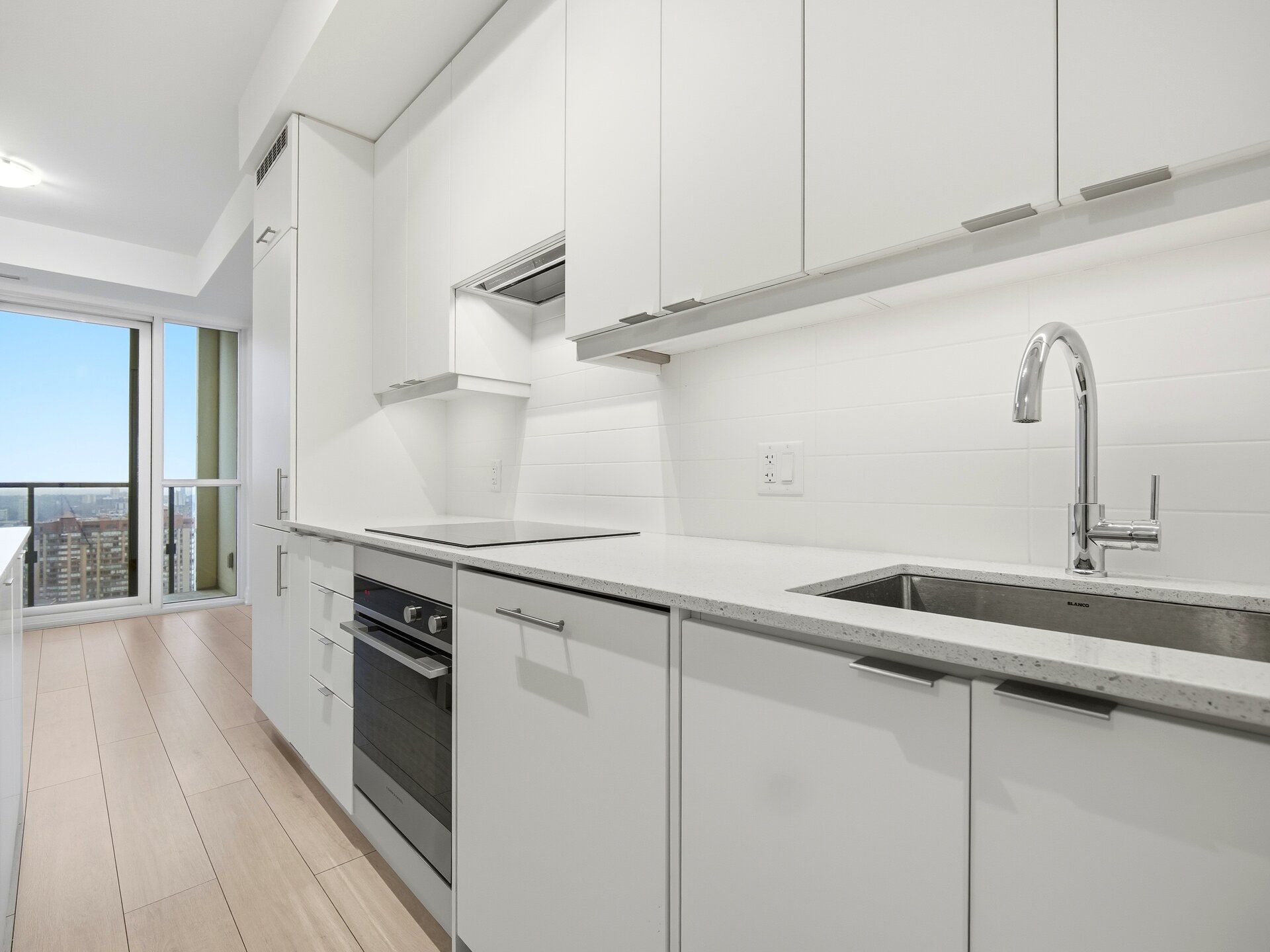 Spacious and well-appointed 1 bedroom plus den suite offering a highly functional layout with two full bathrooms, one parking space, one locker, and a private balcony with panoramic city views. The den is enclosed with glass doors and functions as a second bedroom, ideal for guests, a home office, or additional living space. The open-concept living and dining area is bright and inviting, seamlessly connected to a gourmet-style kitchen featuring modern cabinetry, quality finishes, and integrated appliances, well suited for both everyday living and entertaining. The primary bedroom offers comfortable proportions, a generous closet, a private ensuite bathroom, and panoramic city views. A second full bathroom adds convenience for residents and visitors. Enjoy outdoor living on the balcony with unobstructed skyline views, perfect for morning coffee or evening relaxation. The building features state-of-the-art amenities and is ideally located in the heart of mississauga, within close proximity to square one shopping centre, restaurants, parks, public transit, and major highways including 403, 401, and qew. An excellent opportunity for end users or investors seeking a centrally located urban residence with flexible living space.