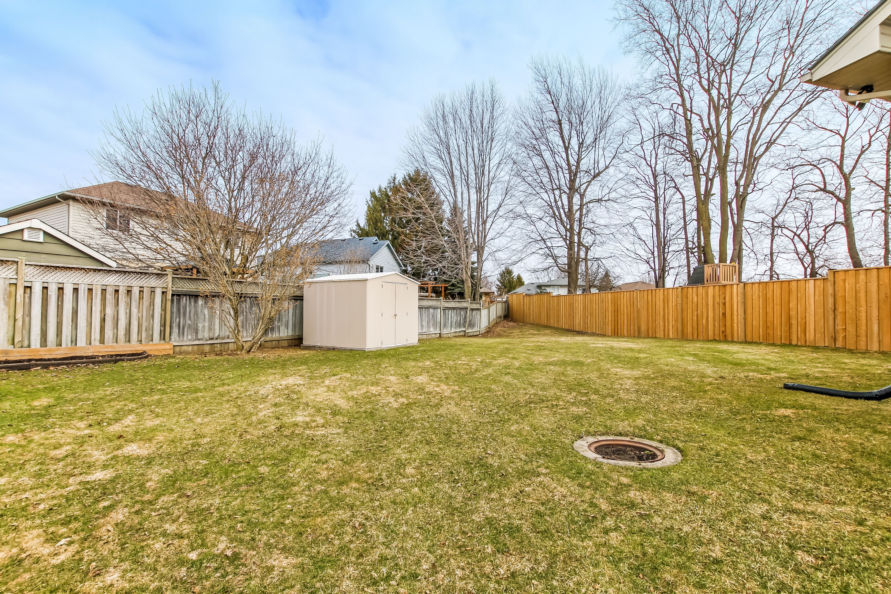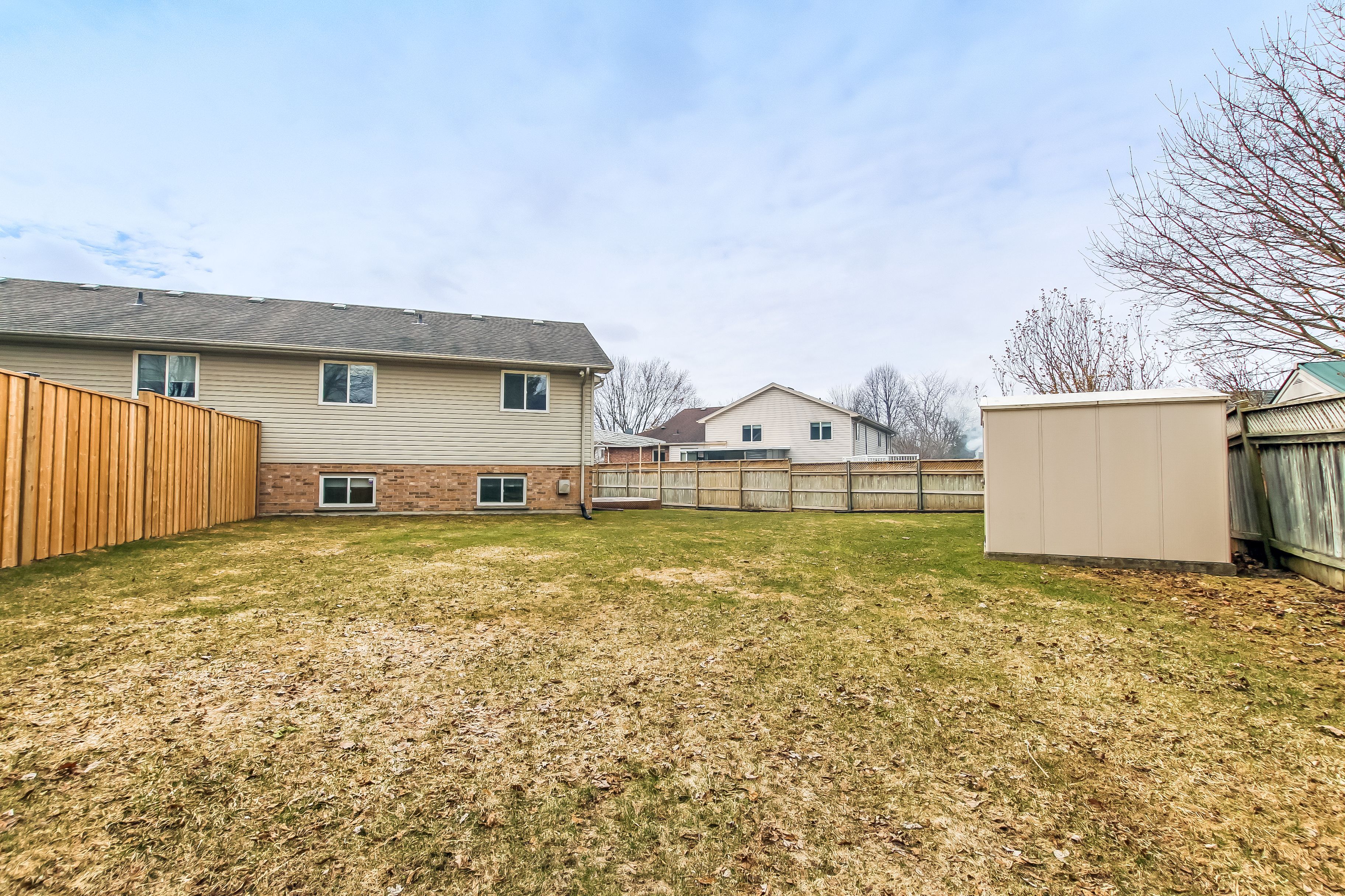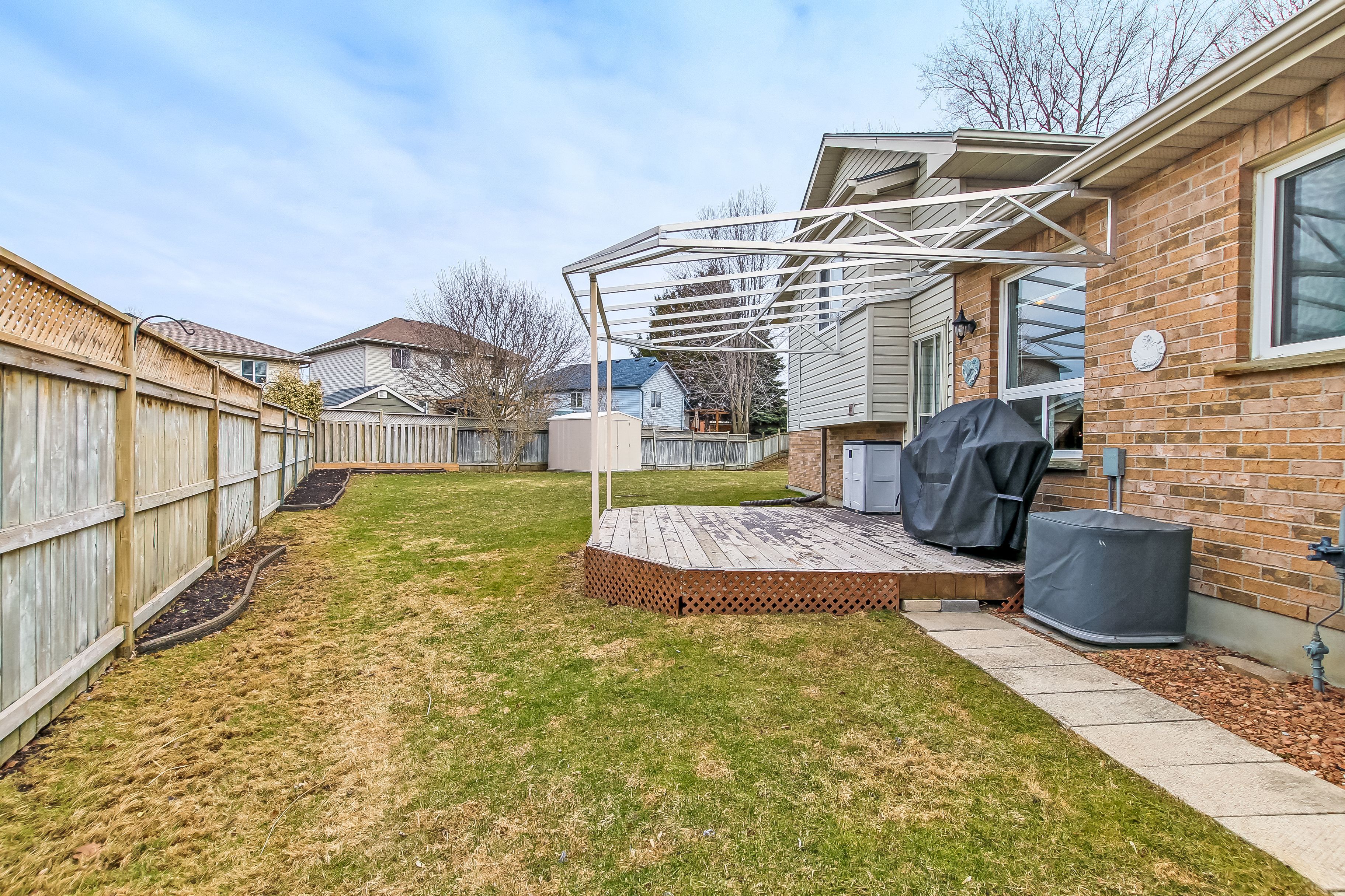 Welcome to 30 folkstone court, a beautifully maintained 4-level backsplit semi-detached home tucked away on a quiet cul-de-sac, awaiting your viewing. Set on a generous pie-shaped, fully fenced lot, this property offers both privacy and space. An attached garage with inside access to the front foyer adds everyday convenience, while the finished fourth level provides extra living space rarely found in homes at this price point. Step inside to an inviting hardwood foyer, leading into a bright carpeted living room. Elegant french doors open to the dining room, featuring hardwood flooring and freshly painted walls, perfect for hosting family dinners or entertaining guests. The spacious kitchen is designed for both functionality and gathering, offering abundant cabinetry, updated countertops, and a center island that provides additional workspace. Three appliances are included. The kitchen also includes direct access to the side yard and a custom-built awning frame over a raised deck and seasonal covering that can be installed if desired by raymond brothers, making it ideal for outdoor dining or relaxing on warm evenings. Hardwood stairs and hallway lead upstairs to three carpeted, freshly painted bedrooms and a 4-piece bathroom. The third lower level features a spacious family room anchored by a cozy gas fireplace. This level also includes a freshly painted fourth bedroom and a 3-piece bathroom, making it ideal for guests, teens, or a home office. The finished fourth level offers even more versatility, with a games room or multi-purpose area that can adapt to your family's needs. You'll also find a dedicated storage room and a utility/laundry area, with washer and dryer included. The backyard includes a maintenance free 8x10 foot vinyl storage shed secured to a poured, reinforced concrete base. This exceptional property combines space, comfort, and flexibility in a desirable location. Don't miss the opportunity to make this wonderful home your own.