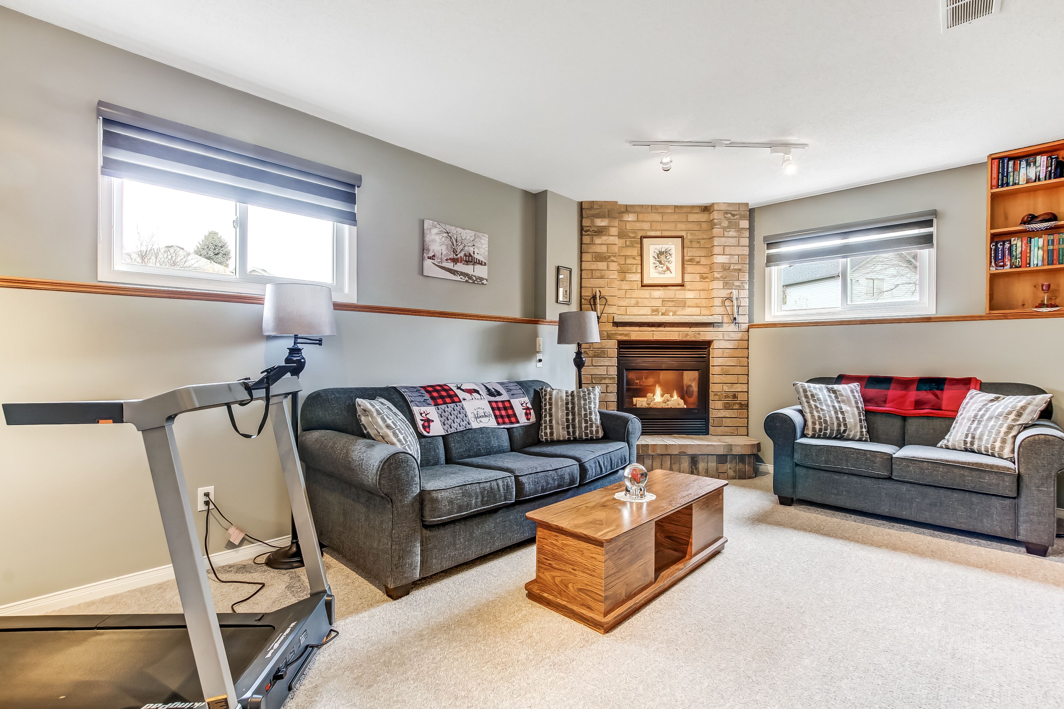 • Cozy family room with a gas fireplace and extra bedroom for guests.
