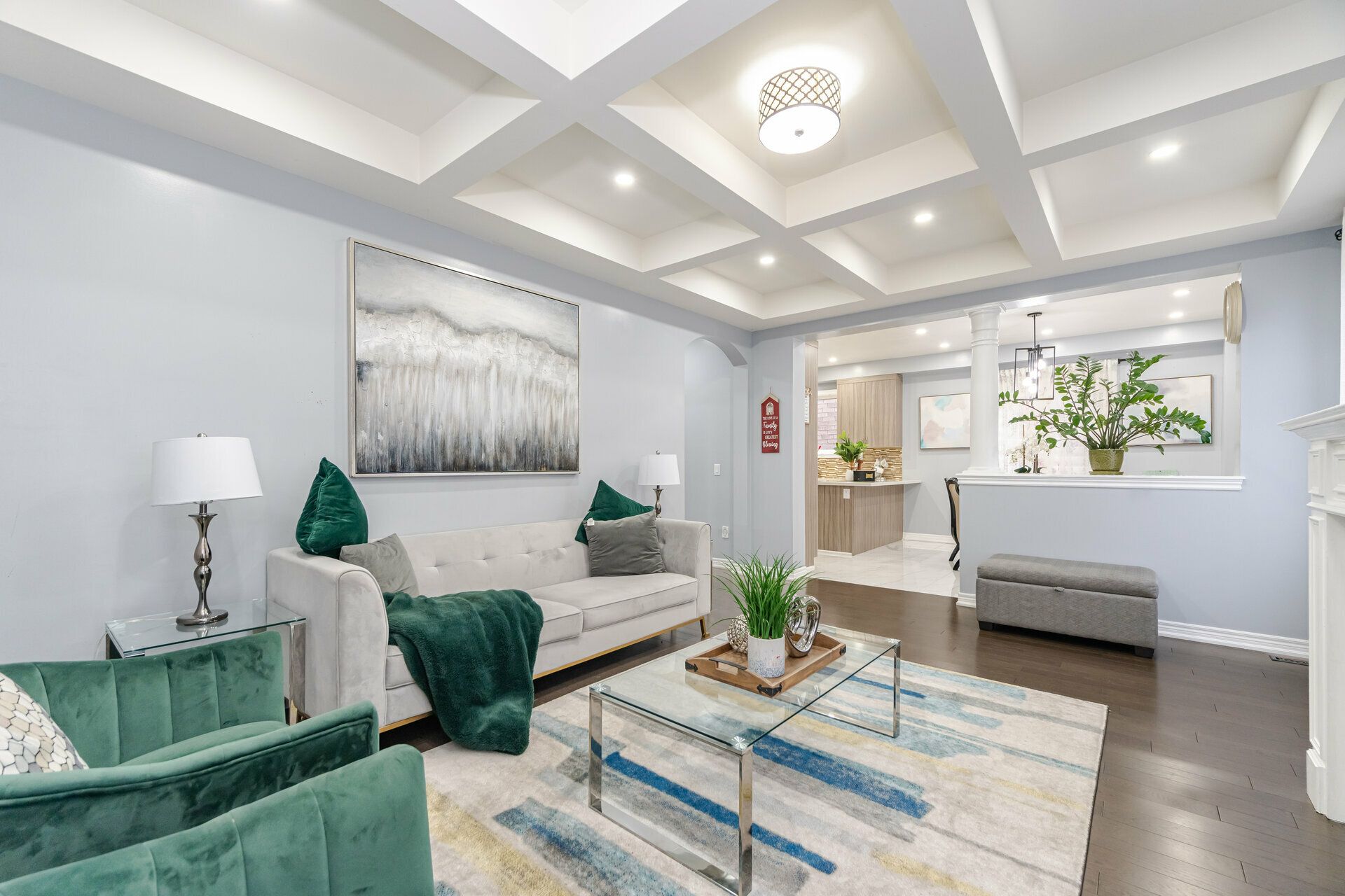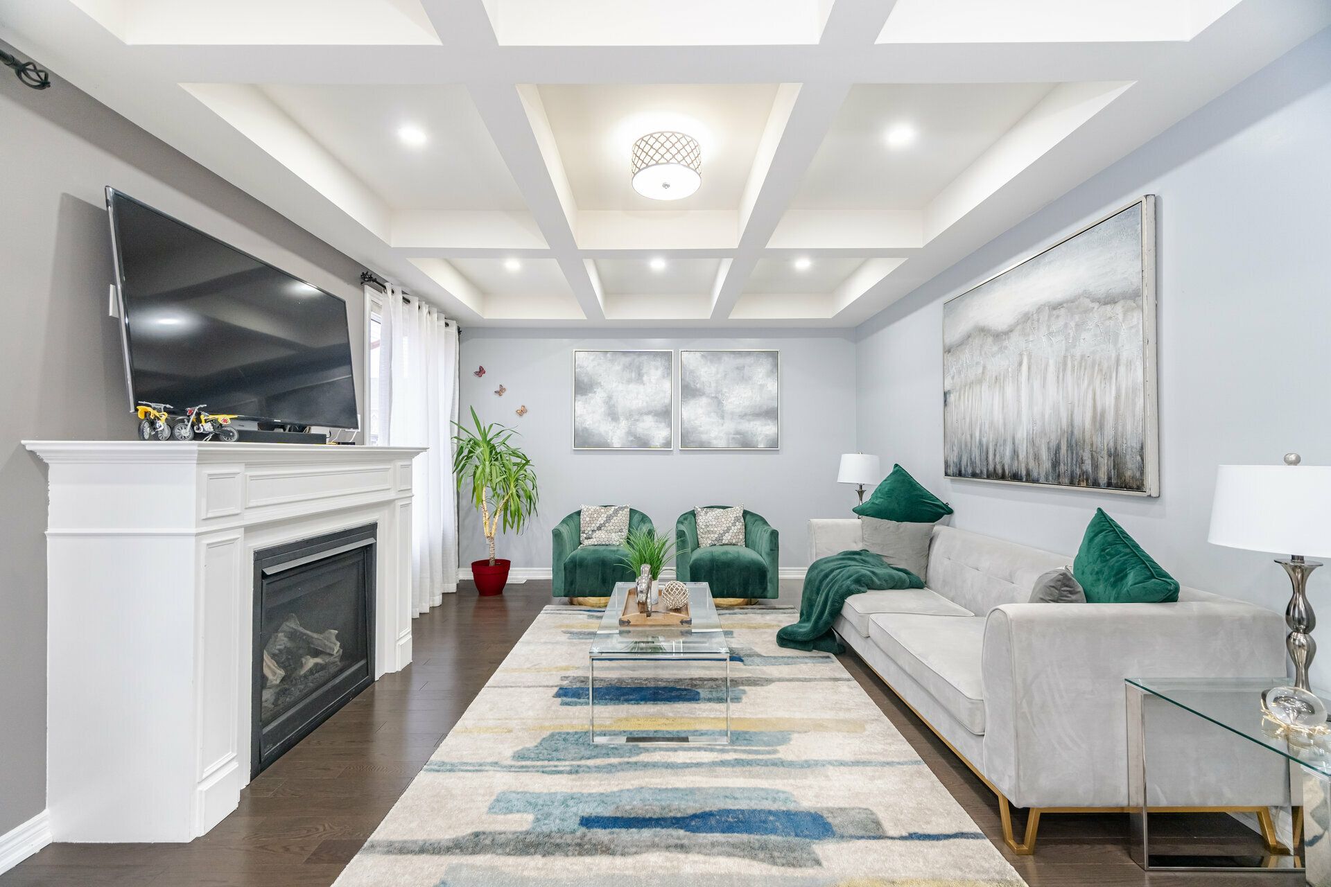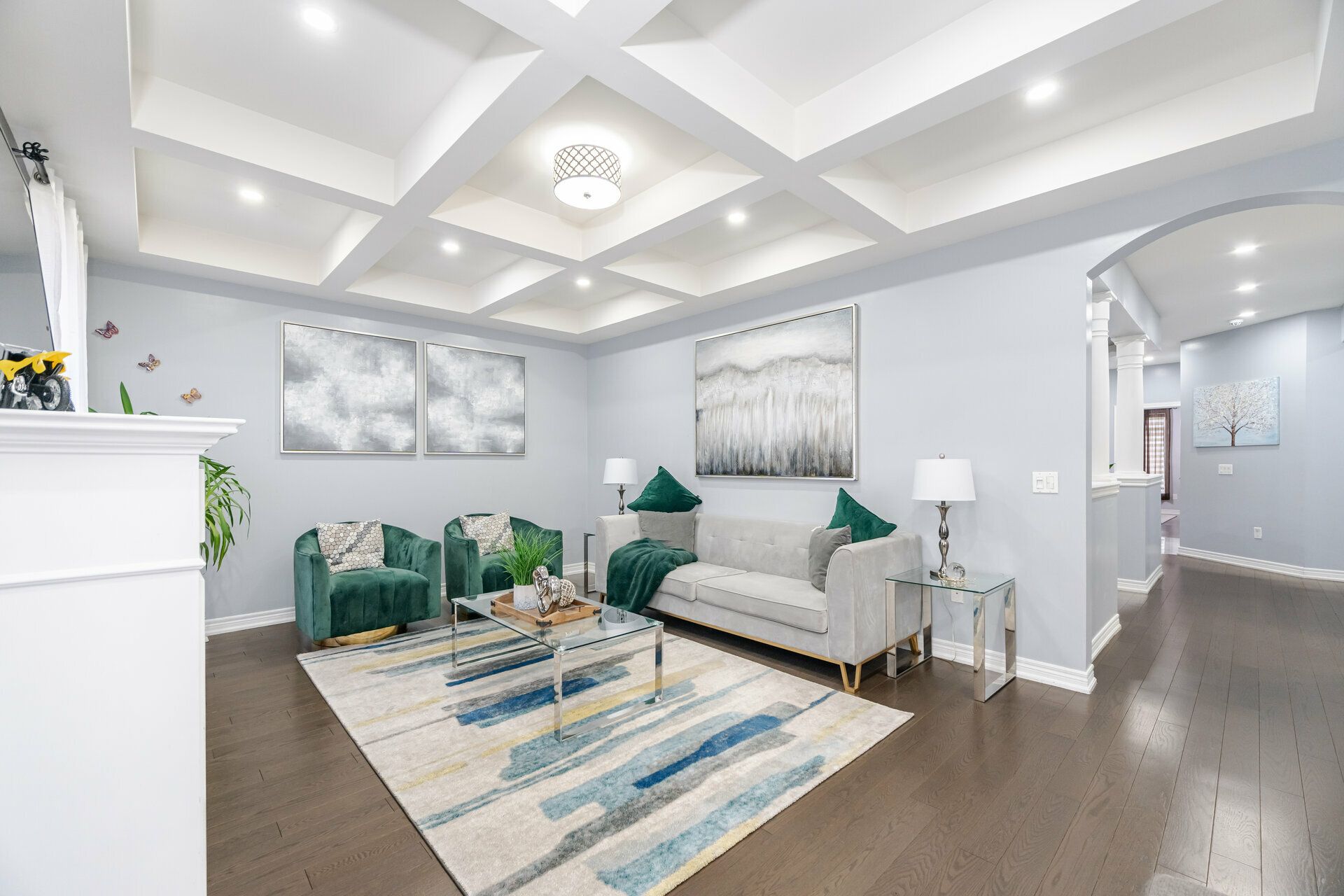 • Stylish coffered and tray ceilings throughout for a modern touch.
