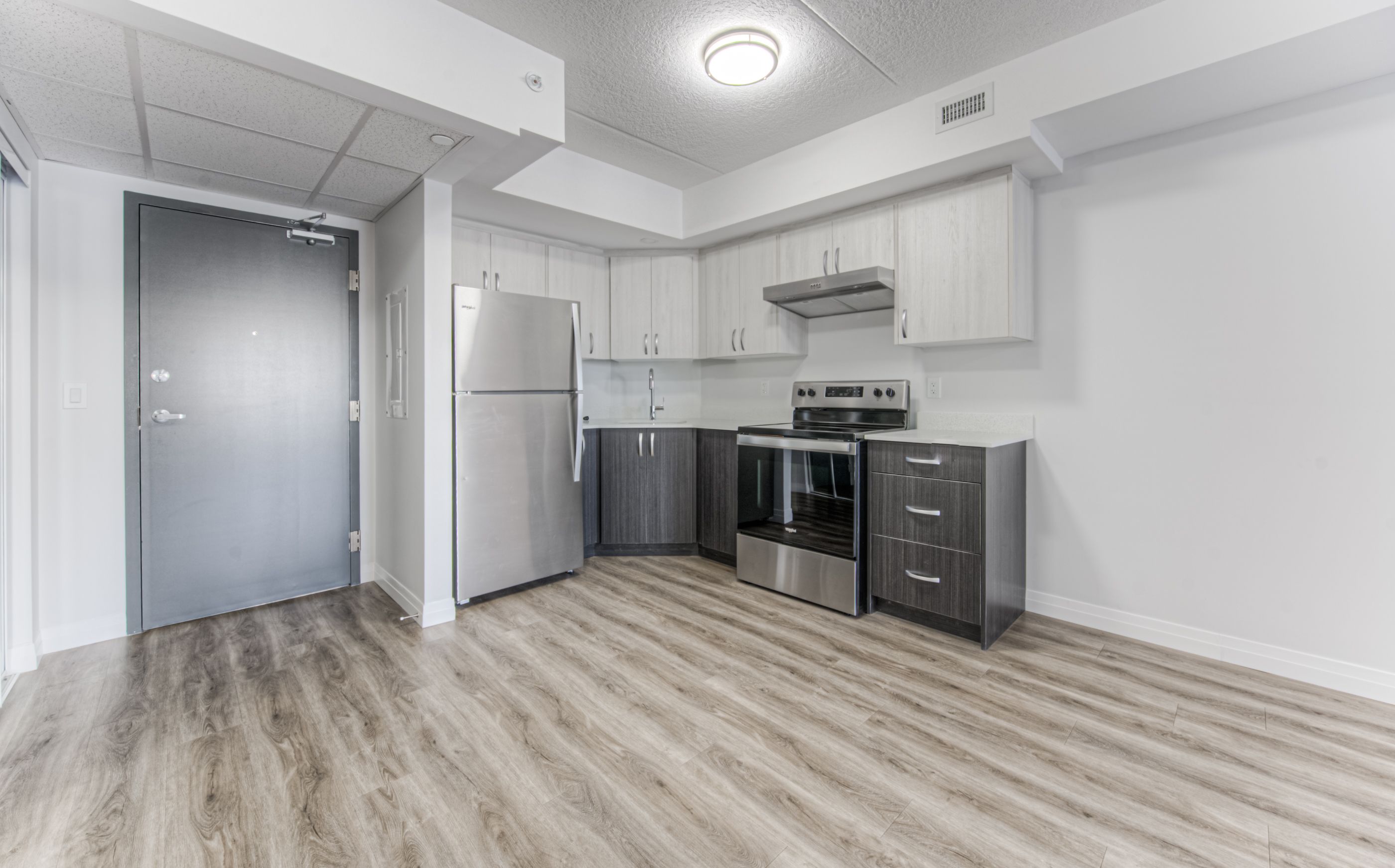 Welcome to 30 george st. S, situated perfectly in the gaslight district of cambridge, steps away from historical old galt, the grand river & all amenities! Stylish, open concept unit with over 650 square feet of living space, with luxury vinyl planks, quartz countertops, in-suite laundry and a 300 square foot terrace. Features included in rent are one parking spot, water, heat, a/c, secure bike storage and 24/7 building security monitoring. This fantastic location in the west galt neighbourhood is a perfect blend of modern and historic, with industrial buildings converted into chic spaces that house some of the most charming local businesses in waterloo region; it's easy to see why this is considered the heart of cambridge. The building is within walking distance to the gaslight district, supermarkets, library, lush parks, bakeries, coffee shops, restaurants, a fitness center, public transit, schools and much more. Book your showing before these units are leased!