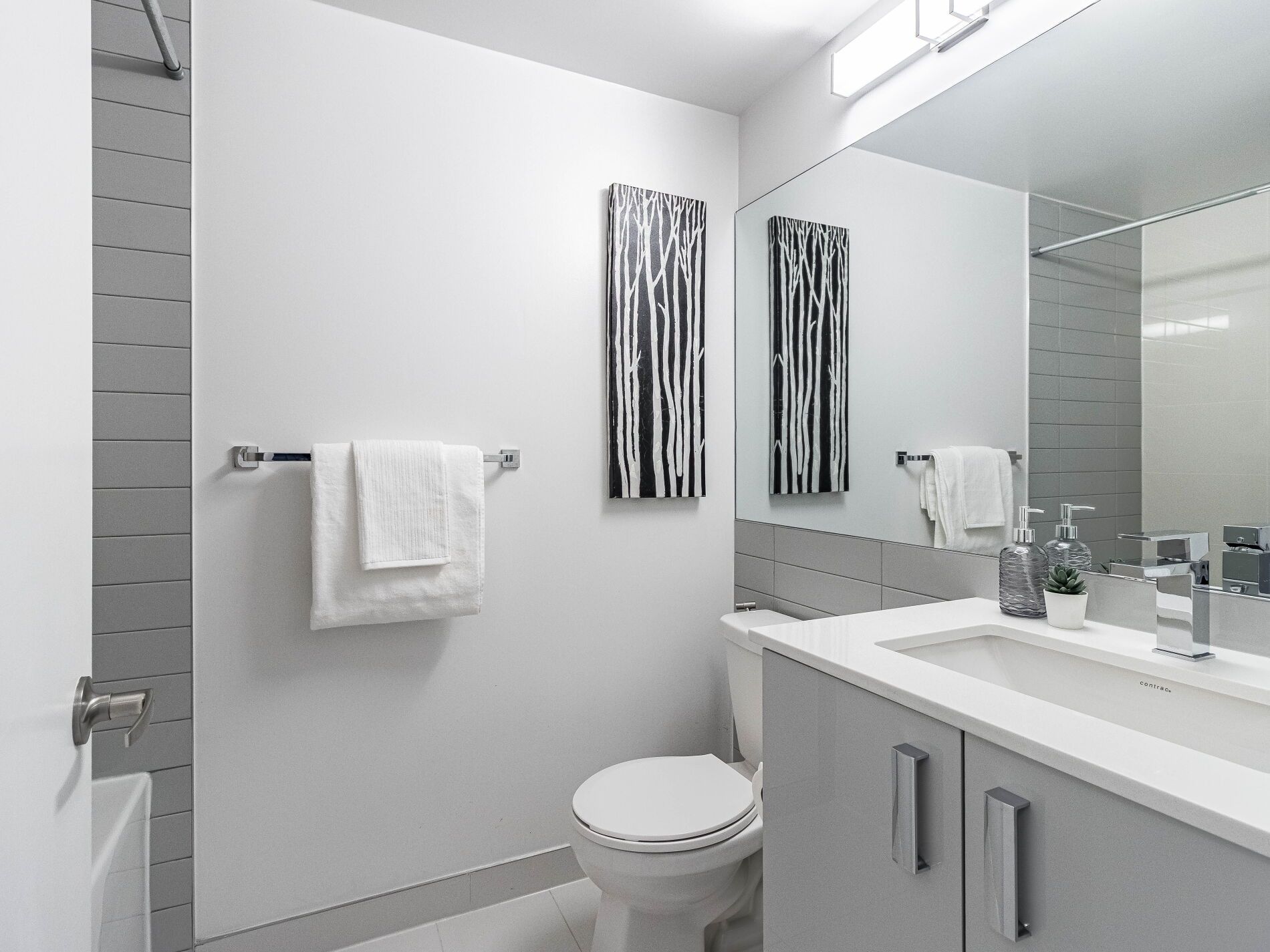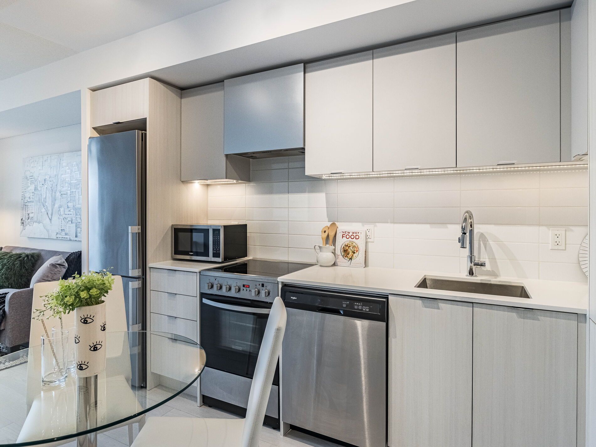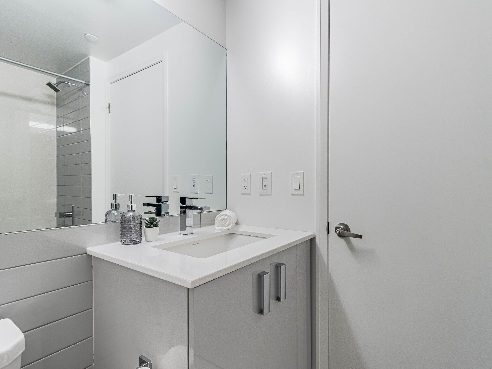 • Modern 2-bedroom condo with neutral colors and contemporary finishes.