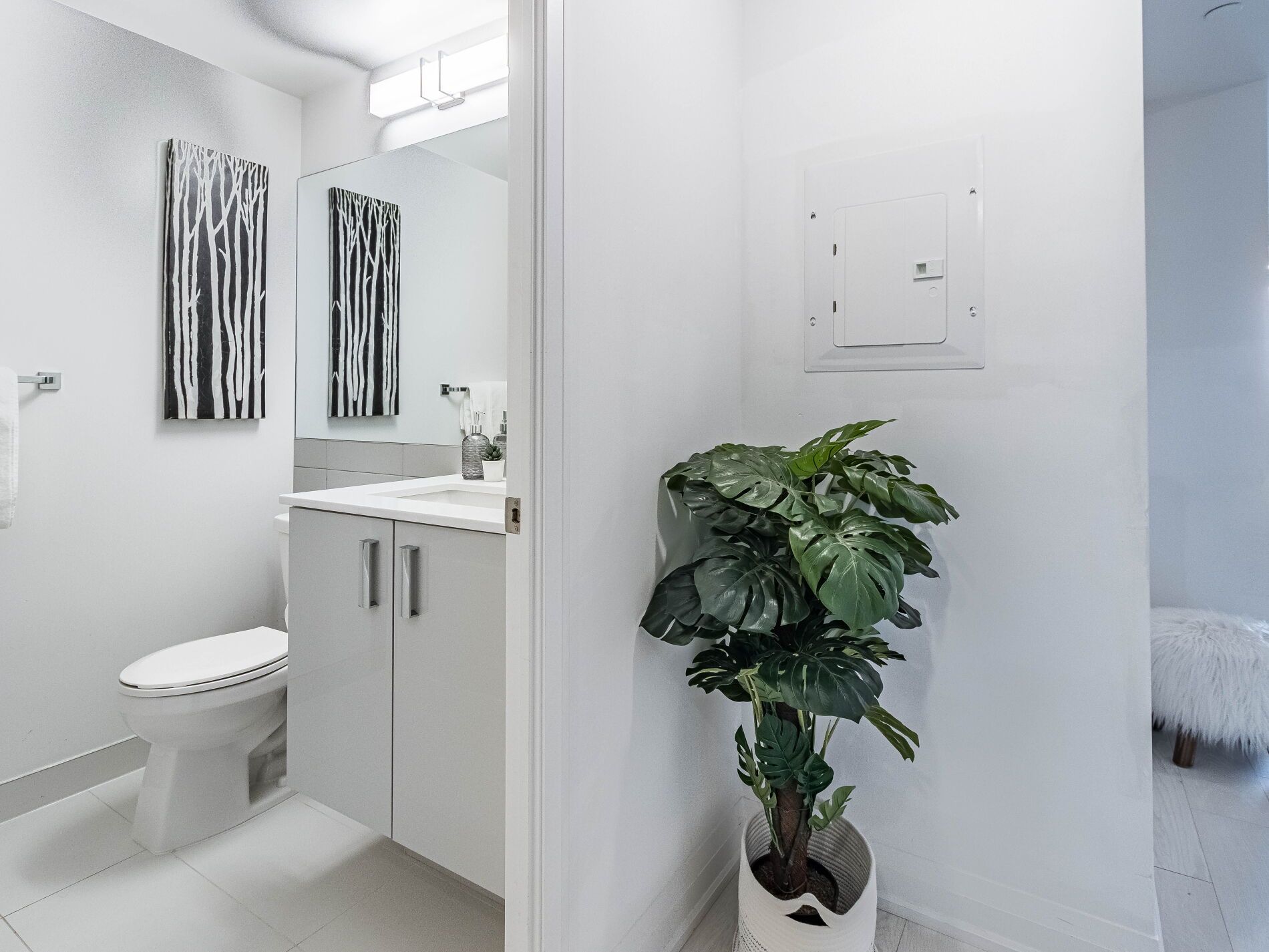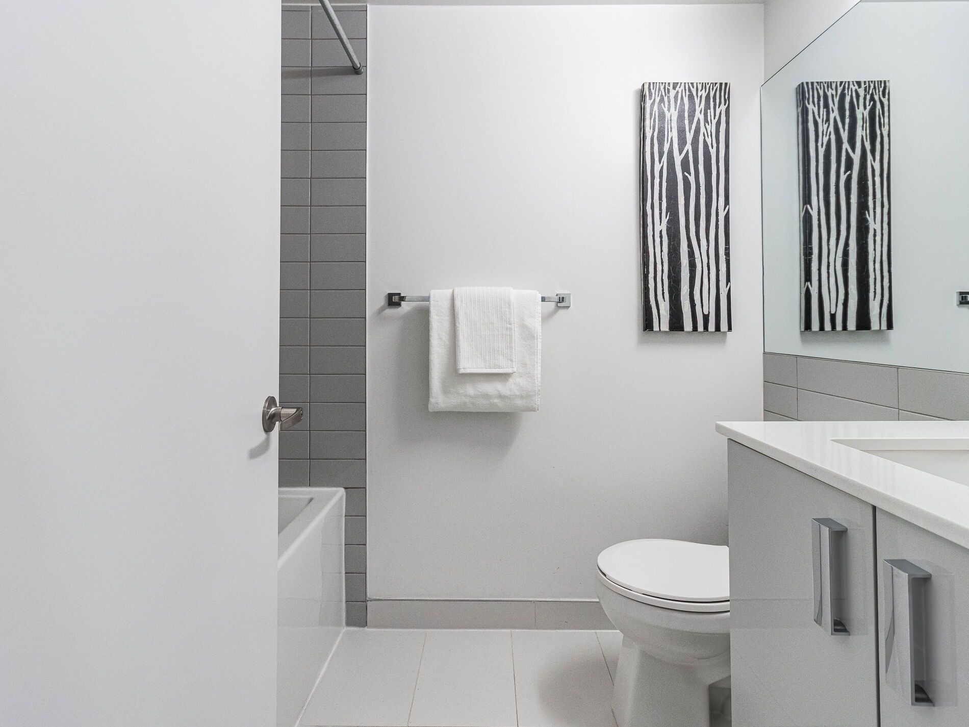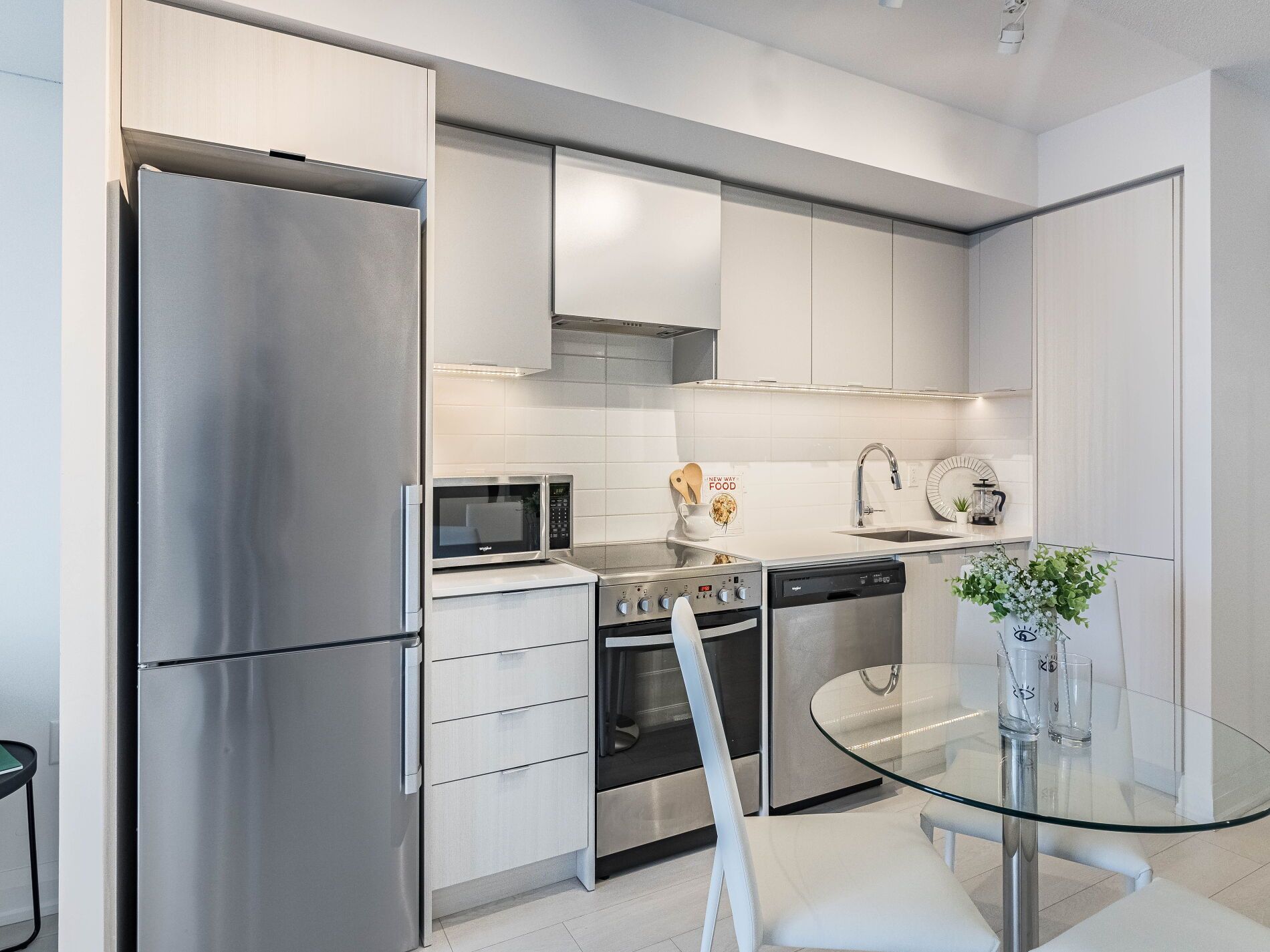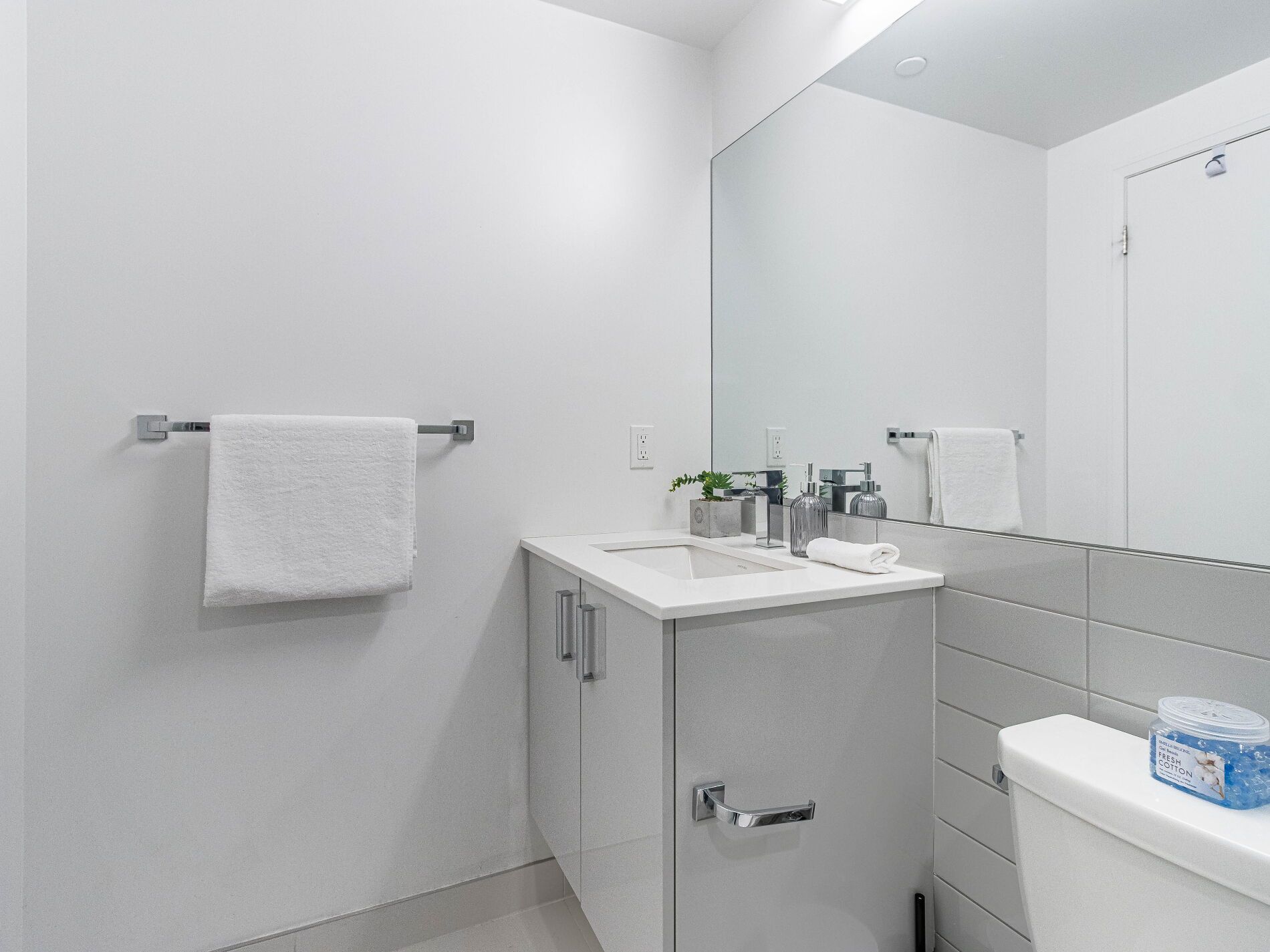• Modern 2-bedroom condo with neutral colors and contemporary finishes.