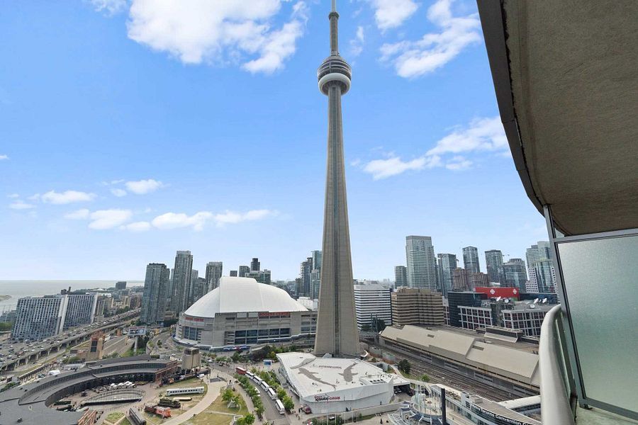 Utilities included ! Live in the heart of downtown toronto with a stunning day and night view of cn tower, rogers center and lake from balcony, a bright and spacious 1 bedroom + den suite in the highly sought-after infinity i condos. This well-designed open-concept layout features floor-to-ceiling windows, allowing abundant natural light. The versatile den is perfect for a home office or guest space. Located steps from union station, the path financial district, scotiabank arena, rogers centre, cn tower, waterfront, shops, and restaurants. Steps to union station (subway, go transit, via rail, up express) rbc water park place, metro residents enjoy luxury amenities, including 24-hour concierge, indoor pool, fitness centre, sauna, party room, guest suites, and more. All utilities included (except internet & cable tv).