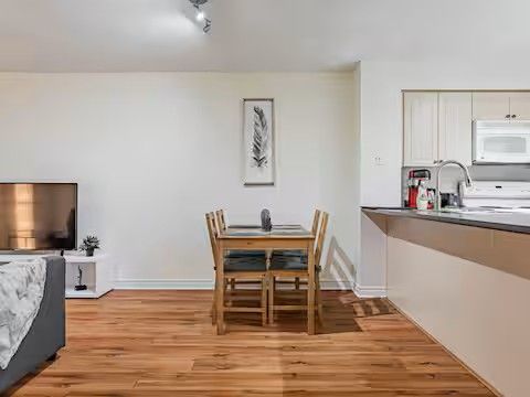 • Open concept living/dining room with access to a large balcony.