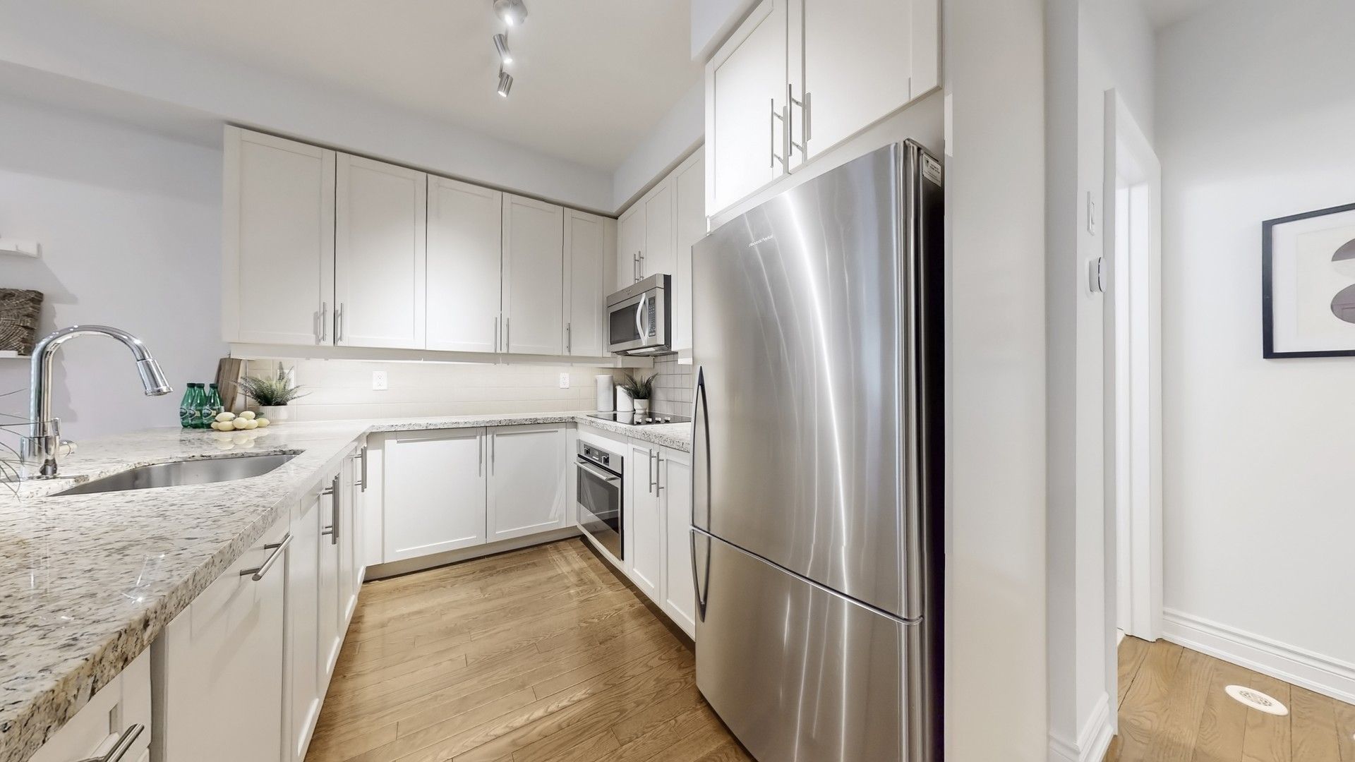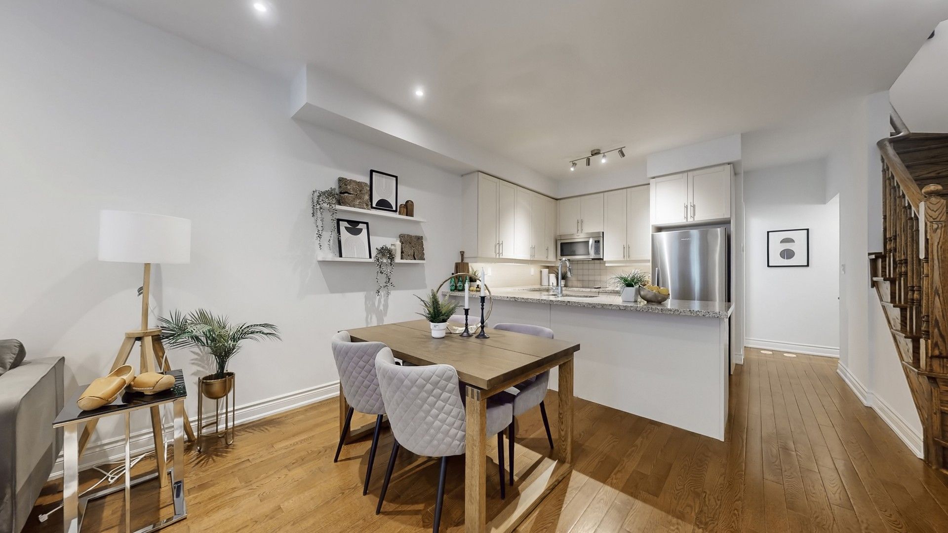 • Elegant hardwood floors and airy 9-ft ceilings throughout the home.