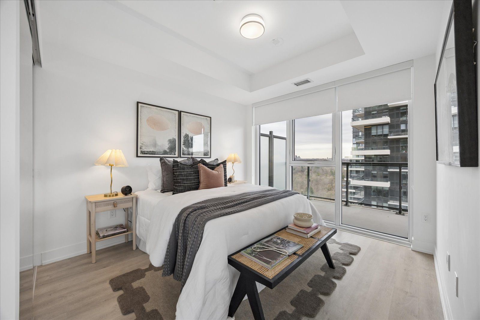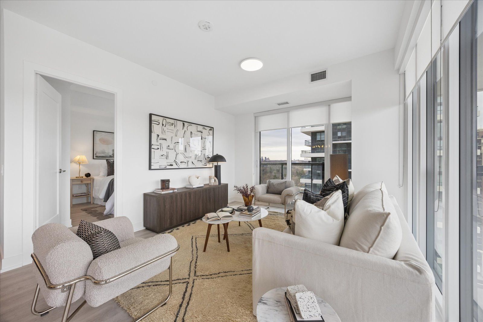 • Bright corner suite with panoramic views of Sunnybrook Park and skyline.
